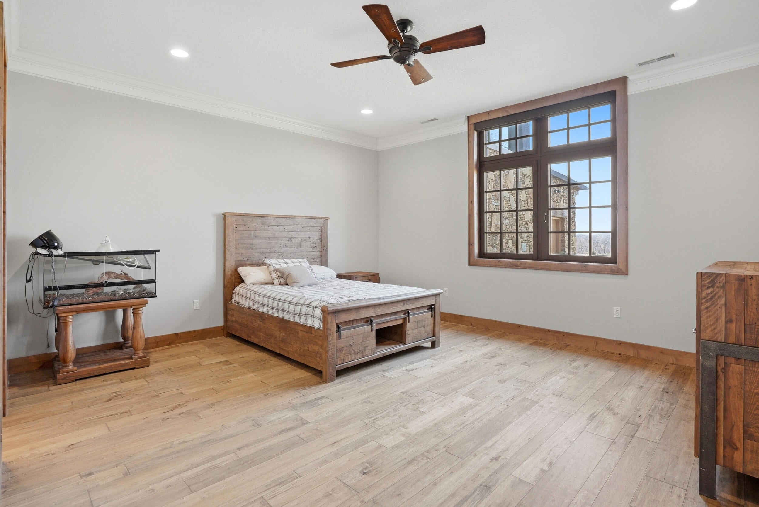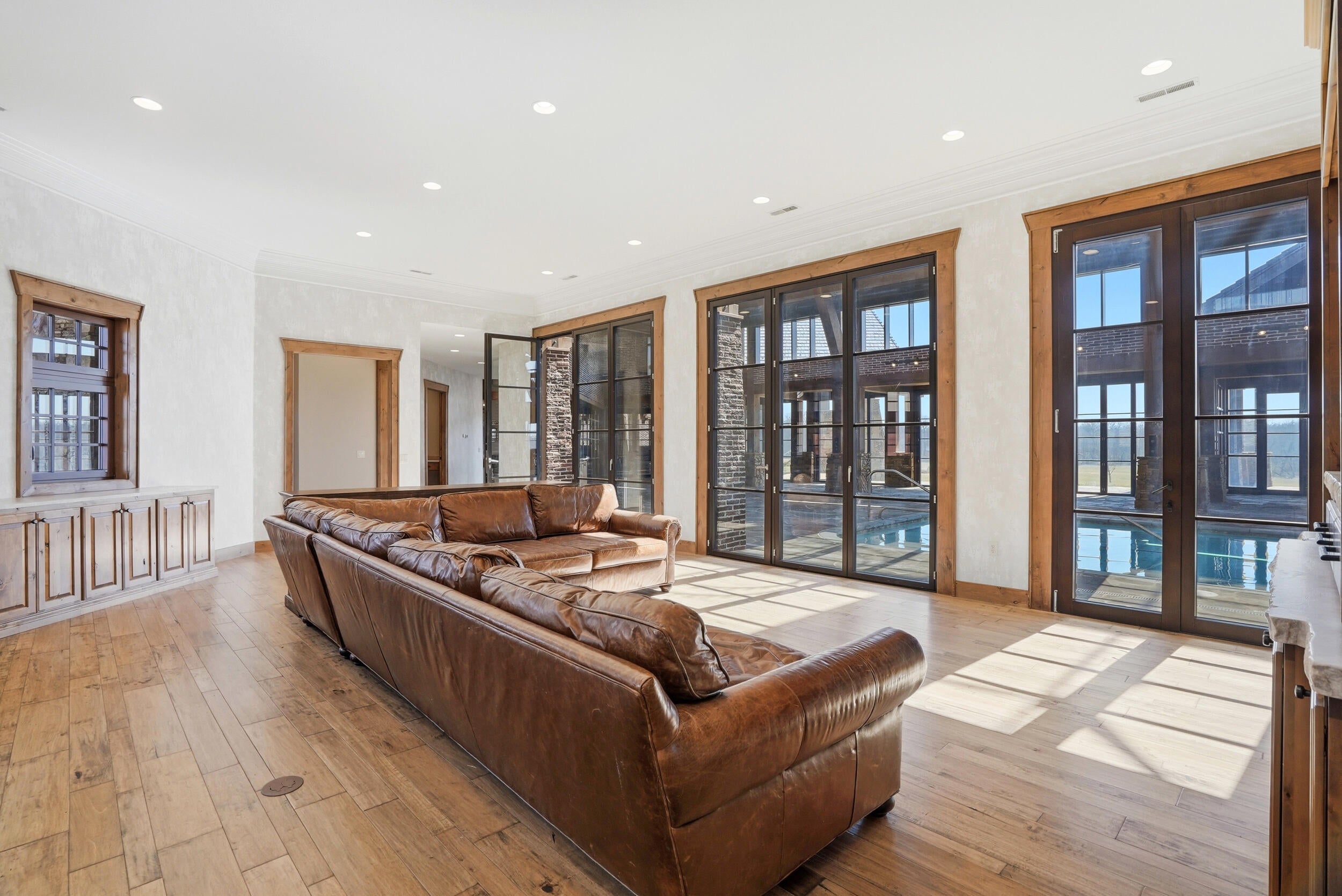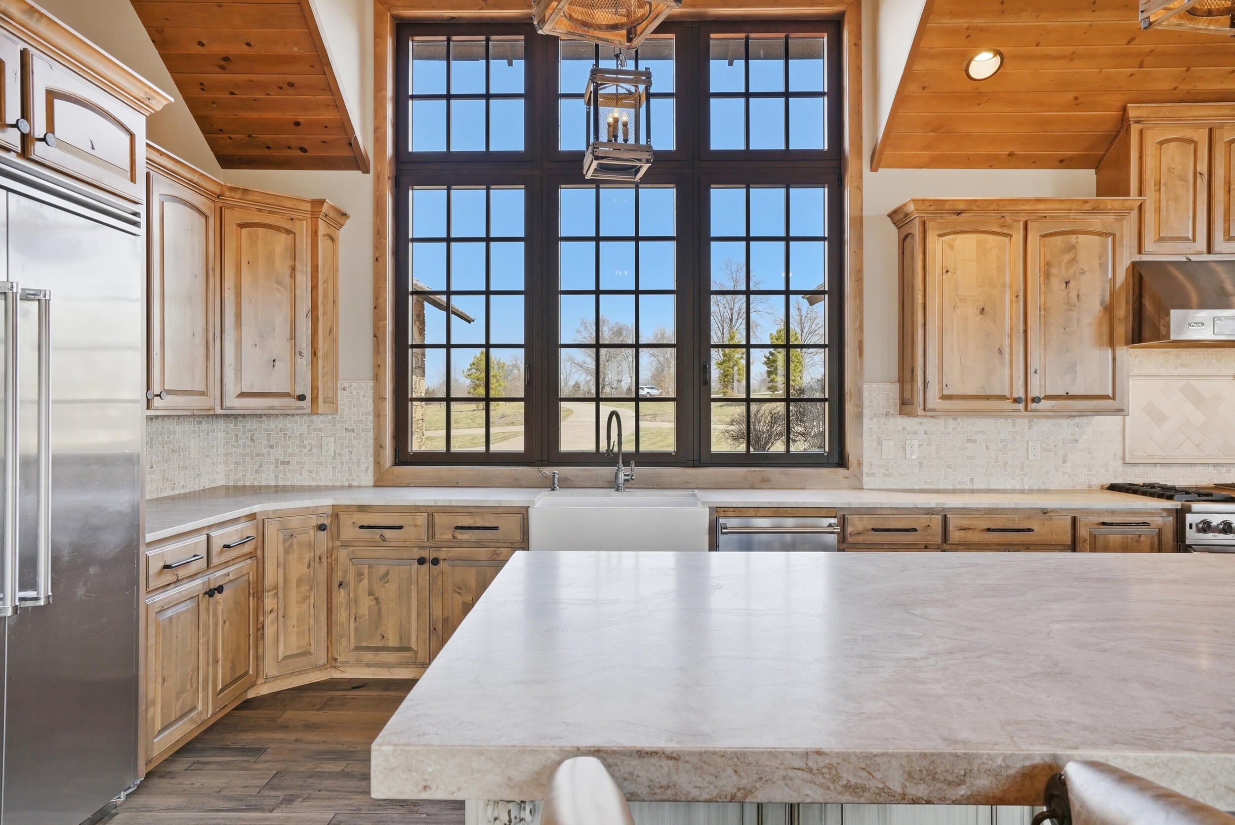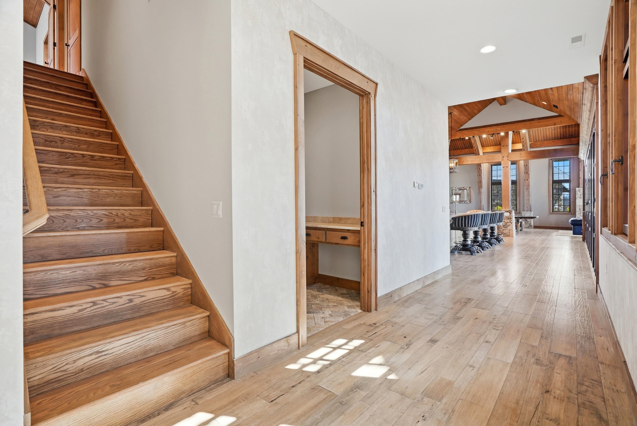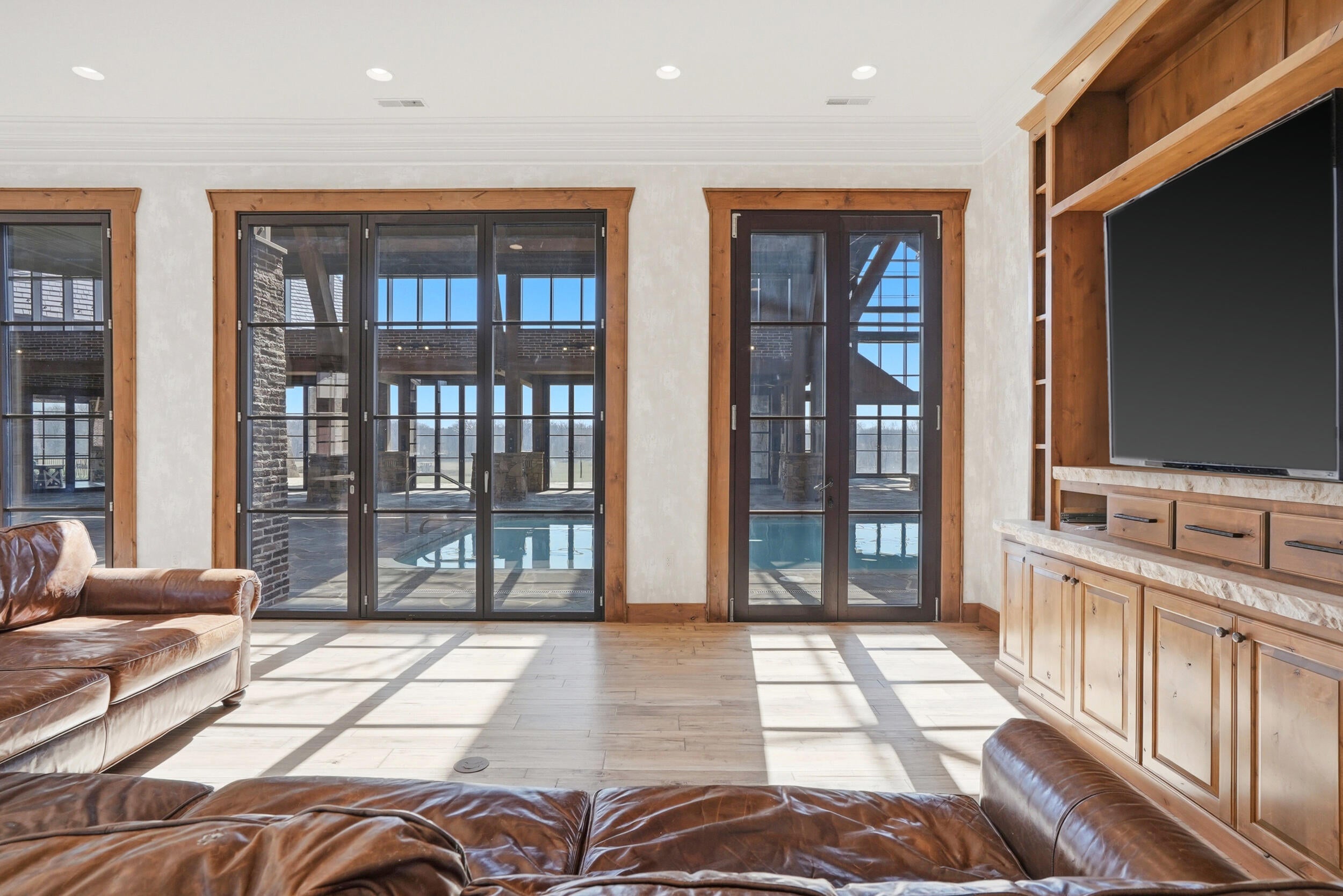 Set on 16 private acres, this custom estate blends refined luxury with breathtaking architectural detail. Designed by Brad Norris, it offers 5 bedrooms, 8 baths, dual living areas, an 8-car garage, and soaring timber-framed ceilings. Expansive Unilux windows capture sweeping views, while the grand kitchen--with top-tier appliances and a large pantry--opens to the spectacular indoor geothermal-heated pool pavilion featuring stone, timber, abundant natural light, and a full wet bar. The primary suite boasts a gorgeous walk-in closet, and the property includes hardwood floors, quartz surfaces, and a custom outdoor basketball court, all just minutes from downtown Columbia and Mizzou. Buyer to verify all measurements.
