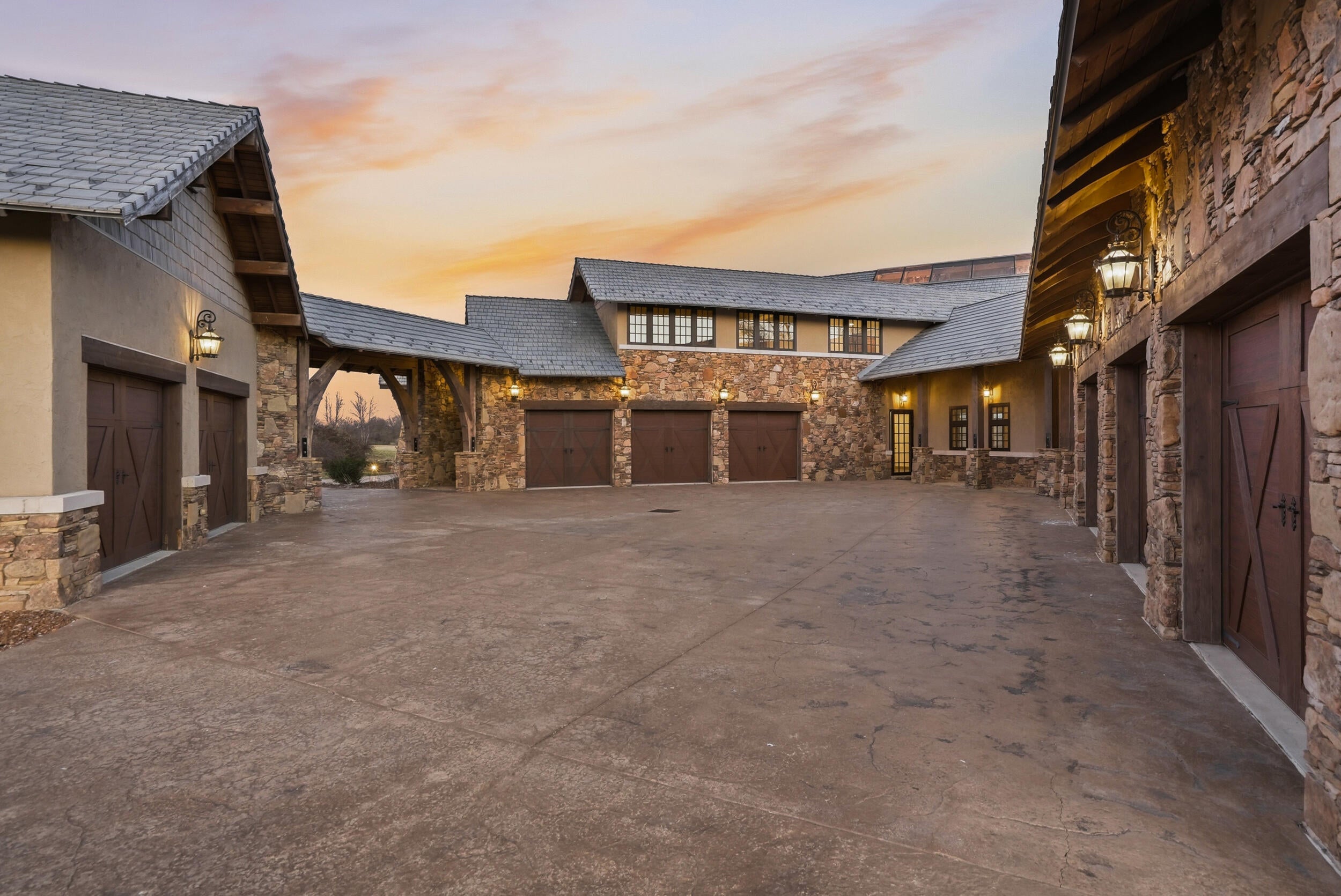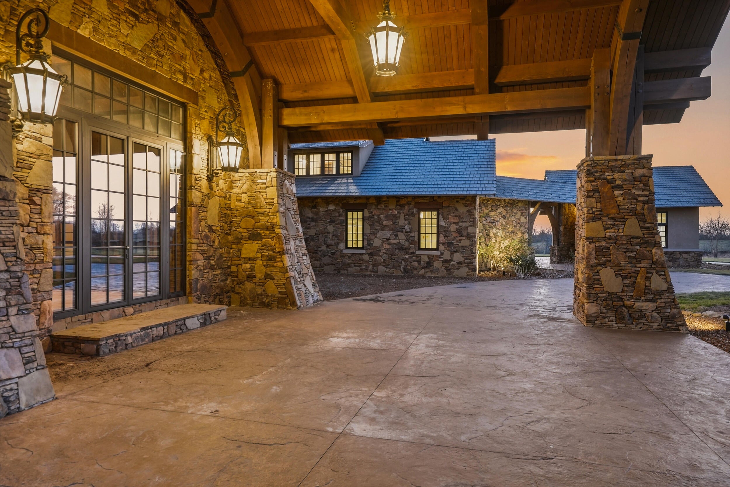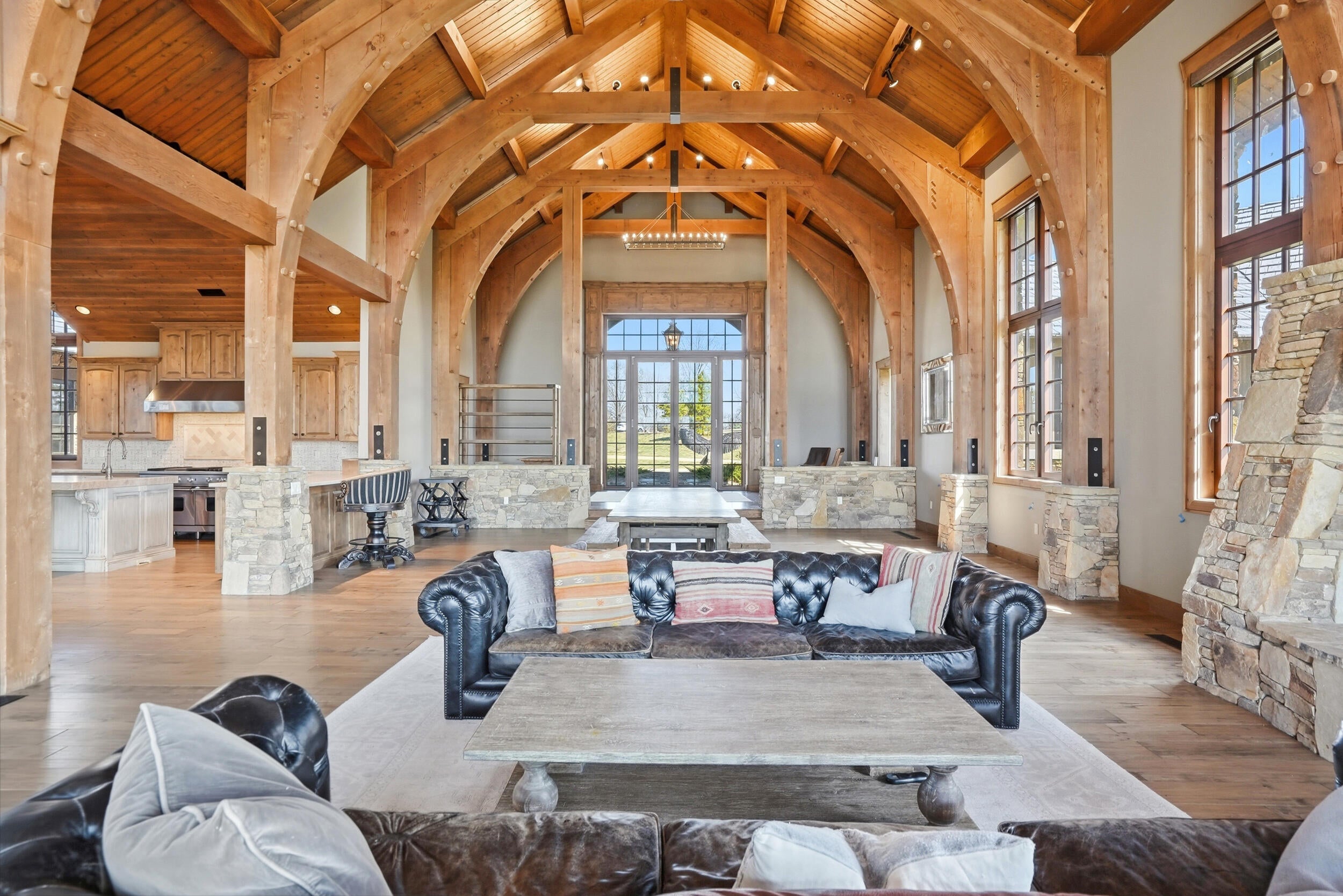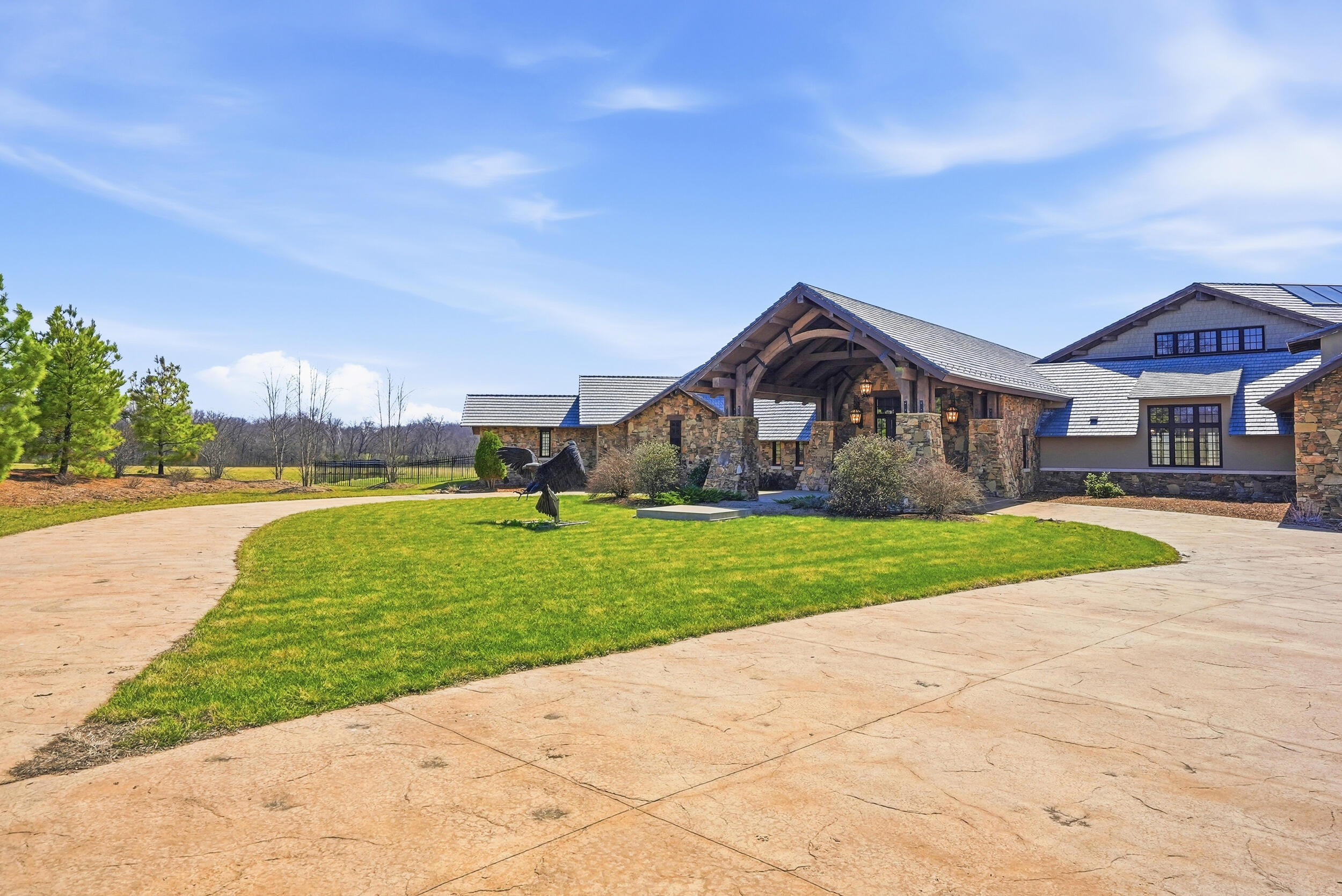 Set on 16 private acres, this custom estate blends refined luxury with breathtaking architectural detail. Designed by Brad Norris, it offers 5 bedrooms, 8 baths, dual living areas, an 8-car garage, and soaring timber-framed ceilings.