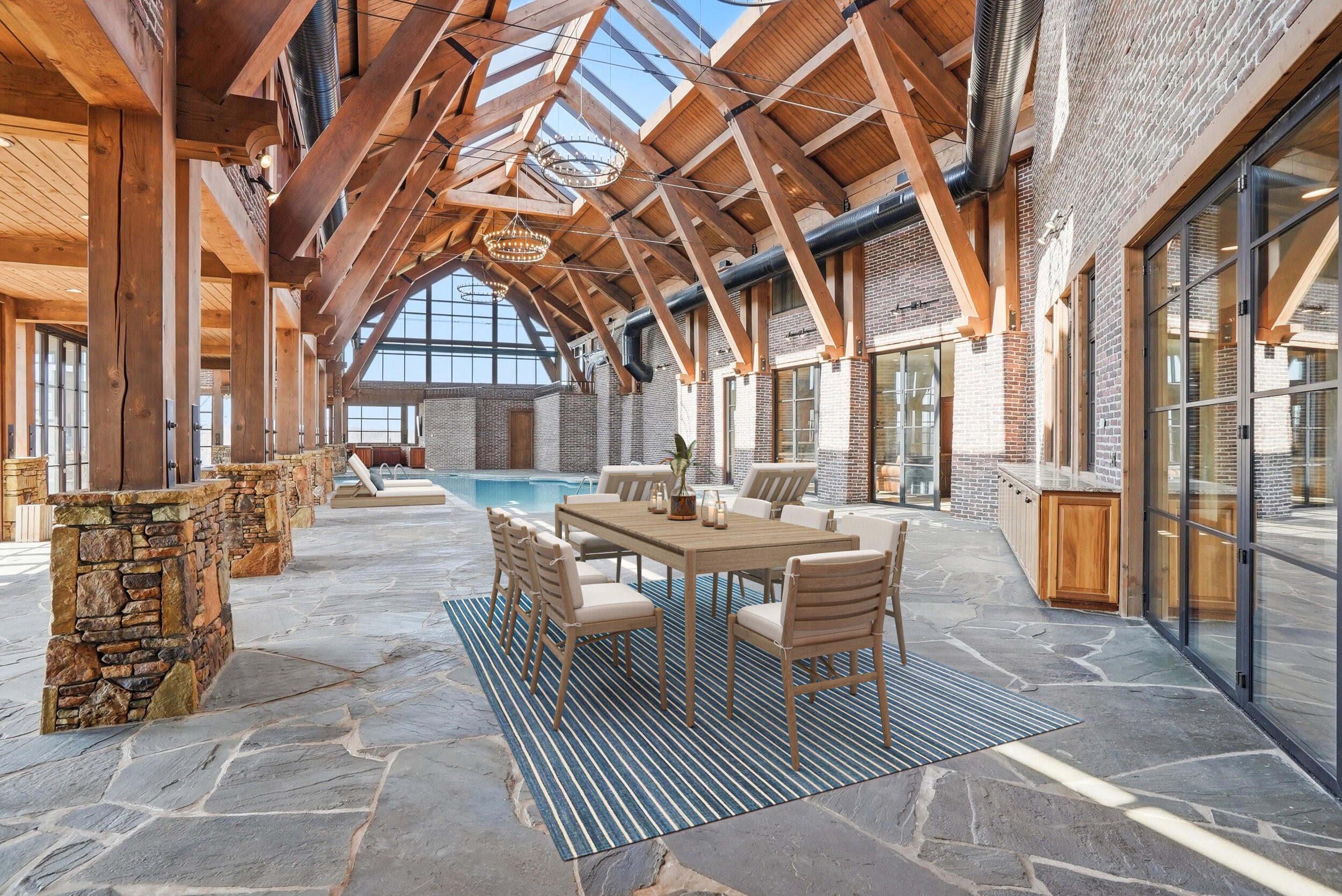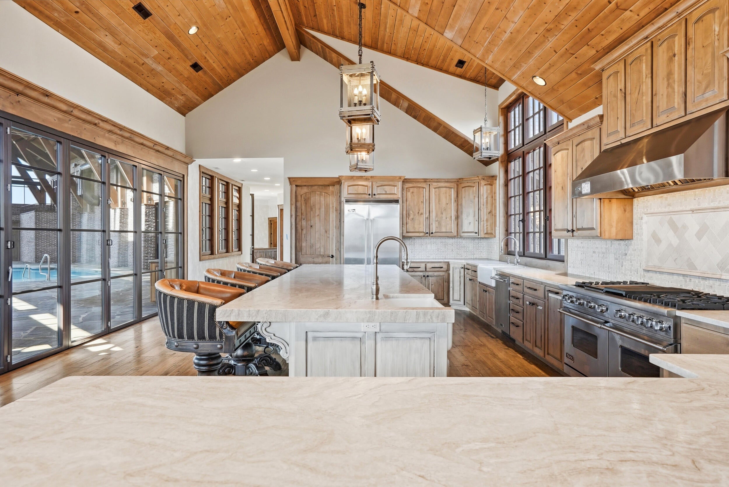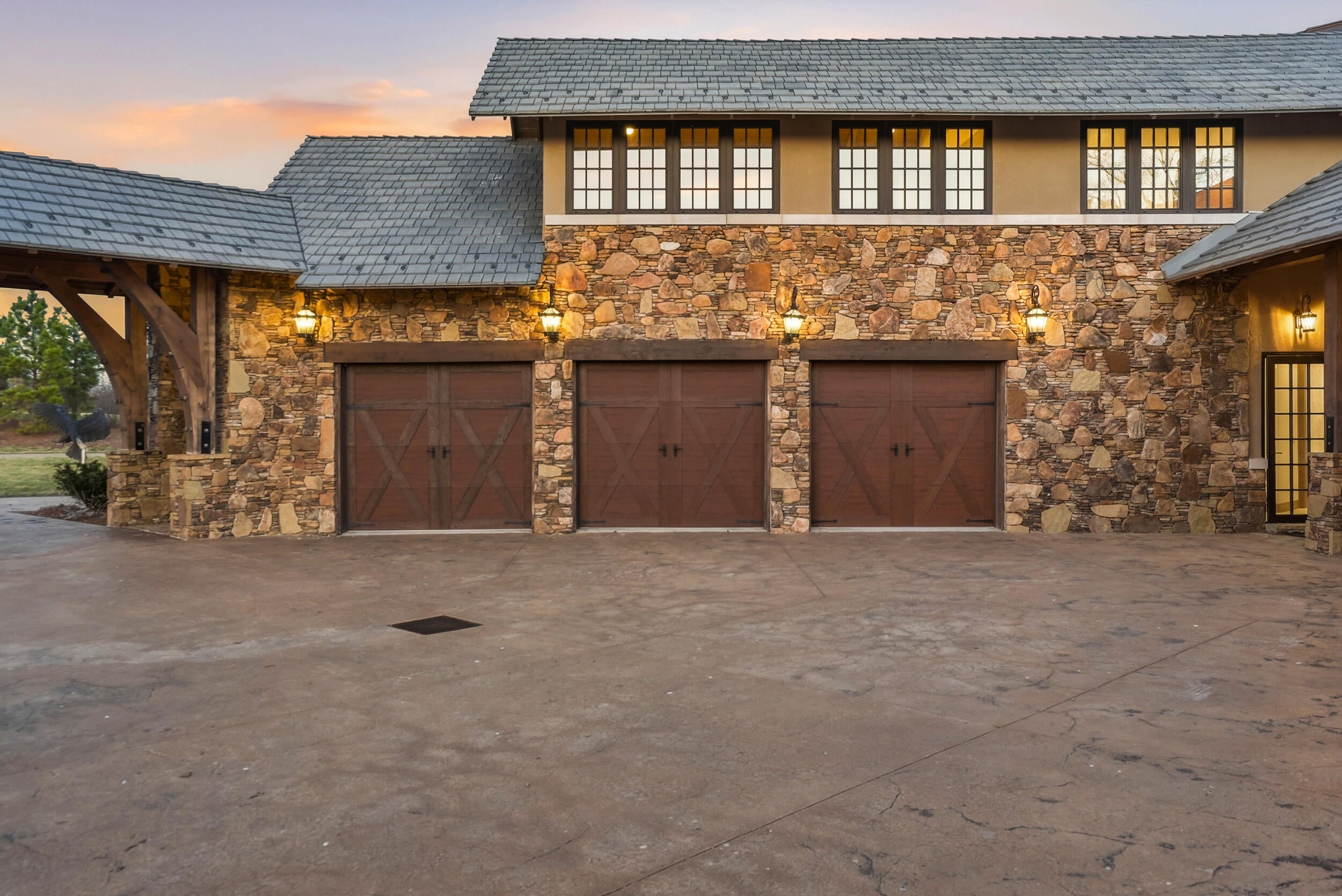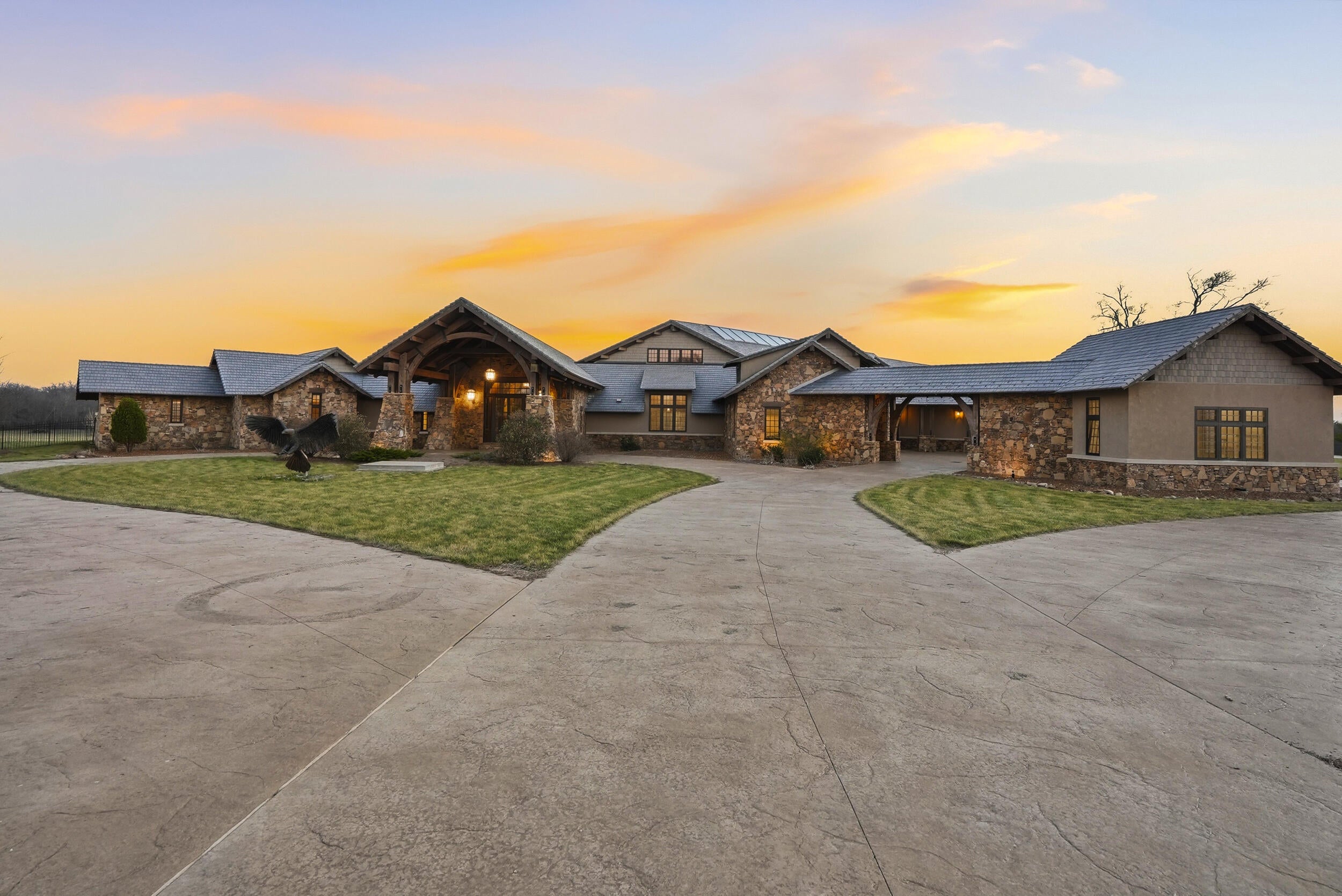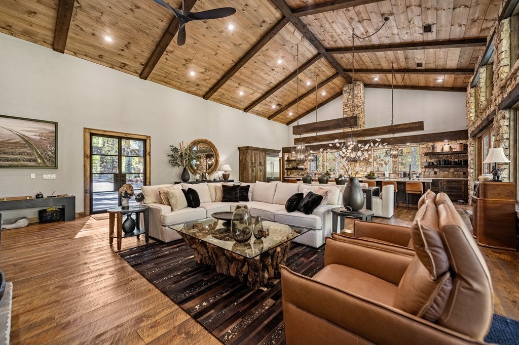 Set on 16 private acres, this custom estate blends refined luxury with breathtaking architectural detail. Designed by Brad Norris, it offers 5 bedrooms, 8 baths, dual living areas, an 8-car garage, and soaring timber-framed ceilings.