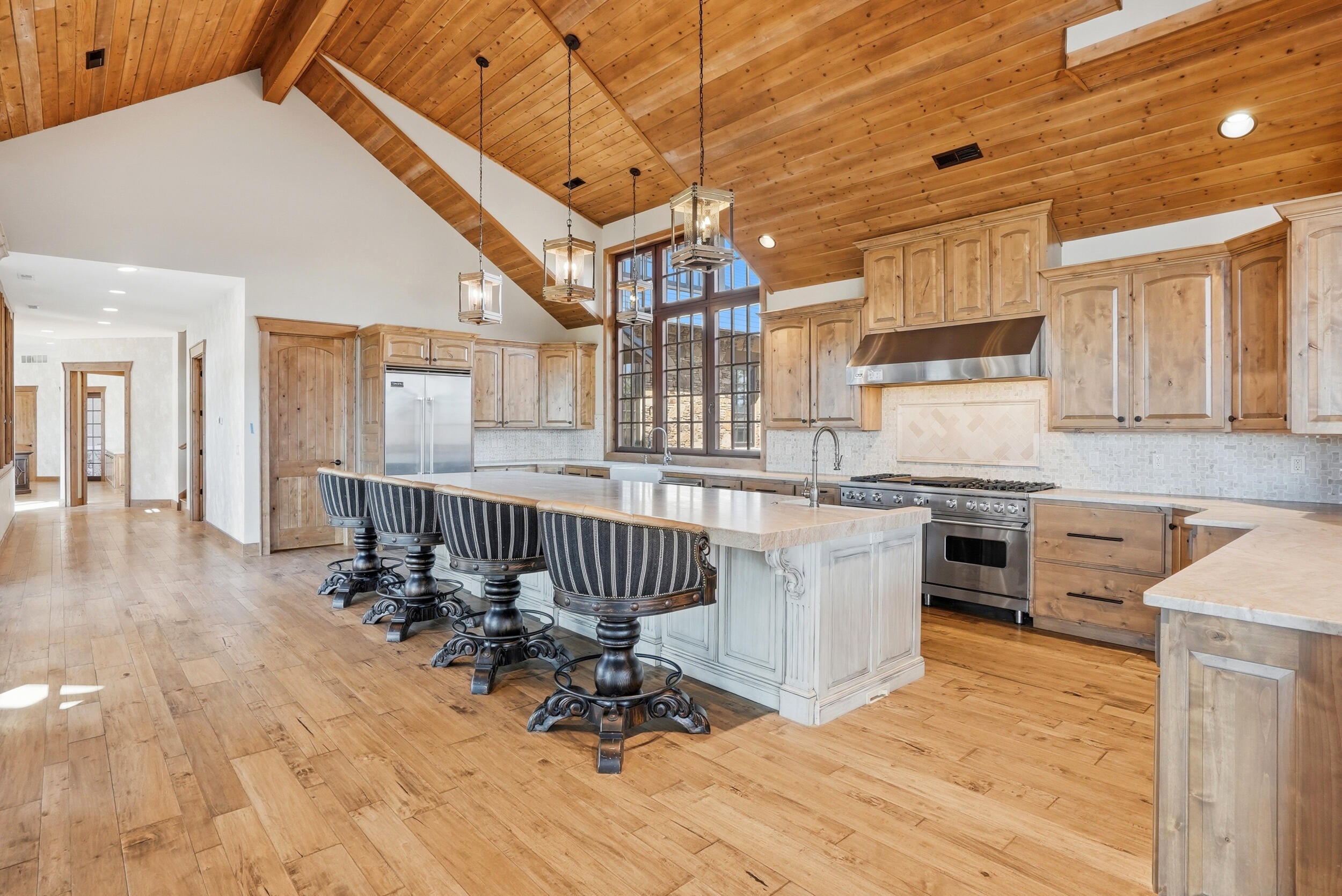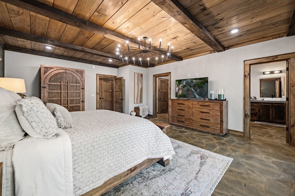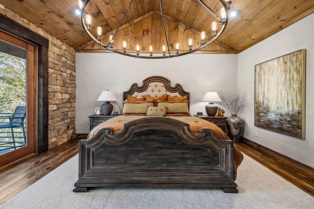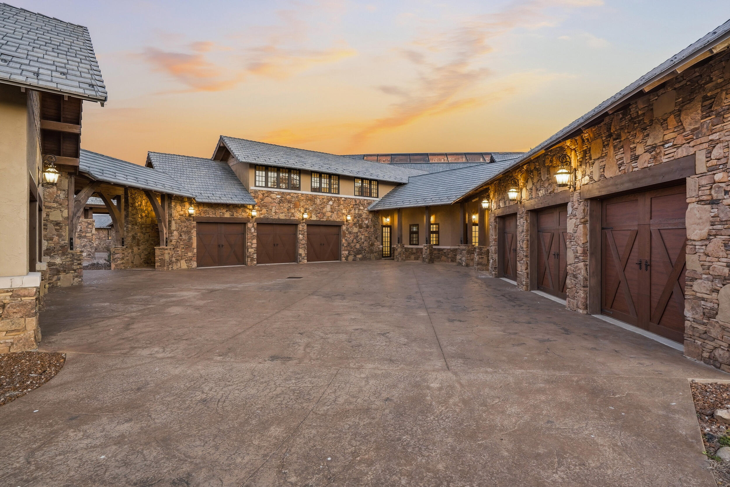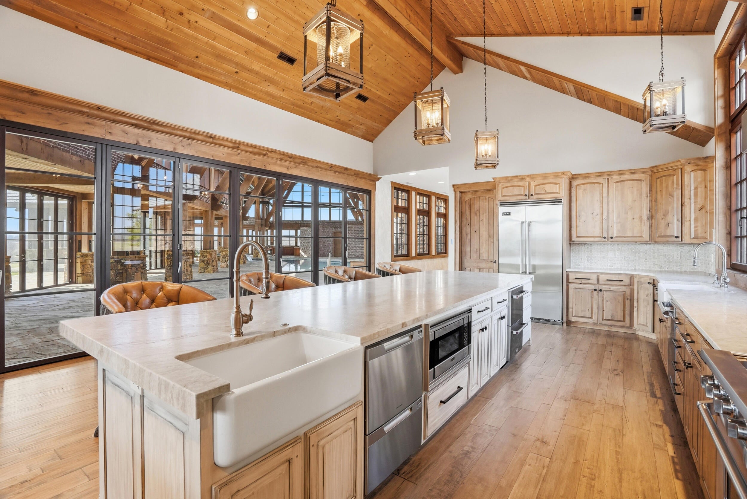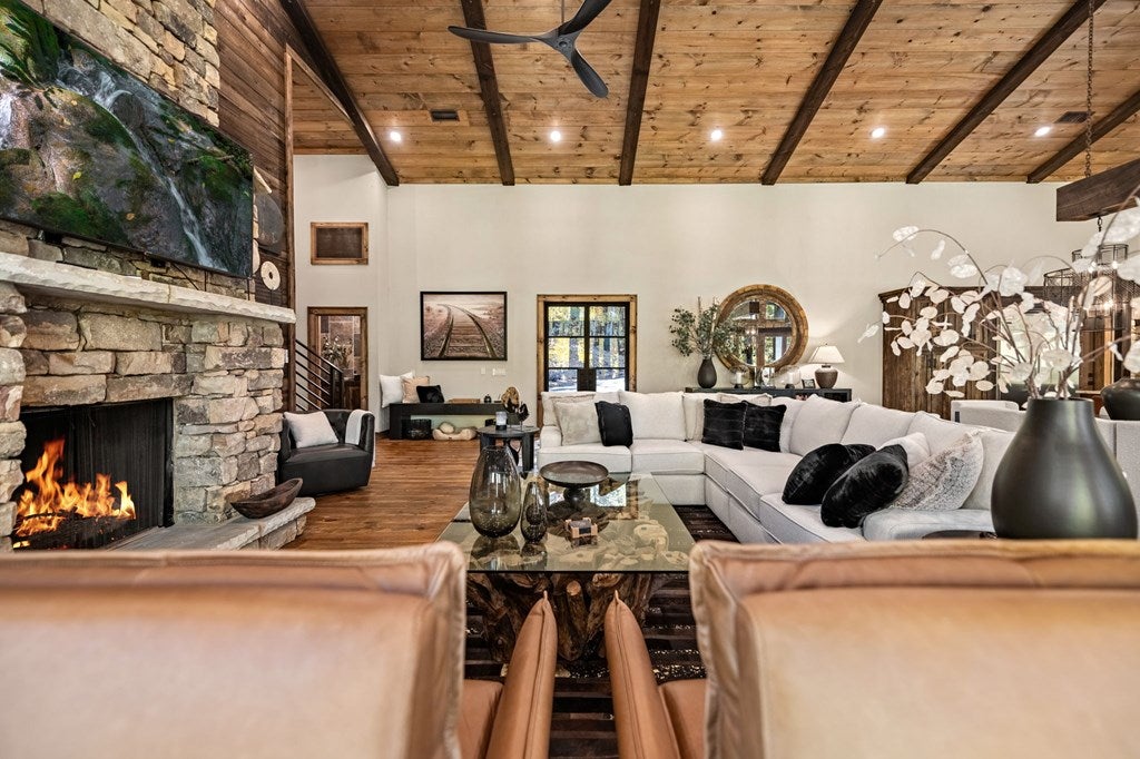 Set on 16 private acres, this custom estate blends refined luxury with breathtaking architectural detail. Designed by Brad Norris, it offers 5 bedrooms, 8 baths, dual living areas, an 8-car garage, and soaring timber-framed ceilings.