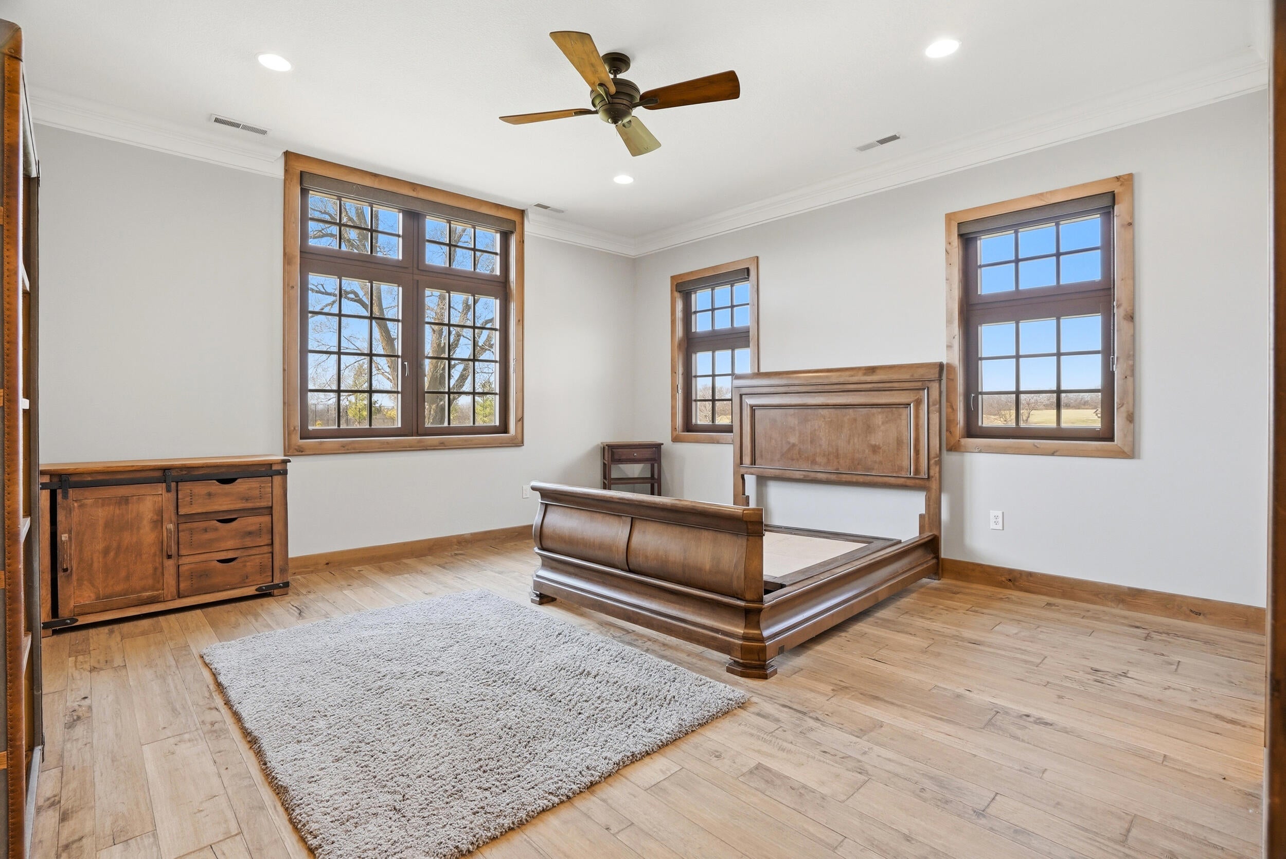 A setting that allows you to step away from it all, without sacrificing everyday convenience. Welcome to this custom-built all-brick and stone estate, privately set on 6.7 acres. As you arrive, the openness of the land and wooded backdrop create a sense of calm that is felt immediately. Offering a rare combination of usable acreage, privacy, and accessibility, this property delivers the feel of country living while remaining just minutes from major highways. With equestrian potential, this is a lifestyle you can fully experience. As you step through the front door, the home immediately exudes a high level of quality and custom craftsmanship, with upgraded trim work, crown molding, and substantial 7.25 inch baseboards creating a refined presence throughout the main living spaces.The living room opens seamlessly into the kitchen, creating a natural flow, while the full masonry fireplace adds warmth. Just off the main living area, the dining room offers generous space for gatherings and is highlighted by a custom-built dining table and sideboard crafted from wood reclaimed from the original barn that once stood on the property.The kitchen is a true focal point, centered around a 10-foot island and framed by vaulted ceilings that draw in natural light. Custom cabinetry pairs with granite countertops, along with a 48-inch DCS gas range and stainless hood vent. A 48-inch built-in smart side-by-side refrigerator completes the space. The glass door leads out to the covered patio overlooking the acreage and is the best seat on the property.The walk-in pantry offers custom cabinetry and is complemented by a separate goods and supplies closet. Down the hall, the mudroom features a custom-built hall tree and additional storage, creating a clean drop zone. The gorgeous main level primary suite is set apart to provide privacy. A gas fireplace creates a refined focal point, complemented by custom casing, mantle, shelving, and tile work. Large windows frame the acreage and bring in natural light, while custom plantation shutters provide a timeless finish. The suite also features two custom closet systems. The main floor laundry room includes dual hook-ups. The upper level includes three generously sized bedrooms, including a 17x14 suite with its own private bath, ideal for guests or multi-generational living. The finished lower level is a true extension of the home with 10-foot ceilings. Natural light pours in through the walk-out, highlighting a home gym with specialized flooring and mirrored walls. The recreation space features a full masonry fireplace, with plumbing in place for a future bar. Behind the walls, the homes construction and mechanical systems are equally impressive, including 8-inch poured concrete foundation walls and full insulation in both the basement and garage. The 31-foot deep by 46-foot wide four-car garage is heated and includes a 1-foot stem wall for full wash-down capability, its own HVAC system, and a direct half-bath that accessible from both the outside or the garage. Additional upgrades include zoned high-efficiency HVAC, two tankless water heaters, and a HALO whole-house water filtration system. There is a 24x40 outbuilding/shed, and a 26x8 greenhouse, creating flexibility for hobbies, equipment, or recreation. The setting offers a rare balance of privacy and convenience, with peaceful acreage just minutes from Tesson Ferrys shopping, dining, and everyday amenities, along with quick access to major highways. It is a combination that is increasingly difficult to find and even harder to replace. Tucked away, yet close to everything you need. Experience the home in person at the grand open house this Thursday from 4:30 to 6:30, or contact us to arrange a private showing.