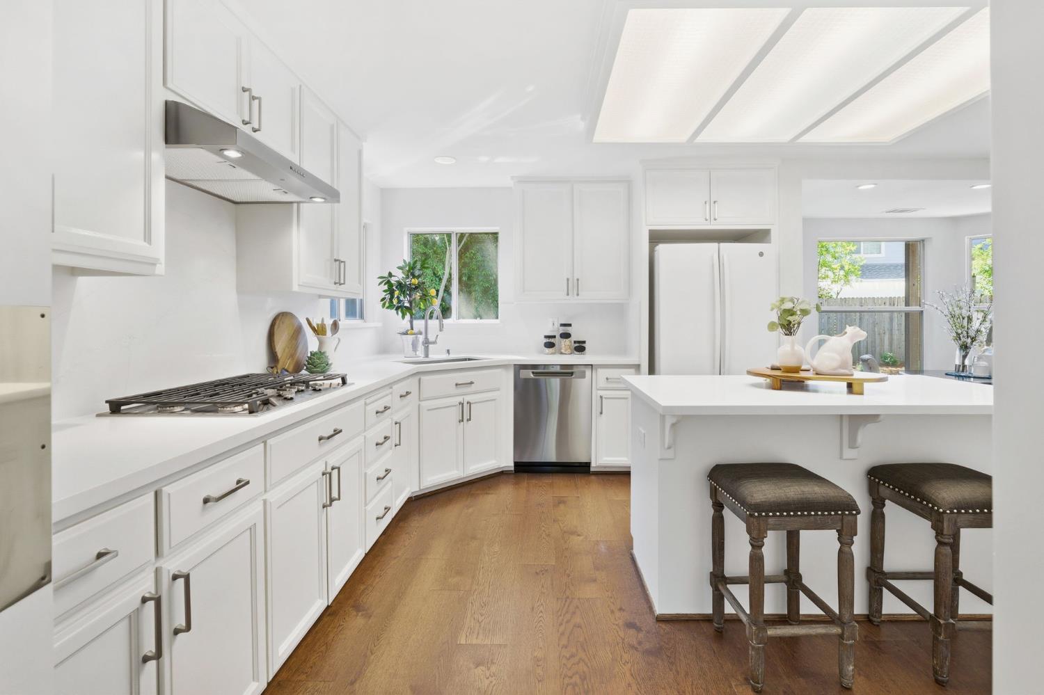 Beautifully updated 4 bedroom, 2.5 bath home offering 2,280 sq ft, ideally located on a quiet Willow Creek cul-de-sac next to the greenbelt and park. Light and bright throughout, this home welcomes you with a vaulted ceiling living room, formal dining area, and an open concept kitchen and family room designed for both everyday living and effortless entertaining. The cozy fireplace and sliding glass door create a seamless connection to the freshly landscaped backyard, offering a comfortable indoor outdoor flow that is perfect for gatherings, weekend barbecues, or quiet evenings at home. The kitchen has been tastefully remodeled with new quartz countertops, extended to both the backsplash and window ledges, paired with brand new stainless steel appliances including built-in gas cooktop, double oven, hood fan, dishwasher, sink, faucet, and disposal. An island with seating and a sunny breakfast nook provide flexible dining options, along with generous cabinet storage that makes daily living both practical and enjoyable. The open layout allows the kitchen to stay connected to the family room and backyard, creating a natural gathering space. Extensive updates include fresh interior and exterior paint, new roof (2025), and water heater (2021), creating a truly move-in ready experience. The main level features stunning 5 inch hardwood flooring, while bathrooms and the laundry room offer 12x24 luxury vinyl tile, along with added cabinetry and a utility sink for convenience. Upstairs, the spacious primary suite feels like a private retreat with its own balcony framed by mature redwood trees, offering a peaceful place to start or end your day. The ensuite bath features 12x24 luxury vinyl tile, a soaking tub, double sink vanity, and a new frameless glass shower, along with a generous walk-in closet and new ceiling fan. Additional improvements include new door knob hardware, hinges, and fixtures throughout, adding a clean and cohesive finish. The landscaped yard provides space to relax and enjoy without heavy maintenance. Enjoy peaceful walks along the nearby greenbelt where a canopy of mature trees creates a shaded and serene setting, with access to parks and Putah Creek completing the lifestyle. This turn key home offers comfort, style, and a peaceful setting with very little left for the next owner to do.