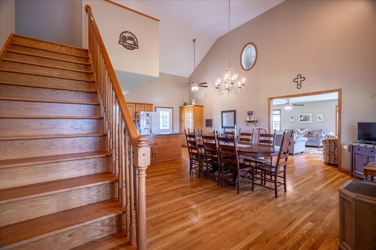 Once you visit this 60 acre paradise tucked away just south of Lawrenceburg, you will be ready to make this your home. This well cared for property has trails that will take you across the entire farm. So many options for additional housing throughout allows the perfect fit for those looking for a multi family opportunity. Love Branch has multiple springs feeding into it and is a great place to spend the day relaxing. 30 acres are currently farmed, 20-22 acres are cut for hay, and the remaining land is wooded. The home is so inviting with the cathedral ceiling in the kitchen and dining area and a large loft overlooking this space. There are 2 primary suites with large closets and full baths. One is on the main floor and the other on the 2nd floor. You will also find a home office with an amazing storage closet located over the living area. Offering 3 bedrooms, the office and loft could also be used as extra bedrooms. There is a 2 car garage, heated and cooled, connected to the house by a breezeway and it also has a full bath, built in cabinets and a staircase leading to the spacious storage area above the garage that is ready to be closed in if needed. The home is serviced by 3 separate heating and cooling units. In 2018 a 34x50, fully insulated shop was added with 2 large electric garage doors and an inviting front porch. Another insulated shed is perfect for lawnmowers and yard tools. So much love has been poured into this fabulous property and it does not go unnoticed!