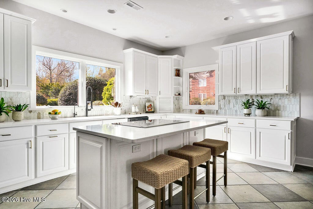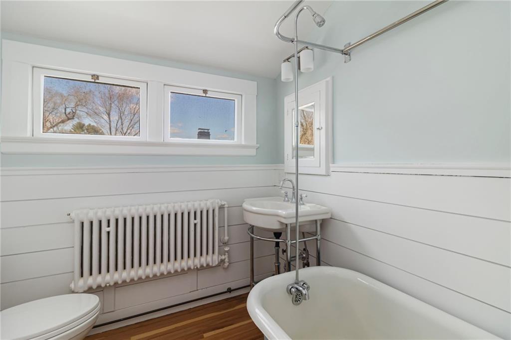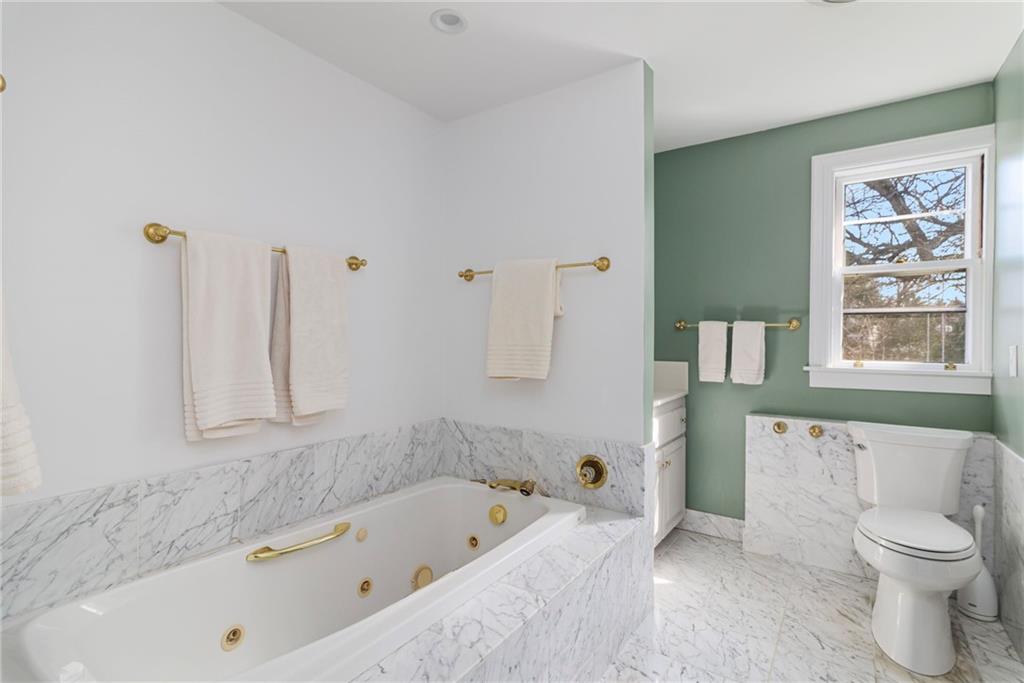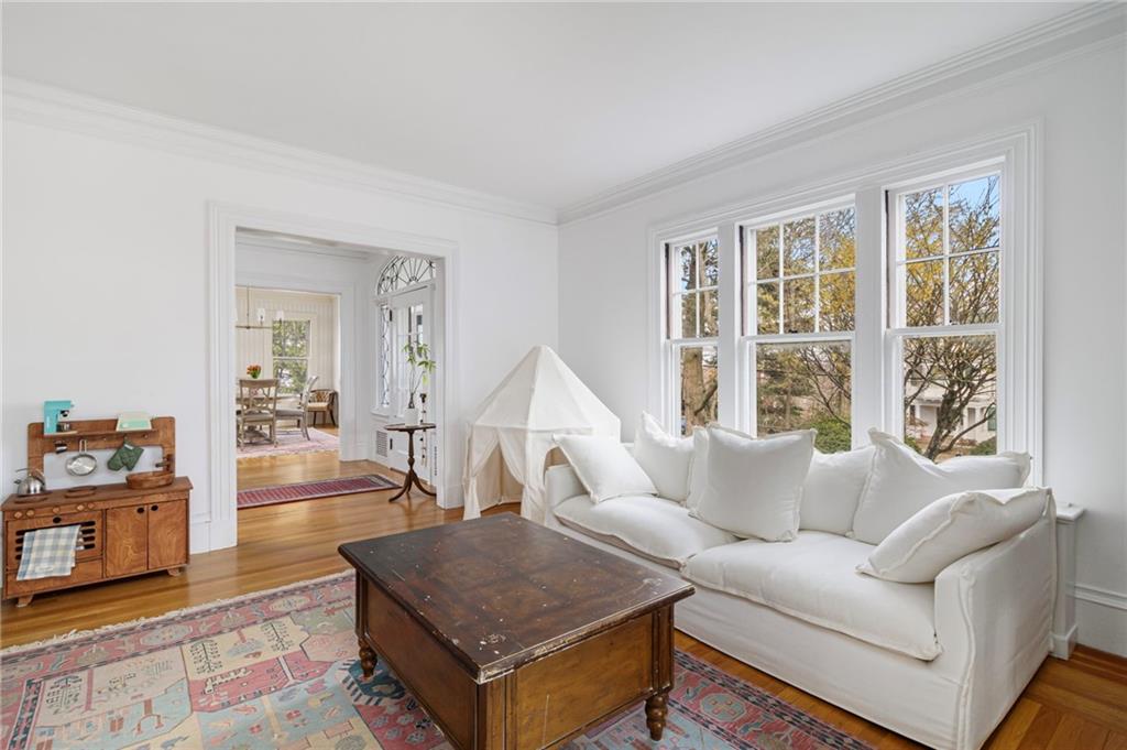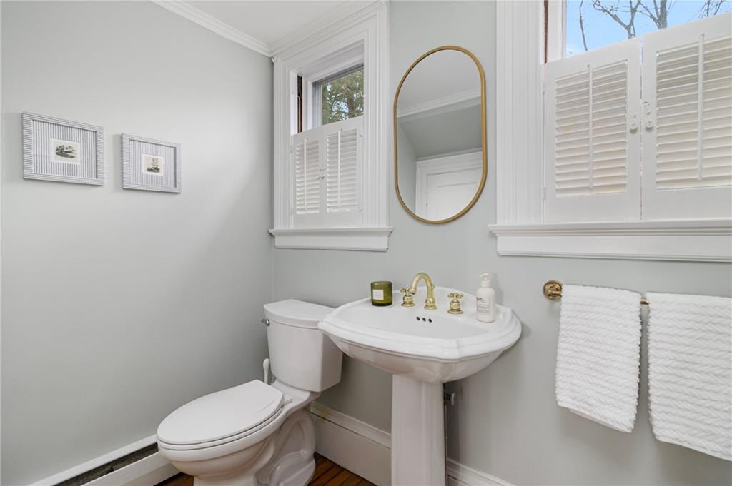 Set high on one of Warwicks most coveted streets, this 5-bedroom home blends historic charm with modern updates, all within walking distance to Main Street, East Greenwich. Enjoy restaurants, shops, cafes, The Odeum, library, and marina with waterfront dining steps away. Built in 1924, the home features nearly all new mechanicals, including high-efficiency heating, new electrical, and a 2-year-old roof. Refinished hardwood floors, fresh paint, updated lighting, and Schumacher wallpaper honor its original character. A freshly paved driveway and new LG washer/dryer add convenience. Spanning 3 levels, the home offers abundant natural light, period details, 3 fireplaces, and distant water views. The 1st floor features a redesigned eat-in kitchen with white quartz countertops and stainless steel appliances, plus a scullery with prep sink and pantry, formal dining room, spacious living room, sunroom, half bath, and mudroom. The 2nd floor includes the primary bedroom with dressing area and ensuite, sitting nook with bay window, 2 additional bedrooms, and full bath. The renovated 3rd floor with full bath offers flexible space for bedrooms, guests, office, playroom, or studio. Outside, the private patio, landscaped lawn, and garden create a peaceful retreat. Blending timeless character with thoughtful updates, 291 Spencer offers refined coastal living in a prime walkable location, inviting its next owner to complete the transformation into their ultimate dream home.