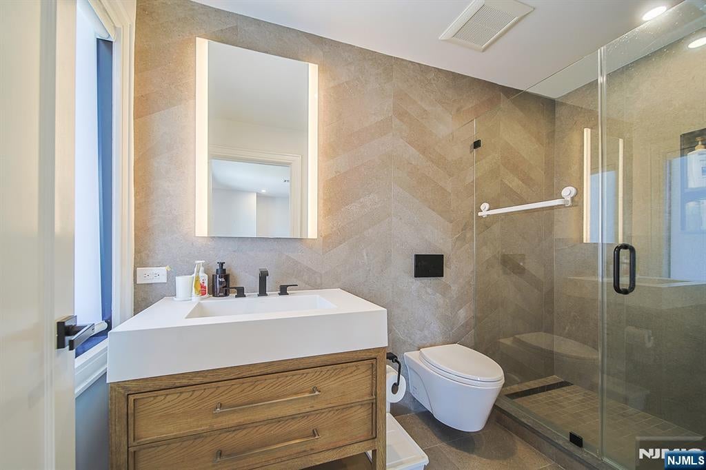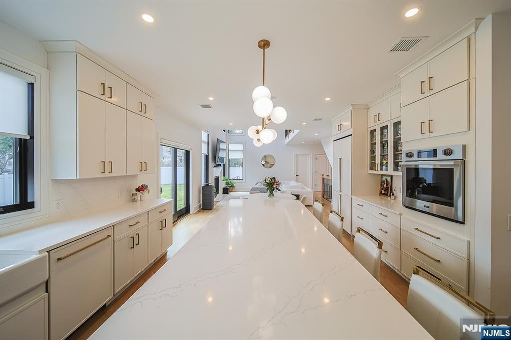 Stunning Nearly-New Luxury Home in Paramus East Side! Built just 2 years ago, this exceptional home offers 6 BR, 6.5 BA, and approx. 6,578 sq ft of elegant living space with a walk-out basement. Situated on a quiet, tree-lined street, this home features a striking white stucco exterior. Grand 2-story foyer leads to formal LR, DR, great room, and a chefs kitchen with designer cabinetry, professional appliances, oversized center island, walk-in pantry & mudroom. 1st floor includes guest BR with en-suite bath. 2nd floor features a luxurious primary suite with spa-like bath, soaking tub, makeup vanity & massive WIC, plus 3 additional BRs, all with en-suite baths & WICs. Fully finished basement offers movie theater, gym, BR, office, full bath & rec room. Smart home with integrated lighting & sound system. Located in sought-after Paramus with top-rated schools, low taxes, easy commute & premier shopping.