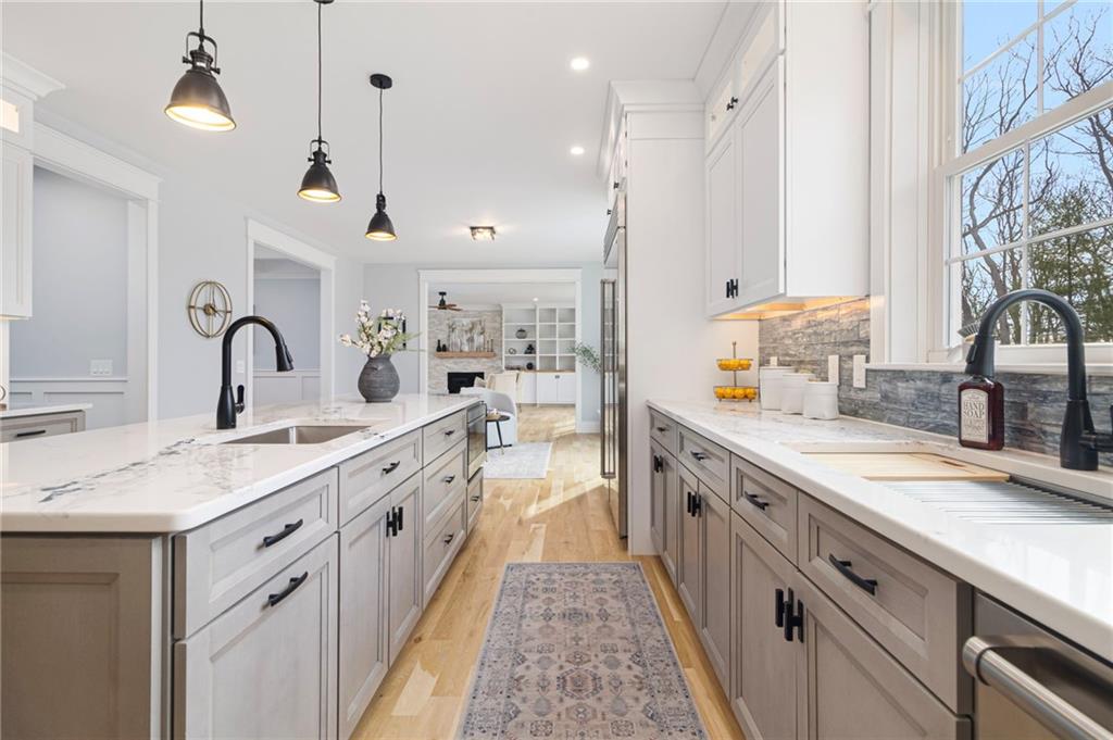 *BRAND NEW Construction* in Blueberry Hills Estates in coveted East Greenwich! Connected to TOWN WATER, BRAND NEW custom luxury home offers elegance, comfort, & cutting-edge smart-home technology! Private 1.2-acre cul-de-sac lot beautifully manicured & boasts 5,730 sqft 5 bed 3.5 bath home w/ oversized 3-car garage. Soaring open foyer & grand chandelier welcome into expansive open layout w/ oak hardwood floors & custom woodwork throughout. Gourmet kitchen featuring top-of-the-line Sub-Zero, Wolf, Cove appliances, custom cabinetry & beverage center, dual wine/beverage fridge, dual sinks, & spacious eat-in area. Includes living room w/ fireplace & custom built ins, gorgeous formal dining room & study w/ coffered ceilings, 5 spacious bedrooms, 3.5 bathrooms, mud-room & laundry room. Private primary suite features cathedral ceiling, marble fireplace, spa-like ensuite w/ premium finishes, custom shower, soaking tub, & dual walk-in closets w/ custom built in systems. 1,600sqft finished walk-out lower level w/ full bathroom & additional rooms for in-law/guest suite, home gym & media room, etc. Smart-home technology w/ state-of-the-art features: industry grade WiFi system, smart door lock, video monitoring, garage doors, thermostats & temperature sensors, irrigation system w/ weather technology, all w/ remote operation. Brand-new, fully custom, turn-key dream home without the wait!