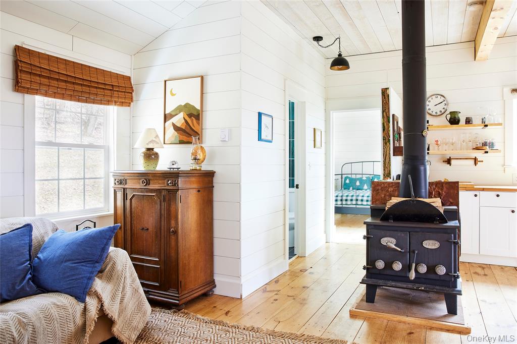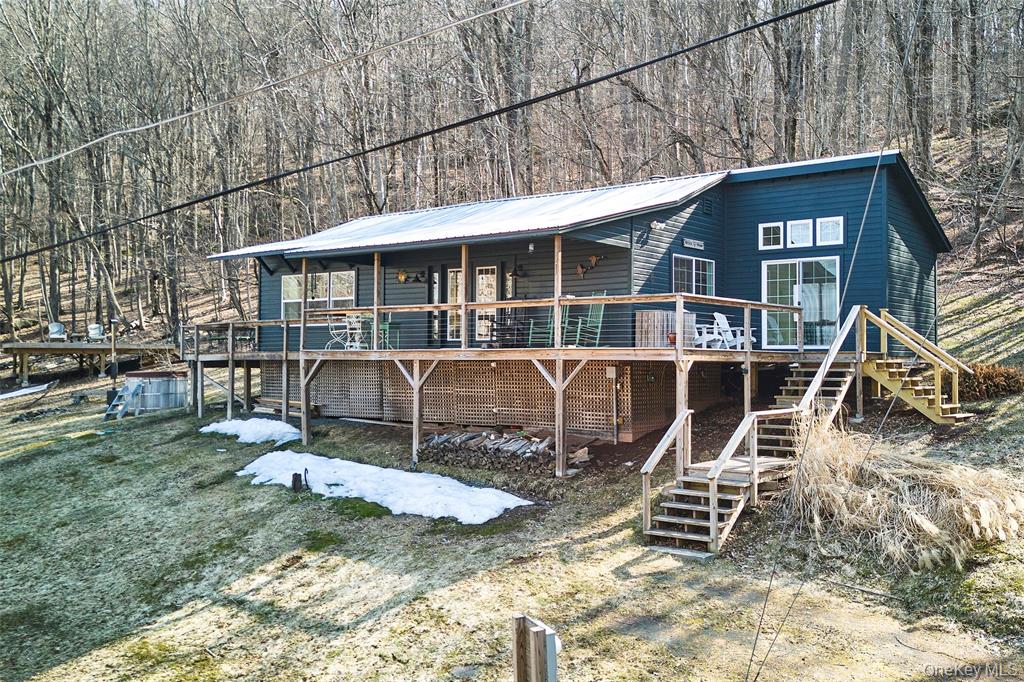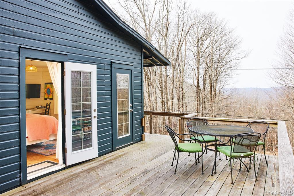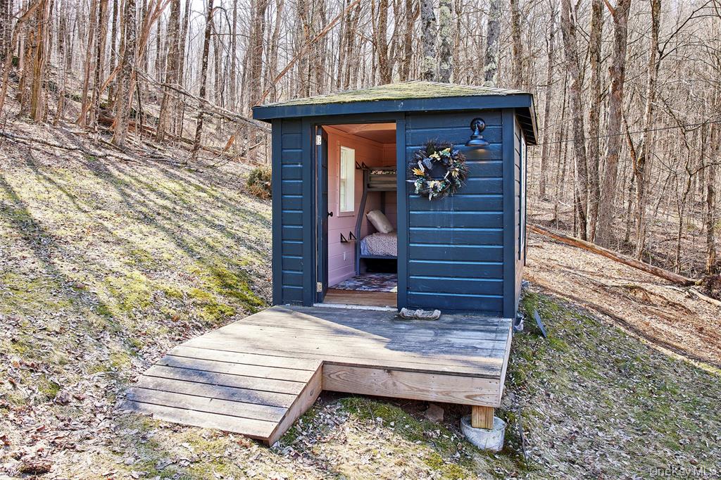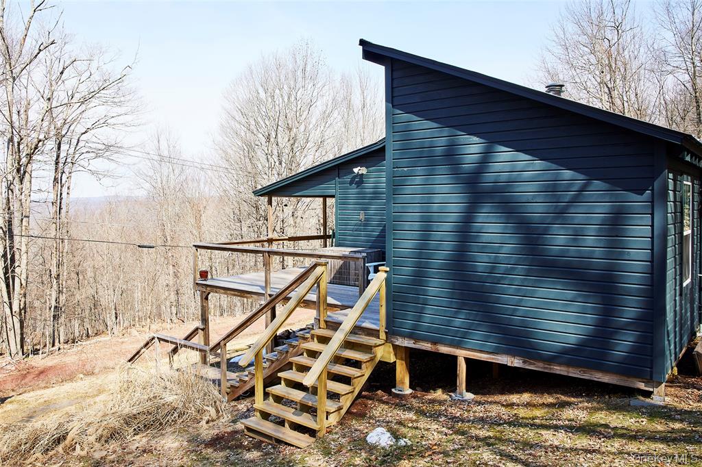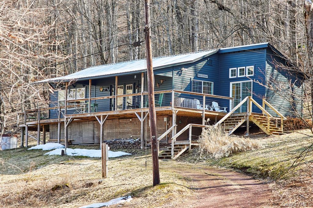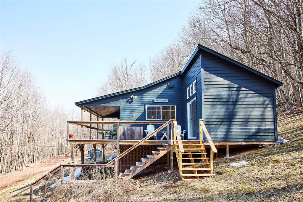 Sunrise Sanctuary at Hunter Lake. Wake up above the Catskills, where light, air, and stillness meet. Tucked into the rolling landscape of the Sullivan County Catskills, this fully updated, year-round 2-bedroom, 2-bath home sits on 1.77 private acres, offering the perfect balance of comfort, nature, and quiet inspiration, just 90 minutes from NYC. Start your mornings on the expansive sunrise-facing deck, where the sky opens in soft hues, and the surrounding forest and a wood-fired hot tub also face the sunrise. Inside, the home opens up beautifully with a spacious kitchen that flows seamlessly into an open floor plan living and dining area, creating an airy, connected space filled with natural light. The design feels both expansive and grounded, enhanced by warm textures and a woodstove that anchors the main living space, perfect for cozy evenings after a day outdoors. There is a 12 X 20 Work shed and a charming “she shed” studio that adds flexibility and character. Ideal as a creative retreat, workspace, or private guest escape. With access to Hunter Lake, you’re moments from kayaking, swimming, and quiet shoreline afternoons, bringing the full Catskills lifestyle to your doorstep. Whether youre searching for a weekend getaway, a full-time residence, or a short-term rental opportunity, this property captures the essence of what draws people to the mountains: light, land, and a slower way of living