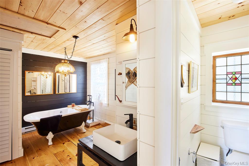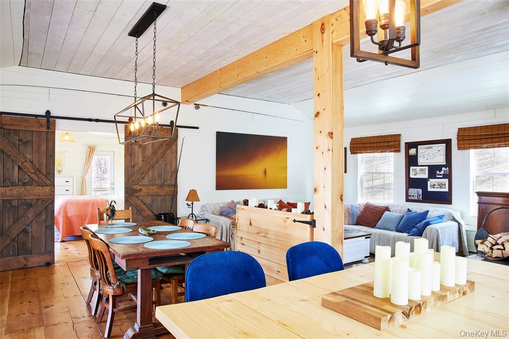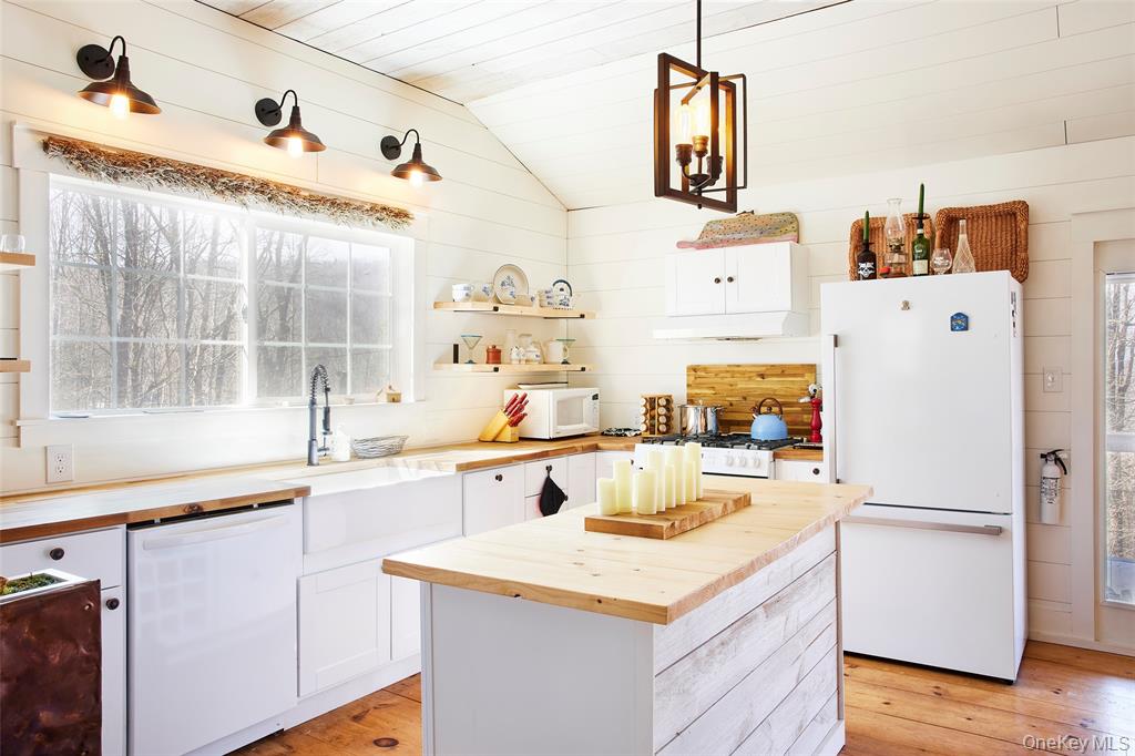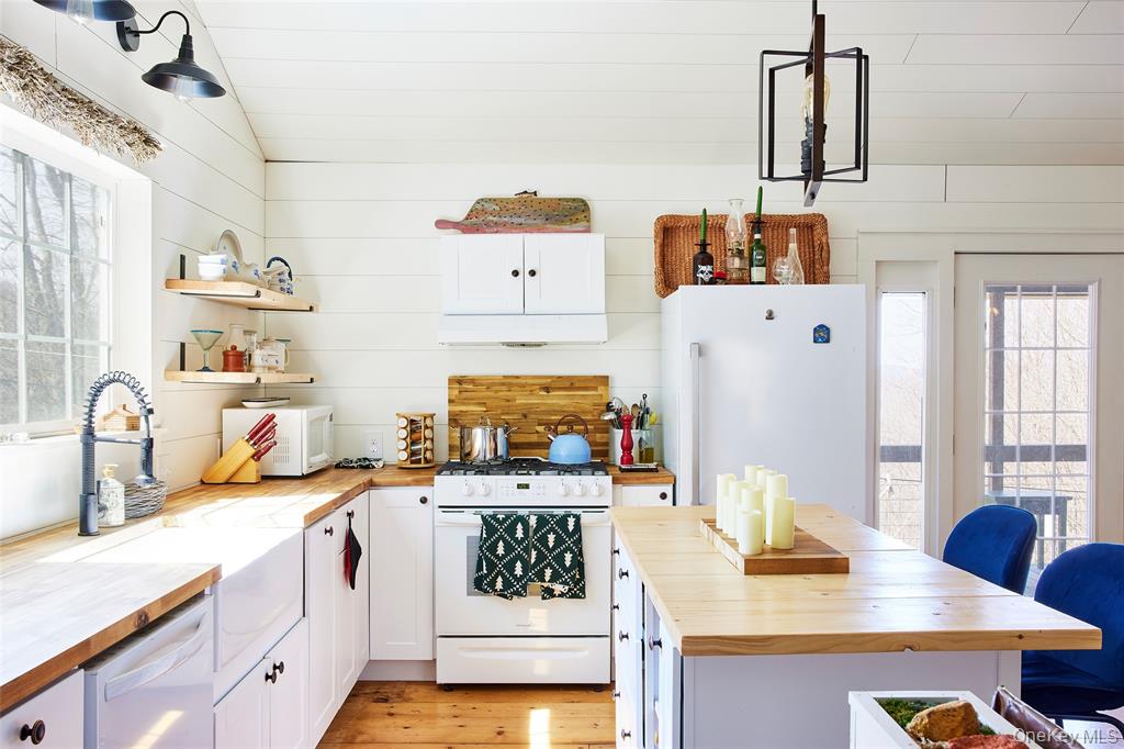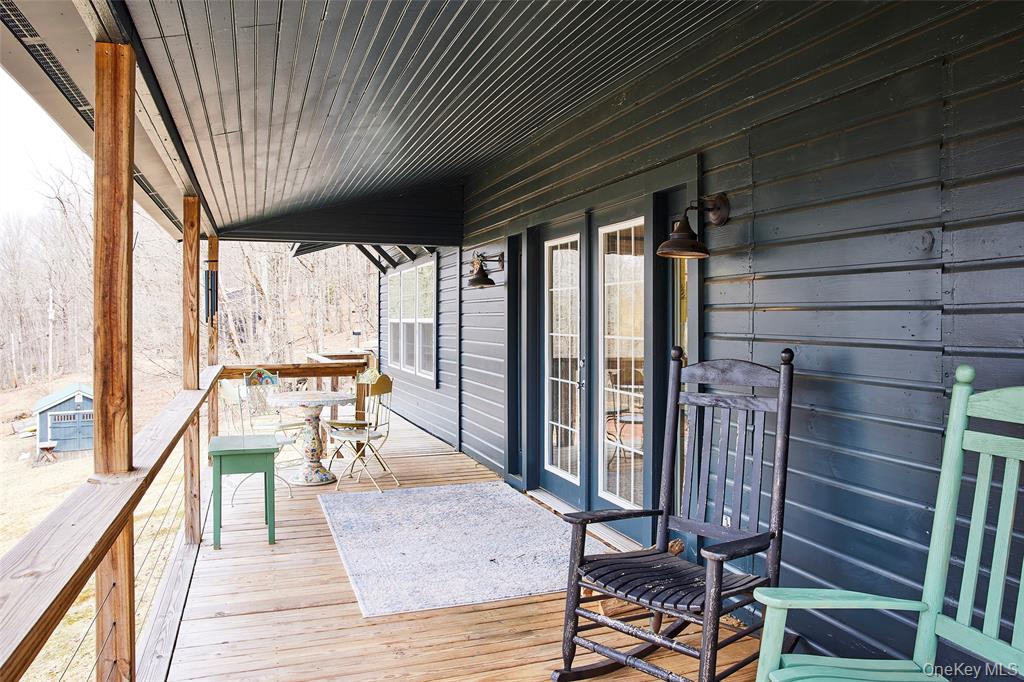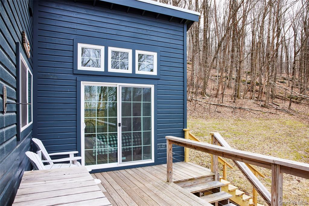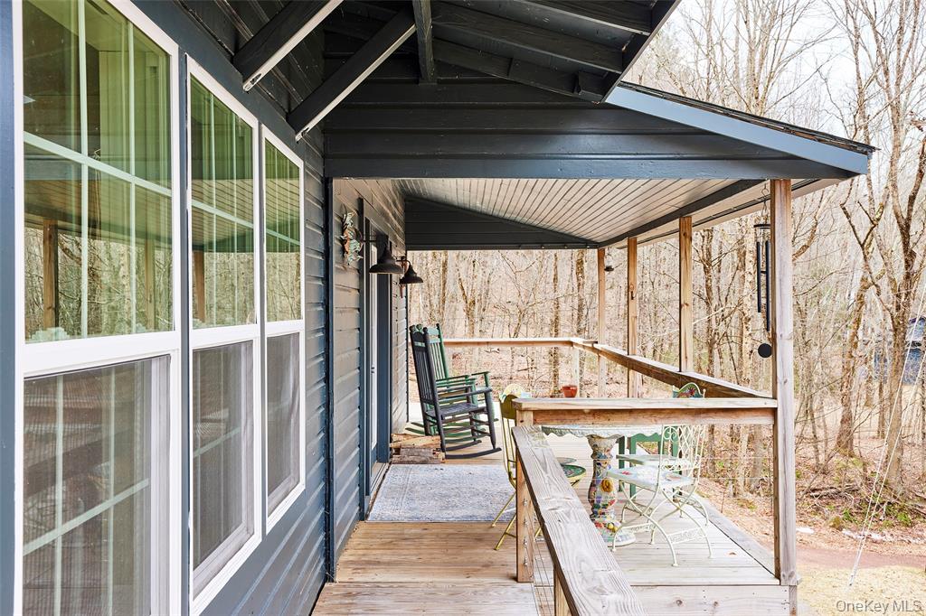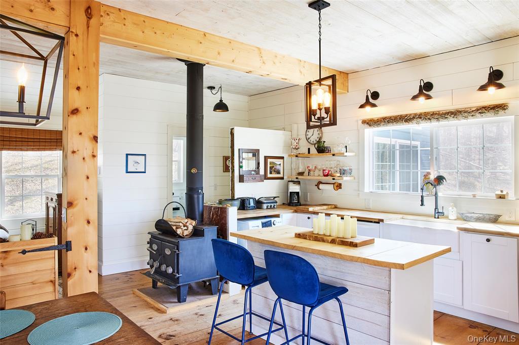Sunrise Sanctuary at Hunter Lake. Wake up above the Catskills, where light, air, and stillness meet. Tucked into the rolling landscape of the Sullivan County Catskills, this fully updated, year-round 2-bedroom, 2-bath home sits on 1.77 private acres, offering the perfect balance of comfort, nature, and quiet inspiration, just 90 minutes from NYC. Start your mornings on the expansive sunrise-facing deck, where the sky opens in soft hues, and the surrounding forest and a wood-fired hot tub also face the sunrise. Inside, the home opens up beautifully with a spacious kitchen that flows seamlessly into an open floor plan living and dining area, creating an airy, connected space filled with natural light. The design feels both expansive and grounded, enhanced by warm textures and a woodstove that anchors the main living space, perfect for cozy evenings after a day outdoors. There is a 12 X 20 Work shed and a charming “she shed” studio that adds flexibility and character. Ideal as a creative retreat, workspace, or private guest escape. With access to Hunter Lake, you’re moments from kayaking, swimming, and quiet shoreline afternoons, bringing the full Catskills lifestyle to your doorstep. Whether youre searching for a weekend getaway, a full-time residence, or a short-term rental opportunity, this property captures the essence of what draws people to the mountains: light, land, and a slower way of living