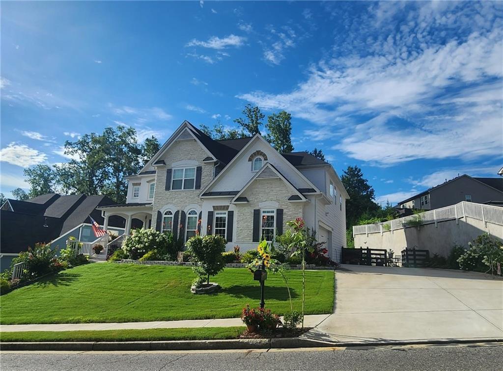 Welcome to an exceptional opportunity in Parkstone, This Toll Brother's home is the sought after Highcroft plan and features a breathtaking bowed wall of windows that fills the space with natural light and instantly draws you in. This 6-bedroom 6-bathroom home offers a true open concept layout with soaring ceilings and details that make a statement without trying too hard.The two-story living room and oversized dining area flow seamlessly together, centered around a dramatic floor-to-ceiling fireplace and coffered ceilings that add just the right amount of character. It features a stunning open rail stairway finished to the basement.A showstopping kitchen designed to impress and features an oversized island, designer backsplash, premium stainless-steel Kitchen-Aid appliances and a double oven with a built-in microwave, perfectly blending everyday function with an elevated level for entertaining.On the main level you'll find an oversized guest suite with a full bath and walk-in shower, perfect for visitors or extended stays. Upstairs the owner's suite offers a true retreat with a large soaking tub, separate walk-in shower, dual vanities with plenty of counter space and an oversized walk-in closet. All bedrooms feature their own bath and large closet space.The newly finished basement adds even more flexibility with its own full kitchen, quartz counter tops, bedroom, storeroom, entrance foyer and full bathroom with dual vanities —ideal for guests, in-laws, a rental or for just extra living space.And then there's the backyard… a private oasis when in full bloom. Beautiful landscaping surrounds the home, complemented by retaining walls, six gardening beds, and a full irrigation system in both the front and backyard to keep everything looking its best year-round.This home isn't just about space; it's about how it feels the moment you walk in. This neighborhood combines resort style amenities and convenient access to everything North Forsyth County has to offer.