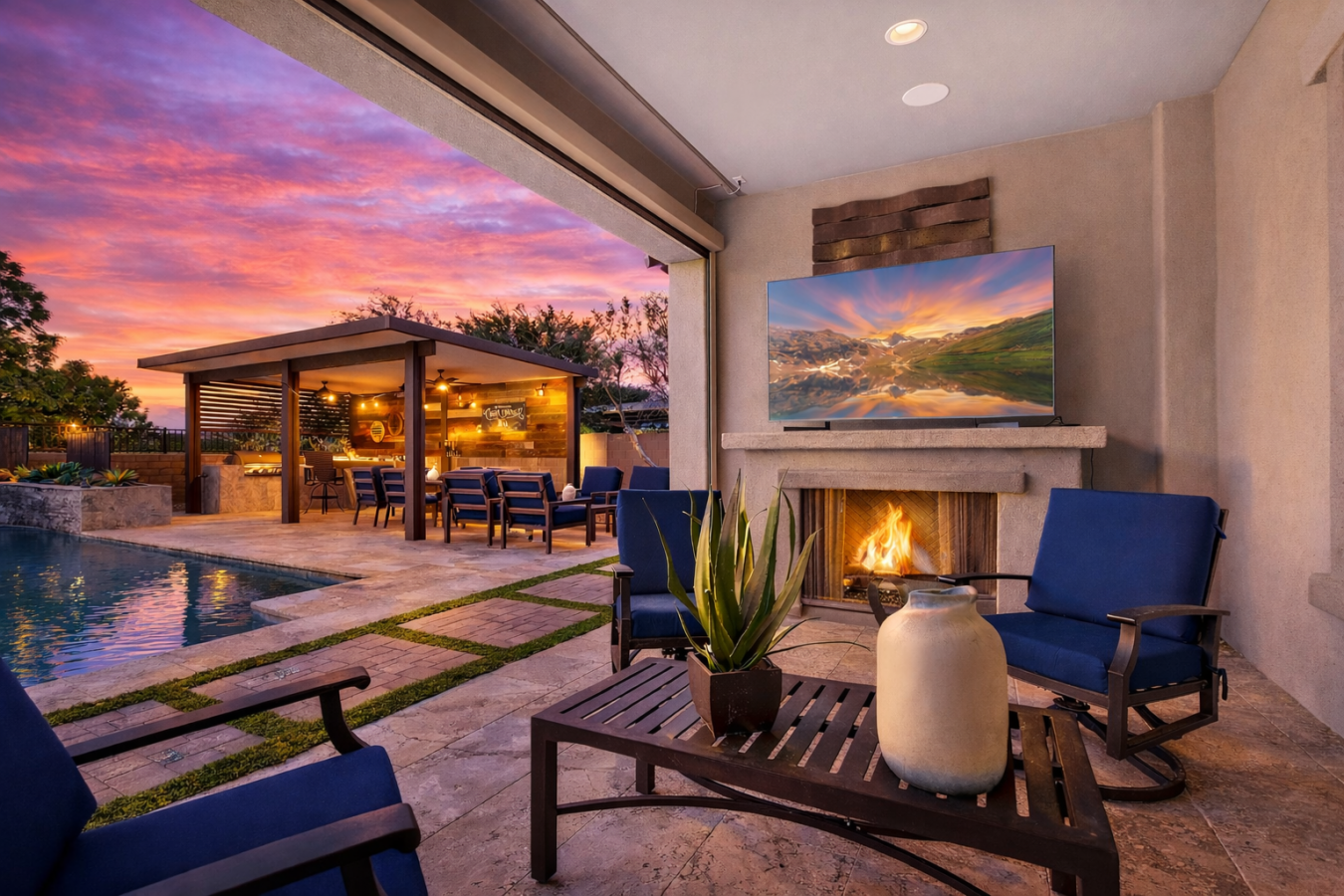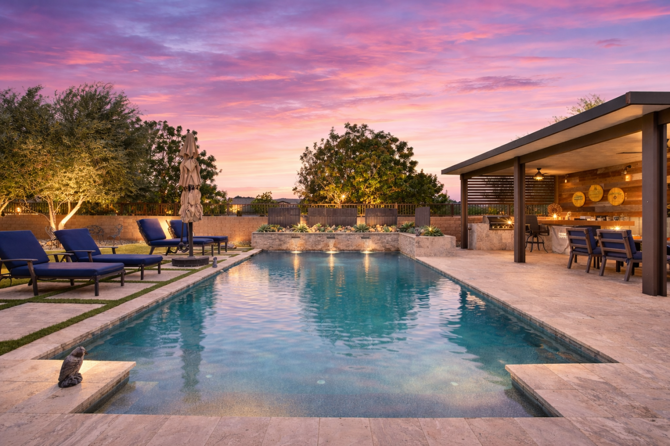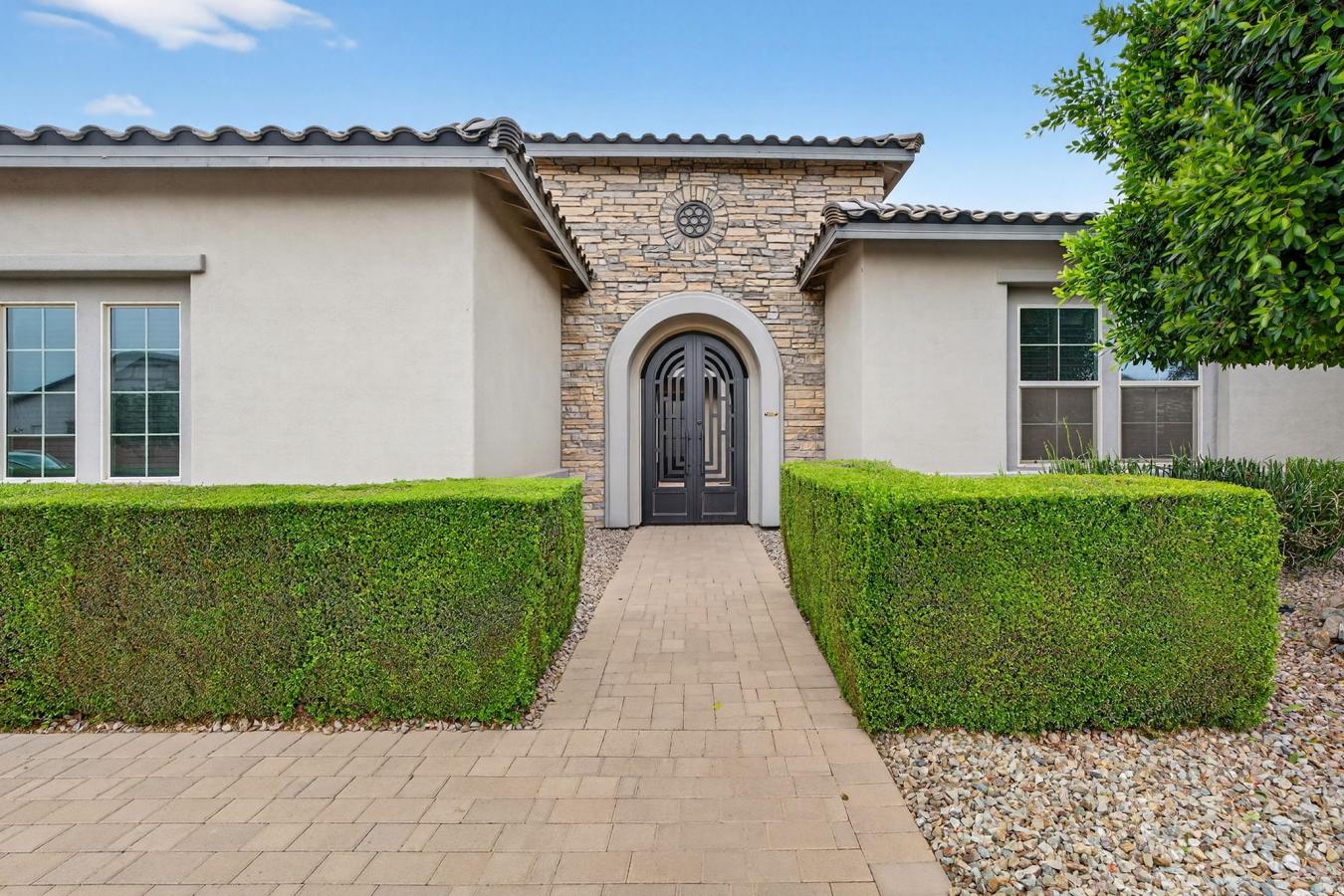 Resort-style living in Queen Creek, AZ. This beautifully designed home offers the elevated finishes and indoor-outdoor lifestyle buyers are searching for in Queen Creek real estate. The open-concept layout features a chef-inspired kitchen with rich custom cabinetry, expansive island seating, and seamless flow into the dining area and spacious living room. A dedicated office adds flexibility, while two secondary ensuite bedrooms provide exceptional comfort for guests or multigenerational living. The primary suite offers a spa-like bath and relaxing retreat. Outside, enjoy a sparkling pool, water features, covered patio, outdoor fireplace, and stunning outdoor kitchen pavilion built for entertaining.