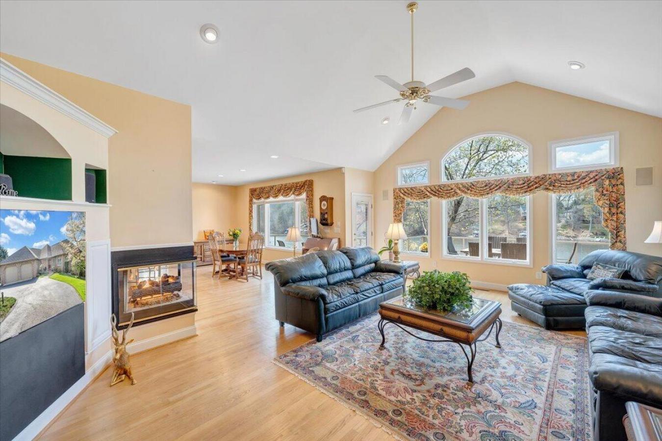 This all-brick waterfront home has been lovingly maintained by its original owner and offers comfortable living space in one of the lakes premier neighborhoods. With generous room sizes and a thoughtful layout across two levels, it provides the perfect setting for relaxed lake living and easy entertaining. The main level features a spacious primary suite, vaulted ceilings, and open living areas that feel bright and welcoming. A sunroom offers a peaceful place to unwind while enjoying beautiful lake views throughout the year. The kitchen connects seamlessly to the main gathering spaces, creating a natural flow for everyday living and entertaining. The full walkout lower level expands the homes versatility with a large recreation room, an additional kitchenette, plus 3 more bedrooms, a huge boat dock, and more.