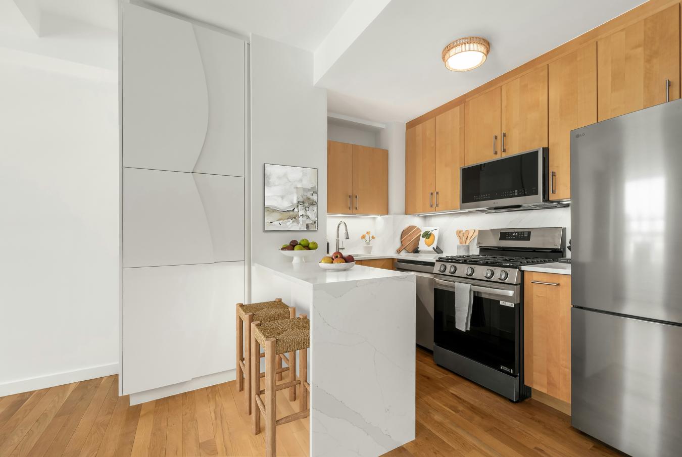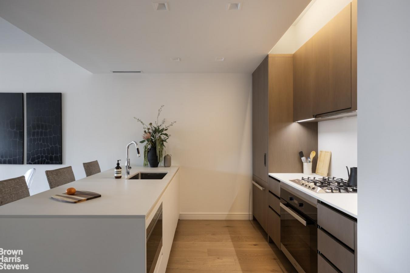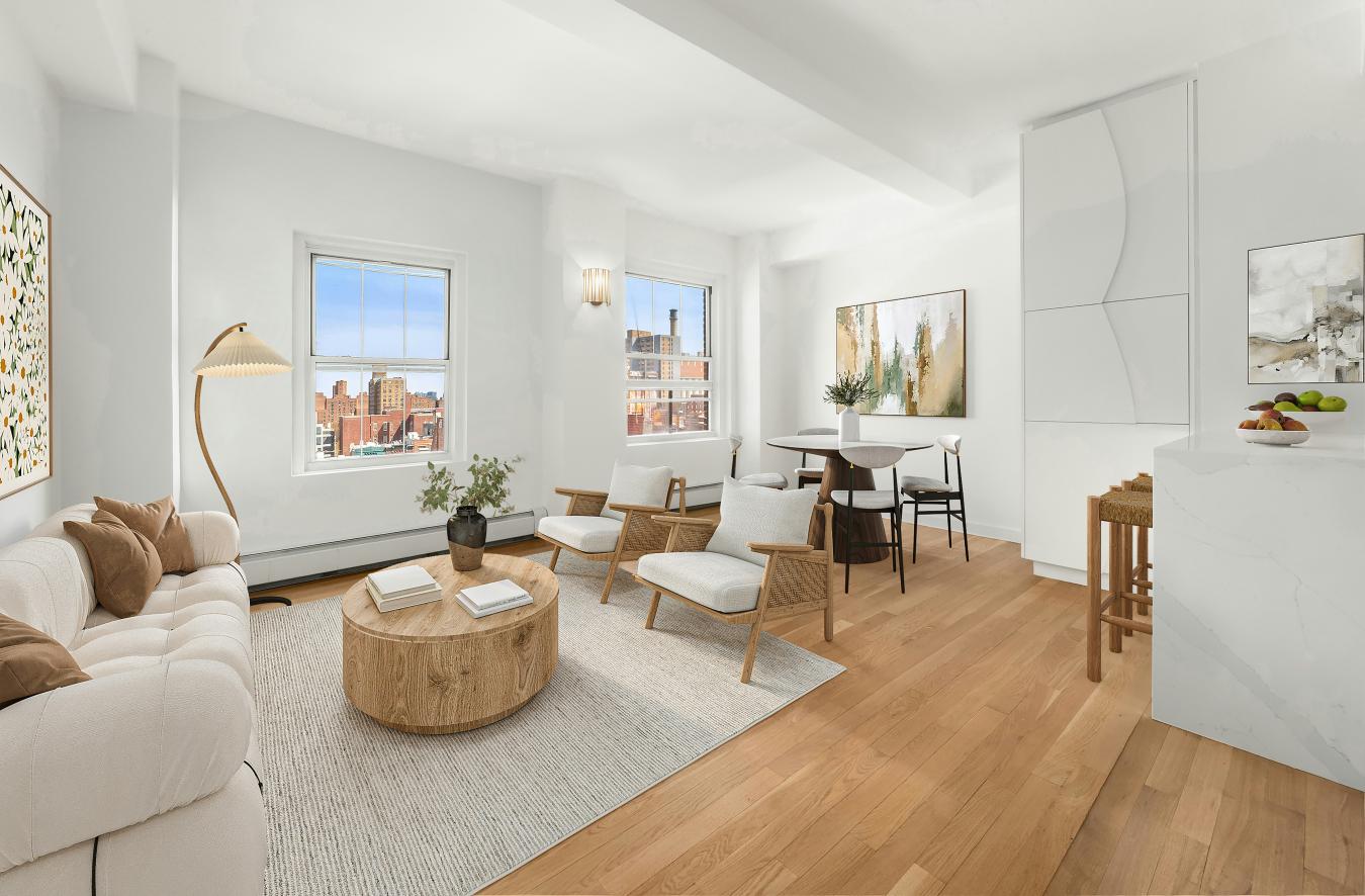 BOUTIQUE LUXURY WITH STUNNING WESTERN LIGHT AND REFINED AMENITIES. This expansive 773-square-foot one-bedroom residence is defined by its 14th-floor elevation and over 8-foot-tall bronze windows that capture exceptional afternoon sun. Perfectly suited for a buyer seeking a serene, LEED Gold-certified sanctuary in the heart of the history-rich Gramercy Park neighborhood, this home balances a quiet, elegant interior with immediate access to the high-energy culinary scenes of the Flatiron District and Union Square. The interior features 7-inch wide plank oak flooring with a custom smoked oil stain and Valli & Valli hardware on all grand entry and interior doors. The open Poliform kitchen, designed by Champalimaud, includes a white matte-lacquer breakfast bar, custom smoked-oak cabinetry, and white-sand Quartzite countertops and backsplash in a honed-suede finish. The kitchen is fully equipped with an integrated Miele appliance package and Dornbracht fixtures. The master bath is encased in Turkish lilac marble walls with white stone floors, a custom RiFRA vanity, and Dornbracht fittings. A dedicated laundry closet houses a Miele Prestige washer and dryer. The residence features a state-of-the-art Daikin heating and cooling system and motorized shades at all windows to ensure seamless climate and light control. 200 East 21st Street is a private enclave of 67 residences featuring a masonry and glass facade designed by BKSK Architects. The 24-hour doorman building offers a robust amenity suite, including a sky-lit Wellness Suite, a sun-filled fitness center with a sauna and treatment room, and a residents lounge with an entertaining kitchen. The planted rooftop lounge, designed by Halsted Welles Associates, features stone pathways and native plantings. This sustainable property targets LEED Gold certification, utilizing solar-heated domestic water, rainwater collection for gardens, and eco-friendly insulation and materials. Located in the heart of Gramercy at 21st Street, the building offers a serene residential experience just blocks from the historic greenery of Gramercy Park, the incredible vibes and restaurants on Irving Place, and the frequently overlooked, peaceful Stuyvesant Park. While the immediate block is quiet and elegant, it is a short walk to the vibrancy of the East Village and the world-class, Michelin-starred dining along Park Avenue South in Flatiron. Residents have unparalleled transportation access at the Union Square hub (N/Q/R/4/5/L trains) and are within easy reach of neighborhood essentials like the Union Square Greenmarket, Whole Foods, and Trader Joes. The building allows pets and is an ideal choice for primary residents, for those seeking a sophisticated pied-à-terre, or for investors. Advertised taxes are full taxes for non-primary residents. Upon occupancy, primary residents may be able to apply for a 17.5% discount through management via the Cooperative and Condominium Property Tax Abatement.