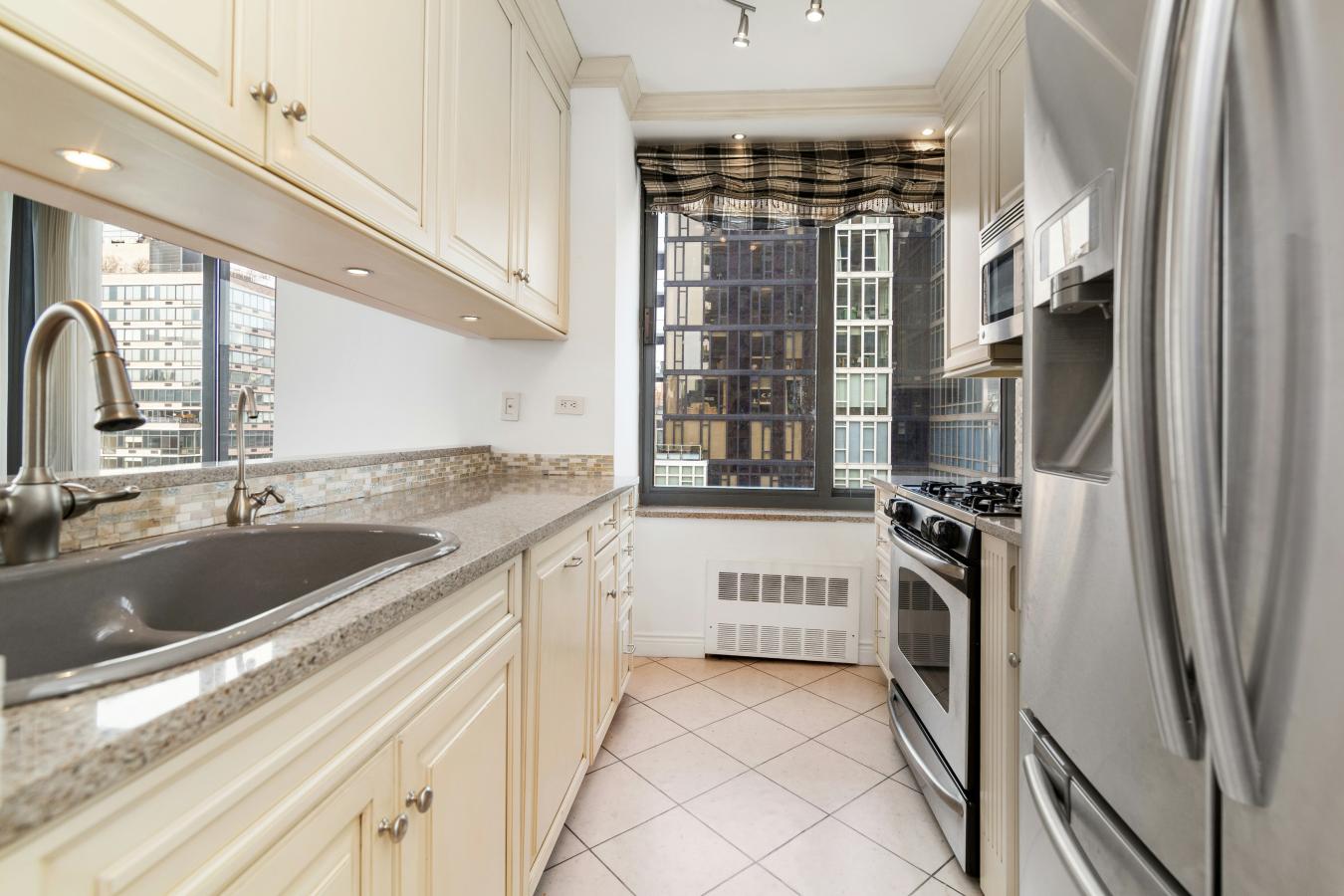 NO BOARD APPROVAL, CONDO RULES, INVESTOR FRIENDLY, PIED-A-TERRES WELCOME. Experience sweeping northern and western skyline views from this spectacular 17th-floor corner two-bedroom, two-bath residence with a private balcony and breathtaking sunsets. Apartment features: Renovated windowed kitchen with stainless steel appliances, granite countertops, two full marble baths, separate dining area, crown moldings, beautiful wood floors, and excellent closet space. Washer/Dryer hookup in apartment - Easy installation. Additionally, there is a washer/dryer unit on the floor. The America is a premier full-service condo (co-op with condo rules) that allows condominium-style ownership flexibility. The building features a fully equipped health club, heated pool, dry sauna, party room, full-time doorman/concierge, private garage, bike storage, and Verizon Fios. Pet friendly. Coveted Upper East Side location between Central Park & Carl Schurz Park. Close to shopping, restaurants, transportation, and the best private & public schools. Close proximity to the new Q line Second Avenue subway, 4-5-6 subways, Fairway, Whole Foods supermarkets, Equinox fitness, the 92nd Street Y, Asphalt Green, and Museum Mile. Easy access to FDR Drive. Investor-friendly from day one of closing, unlimited sublet policy. Can purchase in LLC & Trust, no mortgage recording tax. Building allows 80% financing. Condominium rules. This is NOT a land-lease building. The building owns the land and commercial space. Pets welcome. Please contact the sellers agent for accurate information. Some photos have been virtually staged.