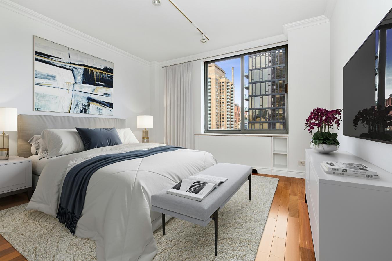 HIGH-FLOOR 3-BEDROOM OVER PARK AVENUE A rare and coveted high-floor corner home with nearly 40 feet of frontage over Park Avenue and vistas of the Empire State Building in a full-service luxury cooperative in prime Murray Hill.