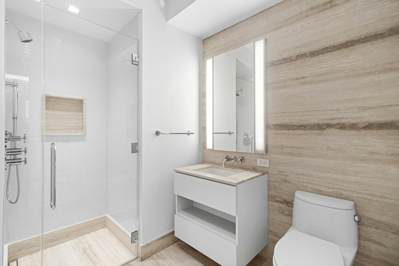 Welcome to Residence 1517 at One Wall Street - a rare opportunity to acquire a high-floor, income-producing asset in one of Downtown Manhattans most iconic conversions. This expansive 779-square-foot one-bedroom residence is currently tenant-occupied, offering immediate, reliable cash flow from day one-an ideal turnkey investment in a premier location. Positioned on the 15th floor, the home features an efficient layout, oversized proportions, and exceptional storage, including a generous walk-in closet. Designed with a refined, modern aesthetic, the residence blends timeless materials with contemporary functionality. The kitchen showcases striking Oceanwood marble slab countertops, custom Aran Cucine cabinetry, white glass paneling, and satin nickel finishes-delivering both visual impact and everyday performance. The spa-like bathroom is finished in warm stone and Bianco Dolomite marble, complemented by a deep soaking tub with thermostatic controls and integrated LED-lit mirrored cabinetry, creating a serene, elevated experience. Honoring the buildings Art Deco heritage, the residence features soaring 10 foot ceilings and wide-plank French oak flooring throughout, offering scale and elegance rarely found in todays market. Residents enjoy access to The One Club, an exclusive 100,000-square-foot amenity suite, including a 75-foot indoor pool with sweeping skyline views, private dining and entertaining spaces, landscaped terraces overlooking New York Harbor, a full-service fitness center and spa, co-working facilities, and dedicated childrens and teen lounges. With 24-hour doorman and concierge services, and a location just moments from the New York Stock Exchange, Battery Park, and world-class dining and retail, this residence offers both lifestyle appeal and enduring investment value. Offered at one of the most competitive price points in the building, Residence 1517 represents a compelling opportunity to secure a stabilized asset in a trophy property.