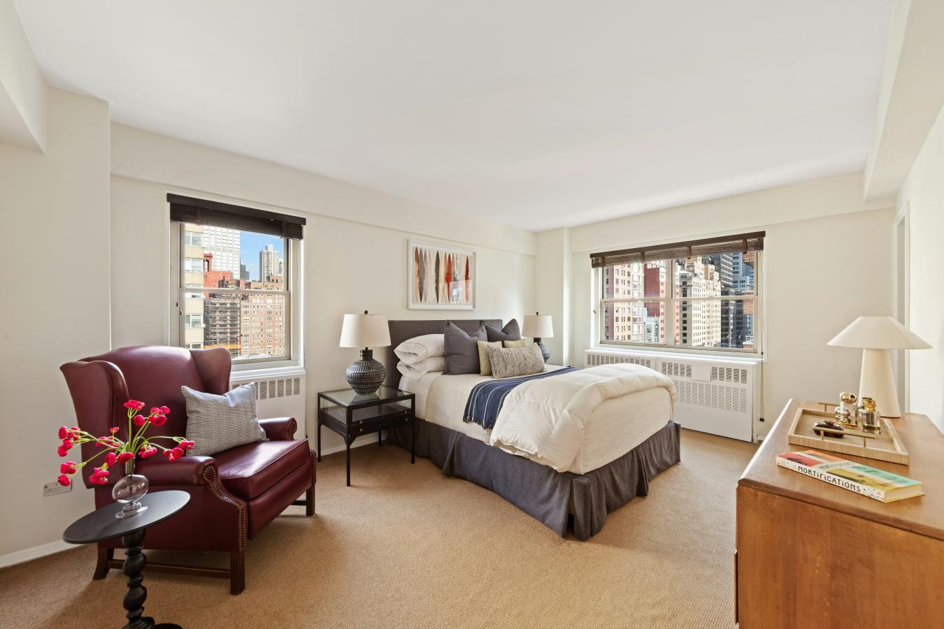HIGH-FLOOR 3-BEDROOM OVER PARK AVENUE A rare and coveted high-floor corner home with nearly 40 feet of frontage over Park Avenue and vistas of the Empire State Building in a full-service luxury cooperative in prime Murray Hill. Residence 12BC at 35 Park Avenue is a sunny 3-bedroom 2-bathroom home in very good move-in ready condition with gracious proportions, an elegant layout and fantastic closet and storage space throughout. Enhanced with the seamless addition of a third bedroom, this home is unique in the building and equally perfect as a full-time residence or a spacious pied-a-terre. Enter into an oversized gallery surrounded by three generous closets and be drawn immediately into a massive living room with a wall of windows drawing in warm sunlight from the West, directly over Park Avenue and its verdant meridians. The living room pours into an adjacent windowed dining area, allowing for flexibility when hosting large dinner parties or holiday gatherings. The kitchen is just next to the dining area behind a pair of twin doors to discreetly close off the space when entertaining. The kitchen has excellent storage and counter space, enhanced by custom cabinetry with counter lighting and a pantry. There is a refrigerator/freezer, a gas stove with convection oven as well as a full-sized stainless steel dishwasher. The bedrooms are all ideally arranged in a dedicated wing, crowned by a lavish corner primary suite with views up and over Park Avenue to the North and West showcasing a medley of New York City skyline scenery. The king-sized primary bedroom is appointed with an oversized dressing room and an en-suite windowed bathroom with a tub/shower and new floor tiles. There are two more bedrooms to the East overlooking 36th Street which both have excellent closet space. The larger of the two ancillary bedrooms is anchored at its corner by a set of wrap-windows facing North and East down to the East River. The ancillary bedrooms are serviced by a second full bathroom with a tub/shower and new floor tiles ideally located just off of the gallery. Air conditioning is through-the-wall. Designed by prolific architect Sylvan Bien, 35 Park Avenue is an impeccably run full-service building with strong financials, a full-time doorman and live-in resident manager. Residents enjoy a lush common garden, two newly renovated laundry rooms located on the ground floor, bicycle storage and on-site garage directly accessible from within the building. Located in prime Murray Hill in close proximity to Gramercy, NoMad and Hudson Yards, access to transportation and lifestyle amenities is second to none. The 6 Train as well as the Madison Avenue and Lexington Avenue bus lines are all moments away, and Grand Central Terminal is accessible in under 10 minutes. Park Avenue Equinox, Trader Joes, Murray Hill Market are all an easy distance, and the great neighborhood offers some of the trendiest modern restaurants and bars in New York City, including two-Michelin starred restaurant ATOMIX. Pieds-a-terre, co-purchasing, guarantors, gifting and parents buying for children are permitted with board approval. There is a 1.5% flip tax, and financing is permitted up to 70%. Sorry, no pets. There is a capital assessment currently in place of 594/month through December 2026.