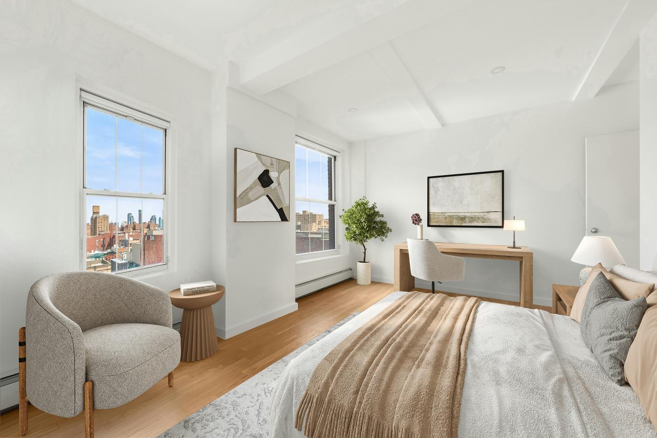 Live the East Village dream in this spacious, meticulously renovated, light drenched one bedroom residence with incredible open city viewsImagine coming home to a bright, beautifully renovated, chic one bedroom in the iconic Christodora House, directly across from Tompkins Square Park. From the moment you enter the renowned, historically designated Art Deco lobby, the buildings storied past and architectural significance are on full display.Apt 8A is calling your name. Best to answer quickly.Set within the East Villages most sought-after full-service condominium, this thoughtfully updated residence offers a rare opportunity to own a home with style, sweeping views, and exceptionally low carrying costs.The layout offers a natural flow for both everyday living and effortless entertaining. The living space is inviting and well scaled, offering ample room to relax, host, and unwind. Throughout the home, prewar character meets modern refinement. Soaring 10-foot beamed ceilings and beautiful hardwood floors create a sense of volume and warmth rarely found in a one bedroom.A welcoming entry opens into a bright, expansive living space with oversized north and west facing windows that fill the home with soft, consistent natural light throughout the day.Seamlessly connected to the living space, the functional and beautifully integrated kitchen features quartz countertops and backsplash, generous wood cabinetry, a full suite of stainless-steel appliances, and an island that works equally well for preparation, casual dining, or morning coffee.The large bedroom comfortably accommodates a king with room to spare. Generous closet space keeps everything in place, while two oversized windows bring in natural light and frame open views beyond.The bathroom has been beautifully renovated with marble flooring, striking black hardware, and a warm wood vanity, equal parts modern and warm.With its turnkey condition, thoughtful updates, and unusually low monthlies, this home presents a compelling opportunity for both end users and investors alike. Hello, 1031.Built in 1928 and converted to a condominium in 1986, The Christodora House is one of the East Villages most iconic prewar residences. This full service, pet friendly building offers a full-time doorman, elevator, resident manager, laundry on every floor, yay!, and a large bicycle room, seamlessly blending historic character with everyday convenience.Life here is quintessential East Village, vibrant, eclectic, and full of eats, treats, and everything in between. Directly across from Tompkins Square Park and moments from the neighborhoods best restaurants, cafés, boutiques, and nightlife, this is downtown living at its best.Note: There is a monthly assessment of 197.95 and 122.29