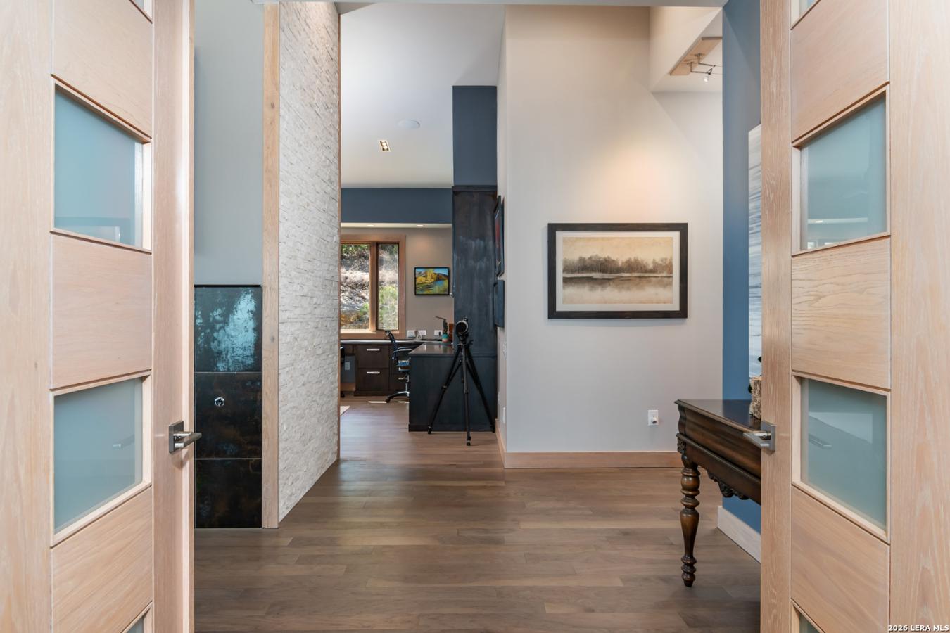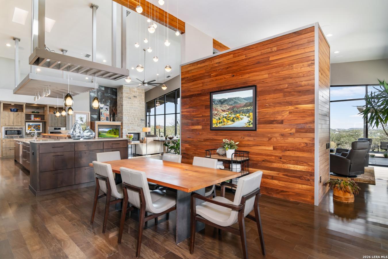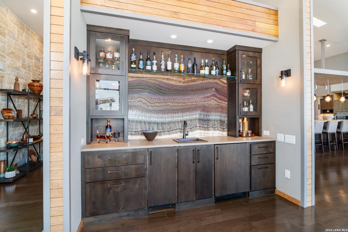 Welcome to 21604 Cielo Ridge Dr, constructed in 2015. This residence exudes a luxurious, high-end feel, inviting you to experience sophisticated living at its finest. Elegance meets functionality with an open-concept, custom-built design that radiates warmth and style. A breathtaking infinity-edge pool with travertine decking and a heated pool and spa takes center stage-all perfectly positioned to capture some of the most spectacular Hill Country views in San Antonio. Expansive outdoor living wraps gracefully around the front of the home, creating a stunning first impression. The open-concept design is elevated by dramatic floor-to-ceiling windows, flooding the home with natural light and framing breathtaking views while seamlessly blending indoor and outdoor living. The gourmet kitchen is a true showpiece, featuring sleek quartz countertops, a striking quartzite backsplash, and a beautifully crafted walnut wood island with a marine-grade finish. Designed for the culinary enthusiast, it includes a steam double oven, a wine refrigerator, and a range thoughtfully plumbed for gas-blending refined design with professional-level performance. Upgrades throughout the home reflect exceptional craftsmanship and elevated design, including a reverse osmosis water filtration system, a dramatic backlit onyx backsplash, rich walnut accent walls and flooring, and solid oak interior doors that add warmth, substance, and timeless sophistication.