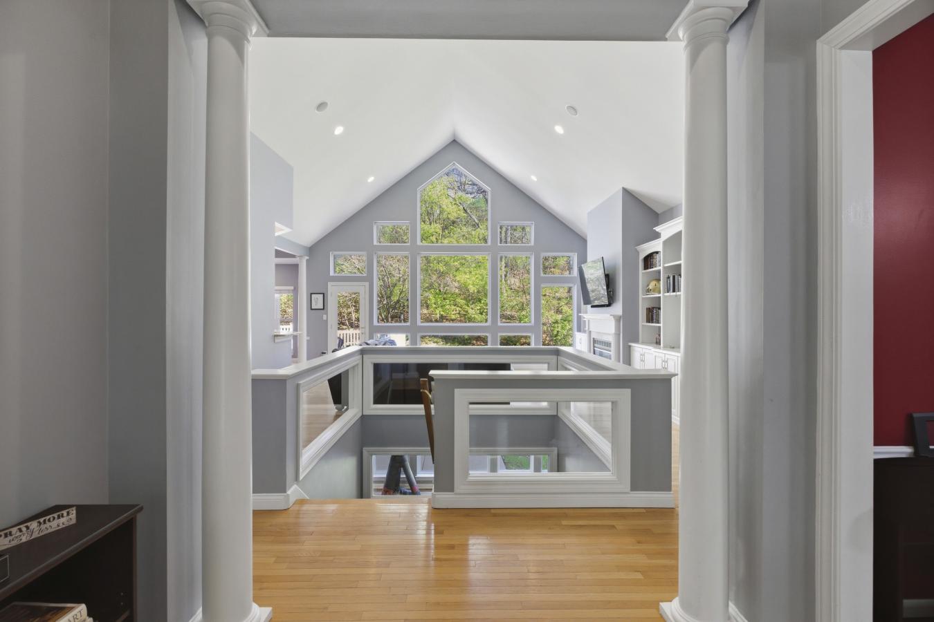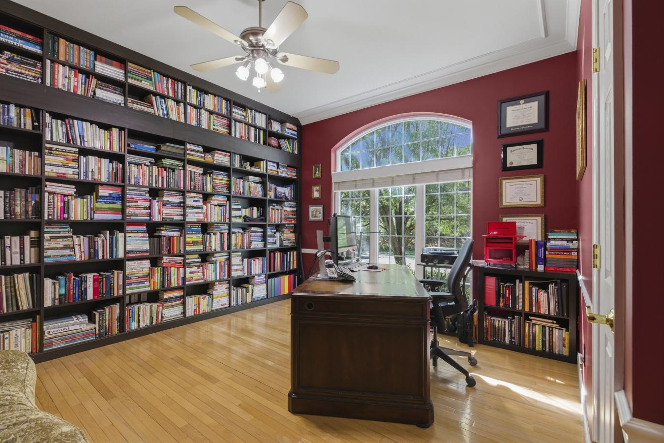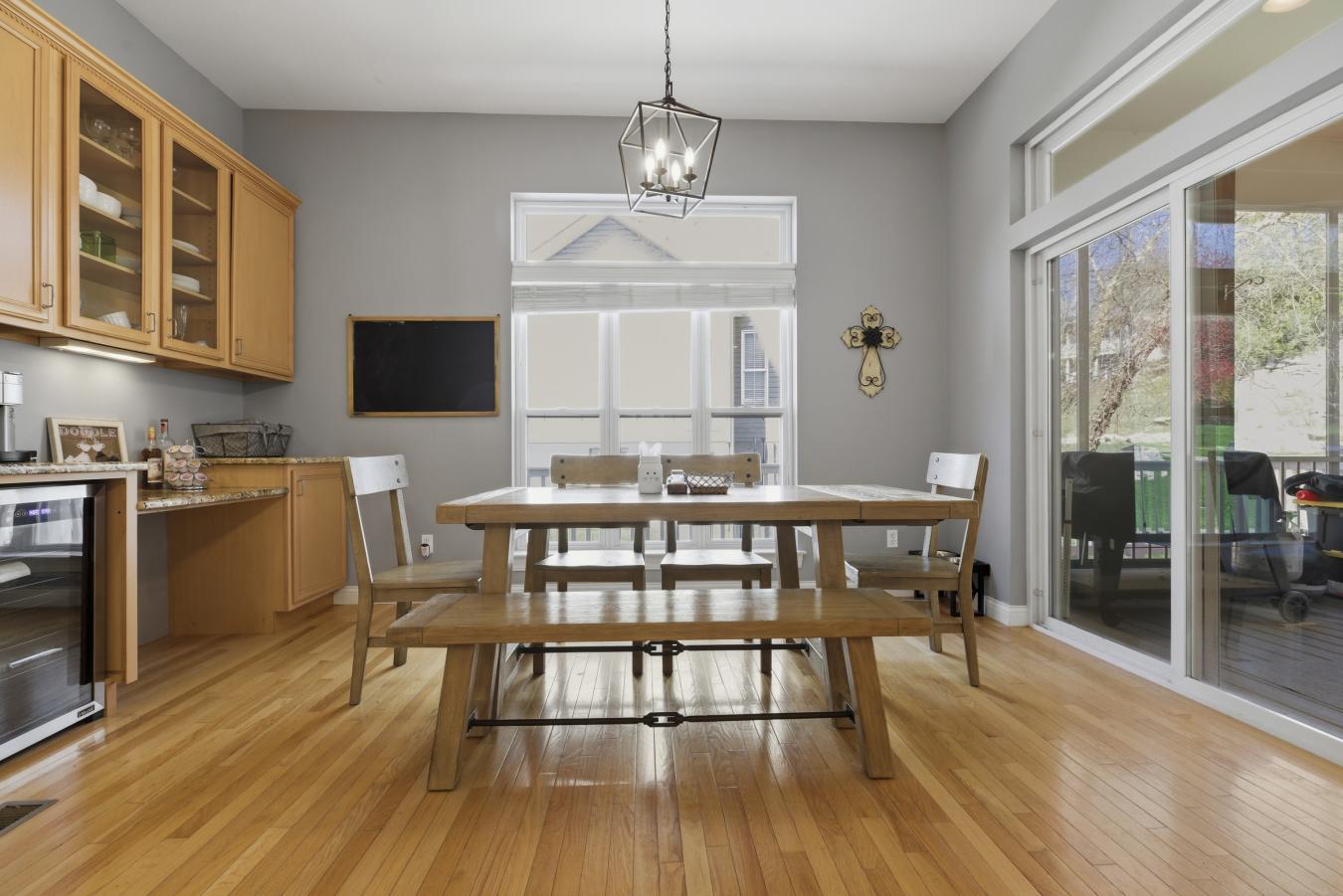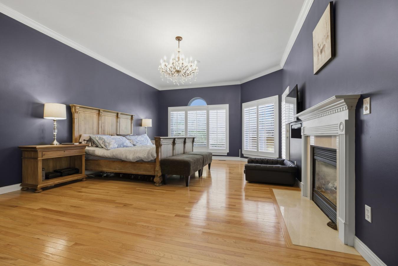 Stunning ranch-style home sitting on a 0.4 acre lot backing to woods, located in the sought-after Polo Lakes subdivision in Ellisville! This home boasts over 4,000 square feet of living space, 4 bedrooms, and 3.5 bathrooms. The front door opens to the entry foyer with a coat closet, columns, and gleaming hardwood floors that flow throughout most of the main level. The entry foyer opens to the office with crown molding and a new, custom bookcase (2025). The bright & airy great room features a wall of windows, gas fireplace, built-in bookshelves, vaulted ceiling, and opens to the kitchen and formal dining room with crown molding, columns, and a bay window. The kitchen boasts granite countertops, 42-inch cabinetry with crown molding, stainless steel appliances, a new Bosch dishwasher (2025), a new LG microwave (2025), double ovens, a refrigerator, which is included, a tile backsplash, a butterfly island, a dining area, a planning desk, a wine fridge, a pantry with new custom shelving (2025), and sliding glass doors to the 3-season room. The primary bedroom features crown molding, a see-through gas fireplace, plantation shutters, a huge freshly painted (2026) walk-in closet, and a luxurious bathroom. The primary bathroom boasts tile floors, a dual vanity, a soaking tub, a separate shower, the see-through fireplace, a water closet, and a linen closet. The powder room and laundry room with a utility sink complete the main floor. The lower level features a kitchen area, a huge recreation room, three bedrooms, two full hall bathrooms, and ample storage space. Other highlights include a 3-car garage with built-in shelving, zoned HVAC, an electric pet fence, and 10 foot ceilings. Relax in the 3-season room, on the composite back deck, or on the concrete back patio and enjoy the wildlife in the yard backing to woods! The hot tub on the back deck is included. The location could not be better-close to major highways, restaurants, shops, schools, and Bluebird Park! Part of the award-winning Rockwood School District!
