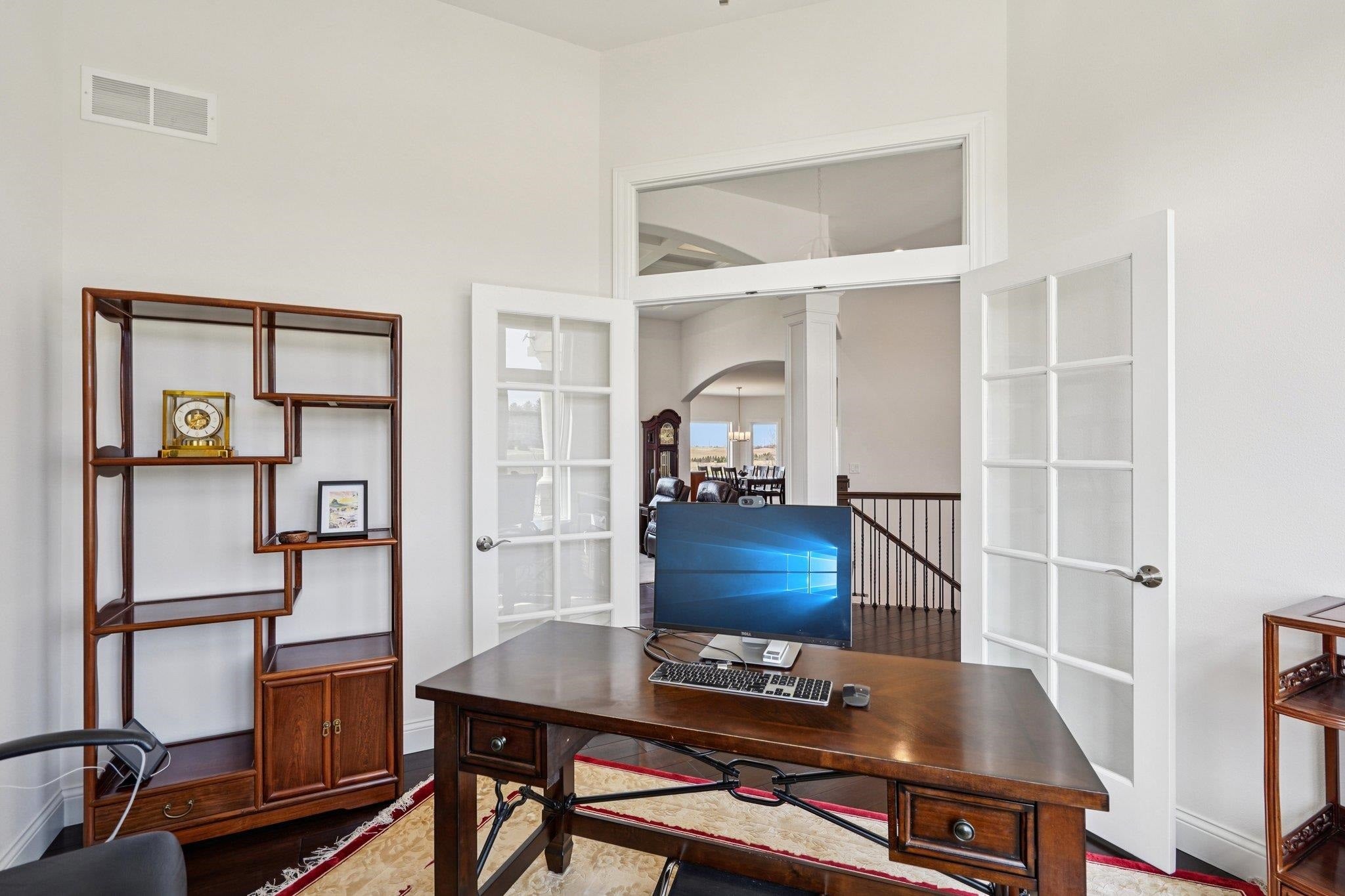 Welcome home to this stunning property located in the coveted Prairie Farms Development. Massive over an acre lot with private alley access for a shop or outbuilding! This luxury home is where timeless charm meets function, space, and comfort. Step inside to find a double-volume living room with gas fireplace and an abundance of windows for natural light.