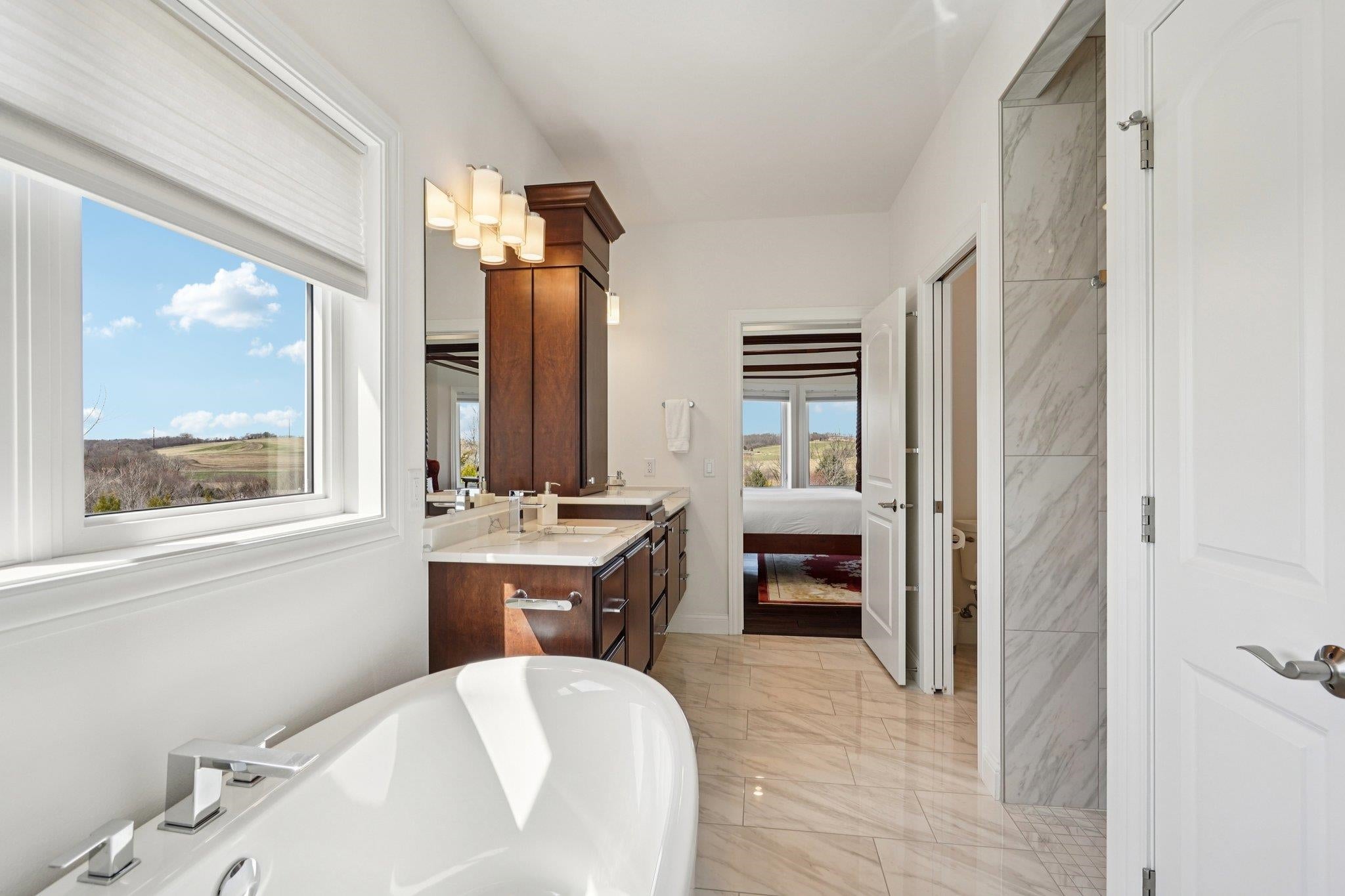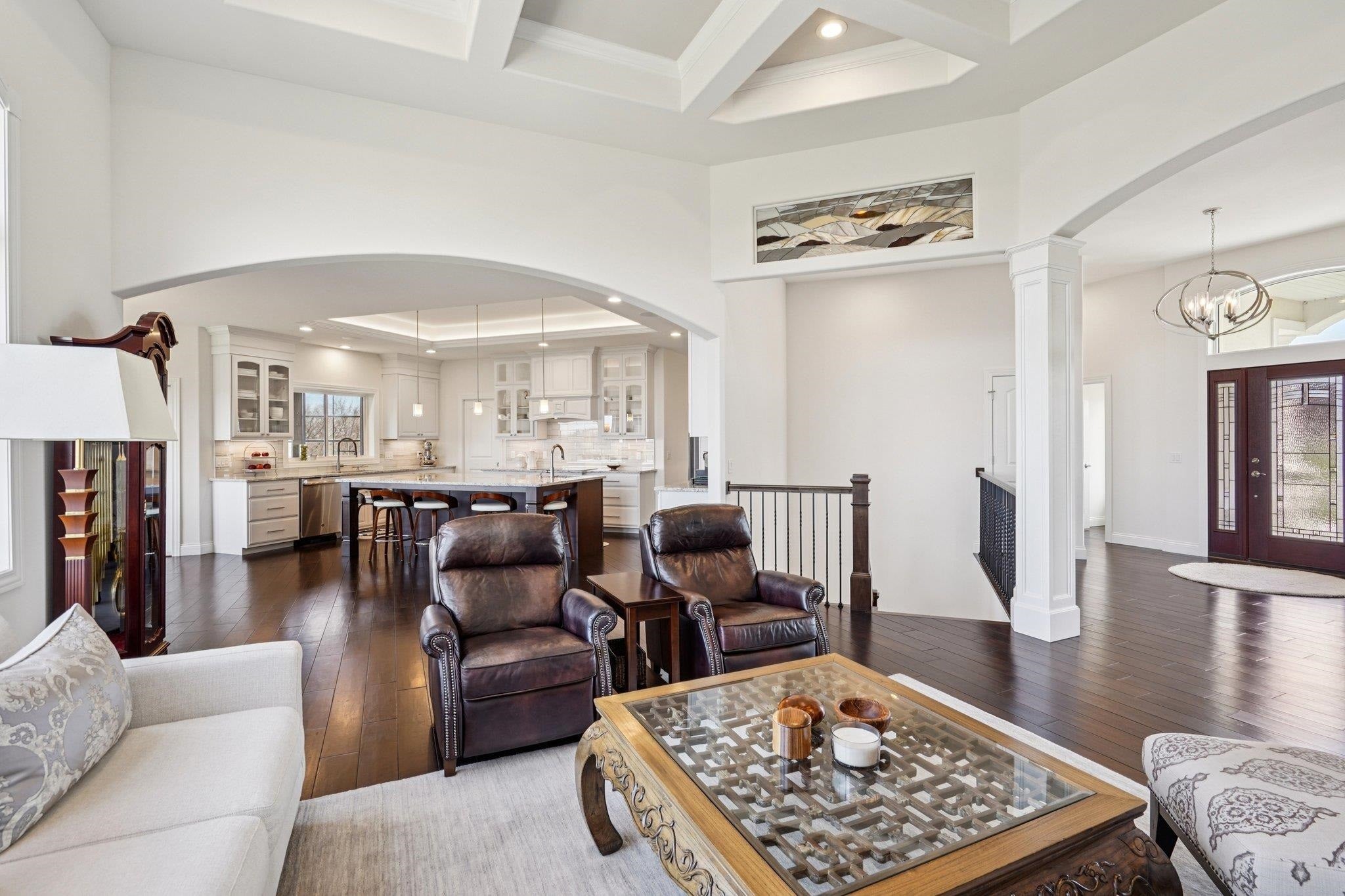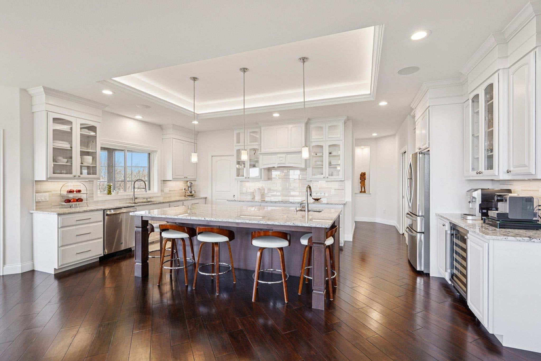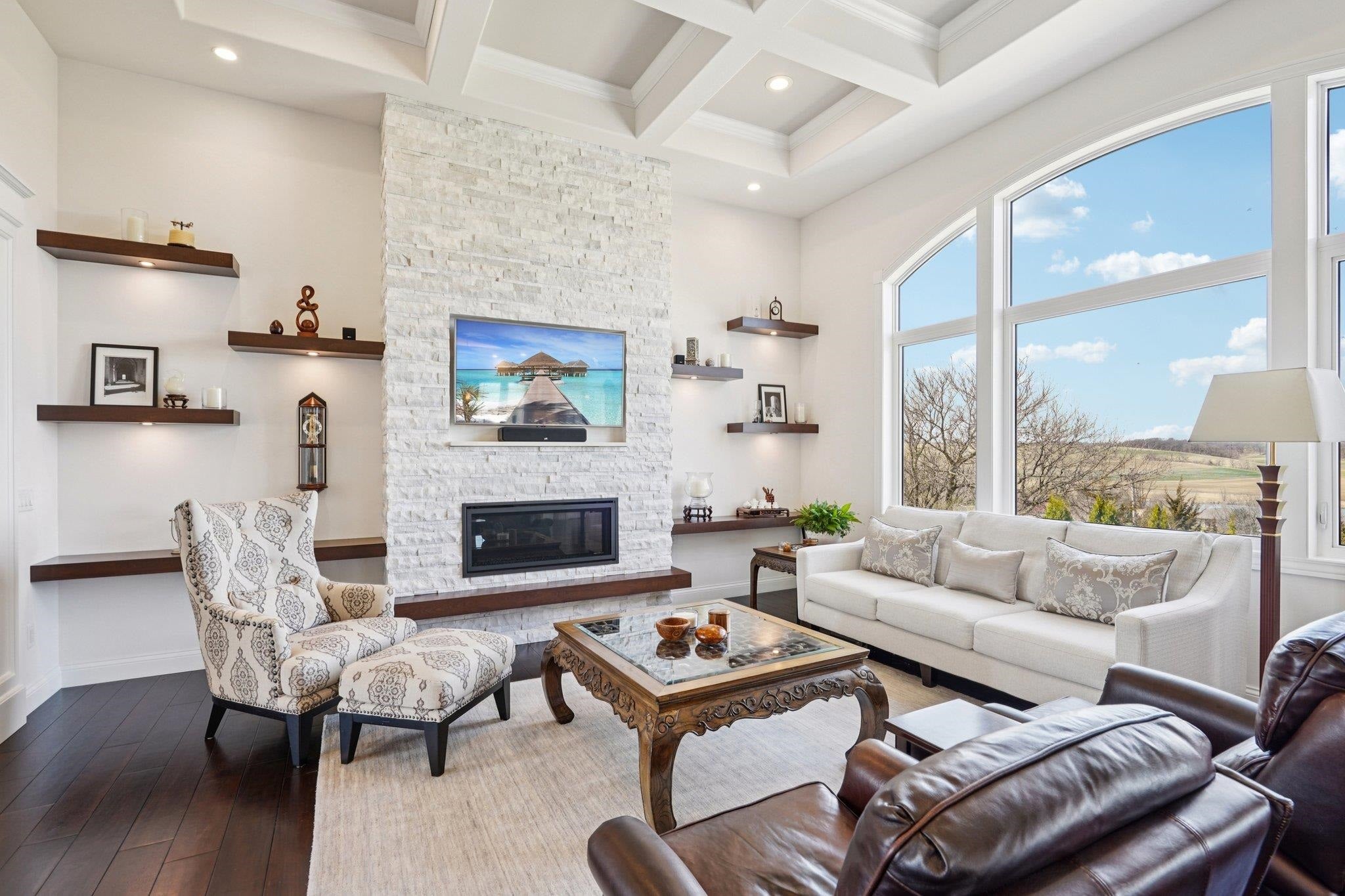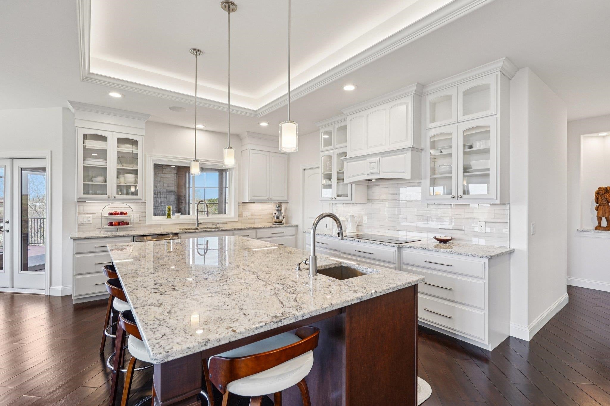 MAGNIFICENT VIEWS OF THE COUNTRYSIDE & ROLLING HILLS on Over 1.5 Acre Private Lot! STUNNING RANCH HOME Features Zero Step Entry, 5 Bedrooms, 3.5 Baths, Sun Room w/Fireplace, 3.5 Car Garage, 1st Floor Office & 1st Floor Laundry Everything You Need on the Main Level! CHEFS DREAM KITCHEN Boasts Custom White Cabinets to the Ceiling, Granite Countertops, HUGE Work Island w/Prep Sink, Large Walk-in Pantry, Beverage Fridge & Dinette Area that Opens into the Great Room w/Gas Fireplace w/Custom Floating Shelves13 Ft Coffered Ceilings! TWO LUXURY Primary Suites on Main Leveleach w/Walk-in Closets&Private Full Baths Featuring Large Walk-In Tile Showers & Quartz Countertops! Incredible Walk-Out L/L Offers a Spacious Family Room Plumbed for Wet BarTheater Room! Tons of Closets & Storage Space! Zoned Heating/CoolingGerkin Windows! Enjoy the PRIVATE Yard w/Mature Trees Your Own Nature Retreat! 5th Bedrm could be a Flex Rm or Office w/Sink! HUMONGOUS STORAGE AREA OUTSIDE UNDER DECK & SUN ROOM!
