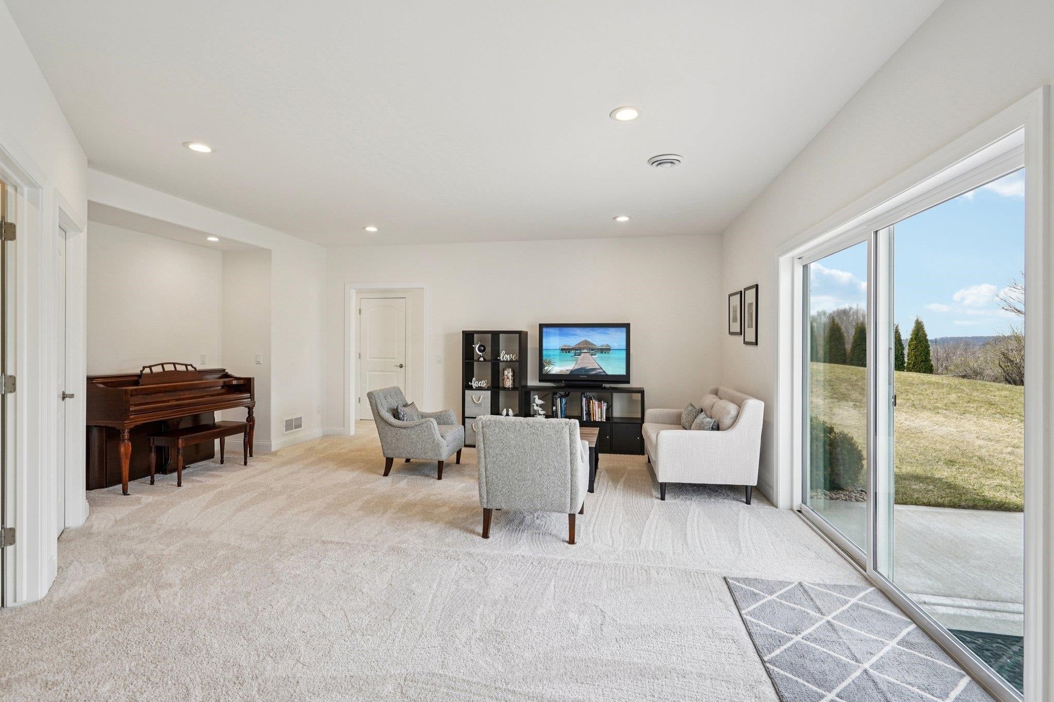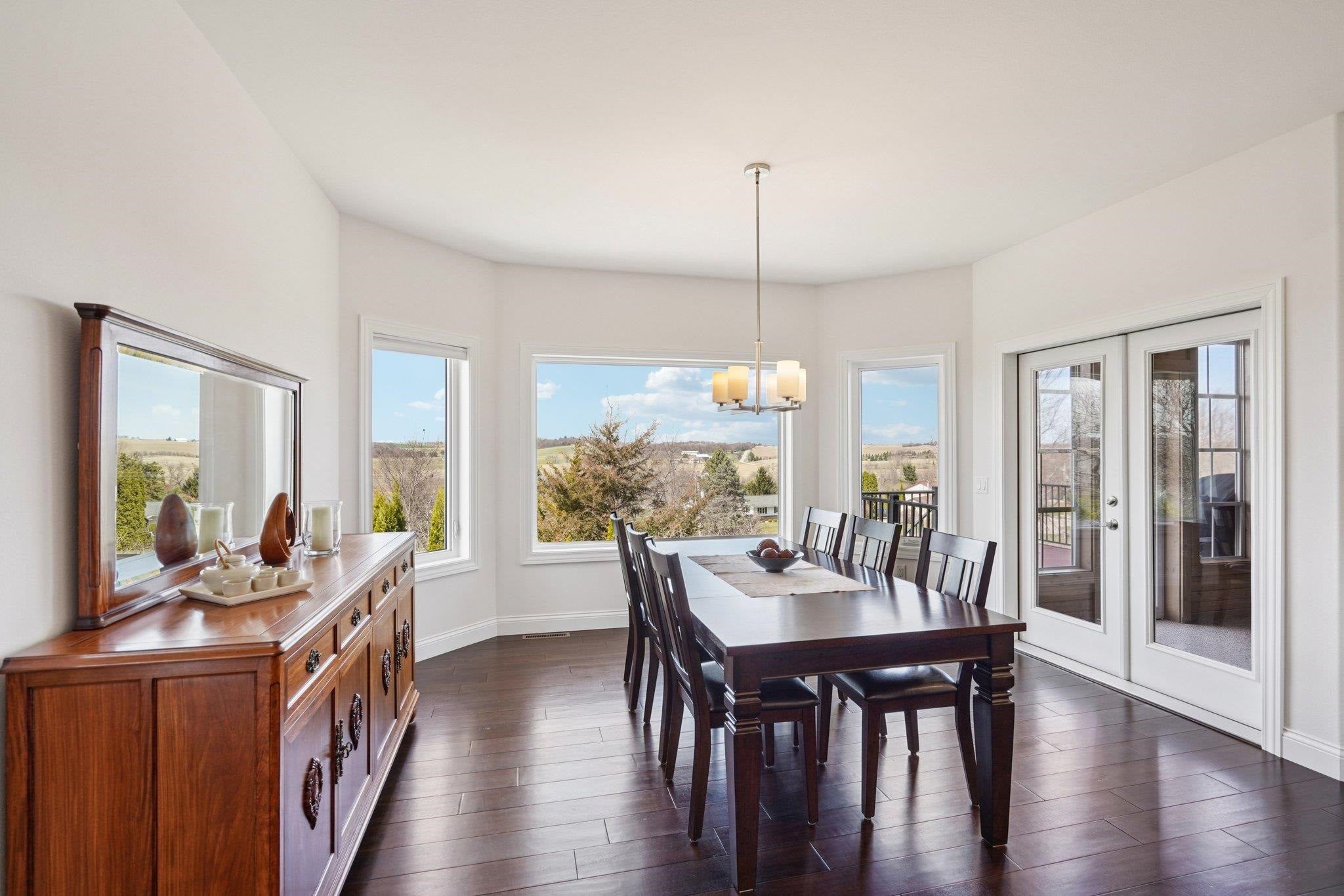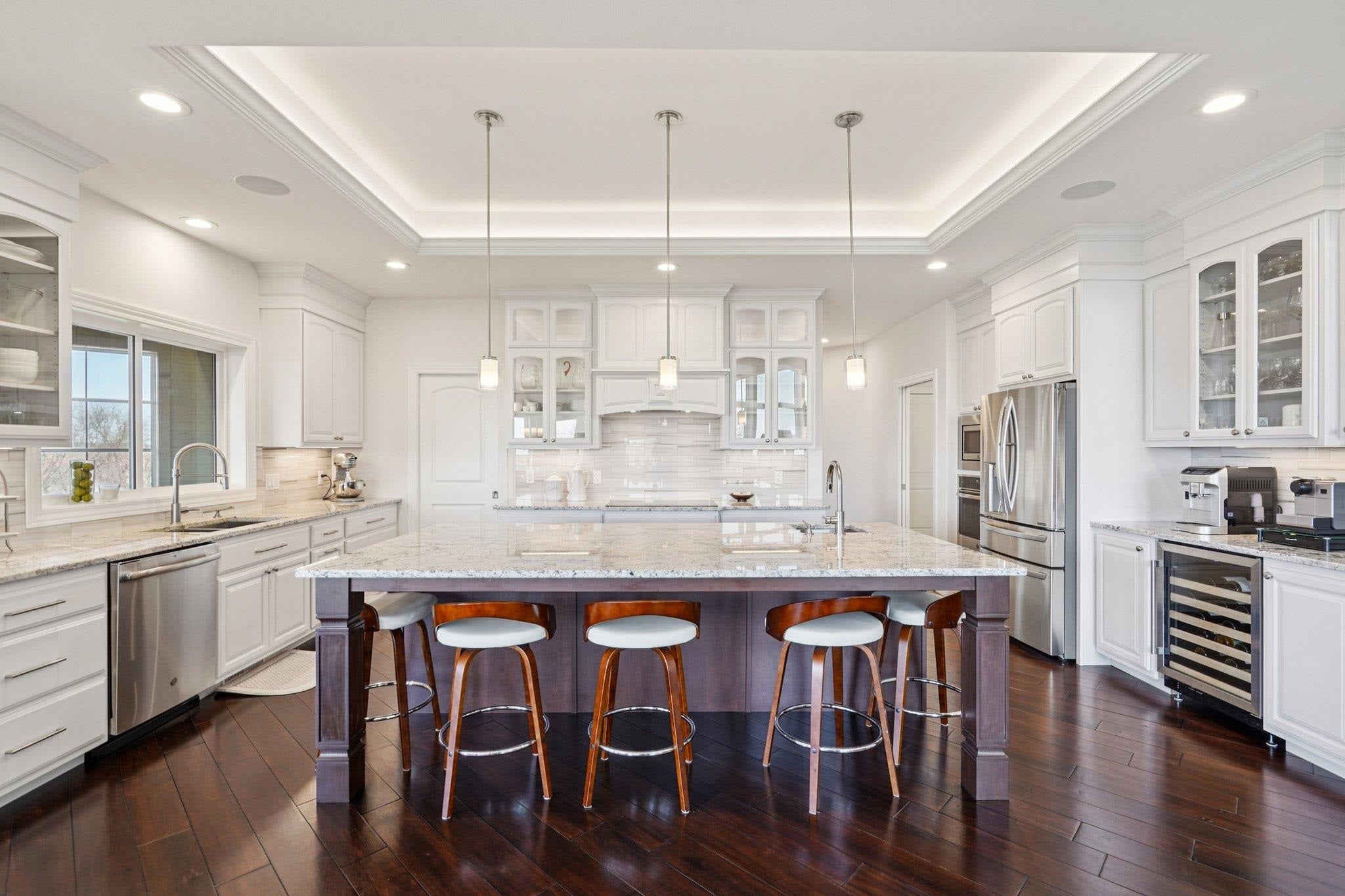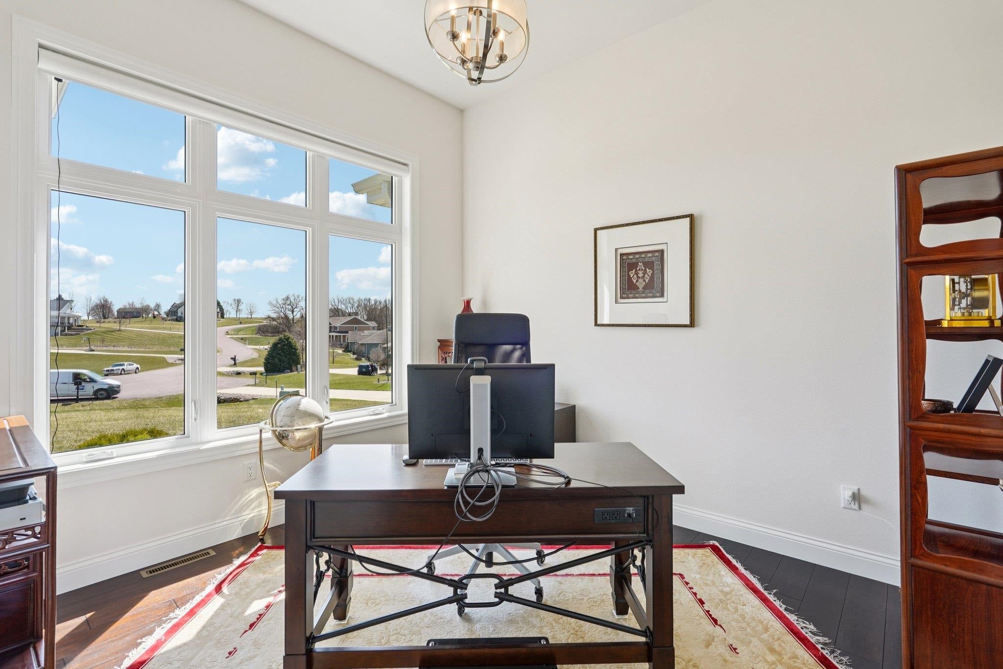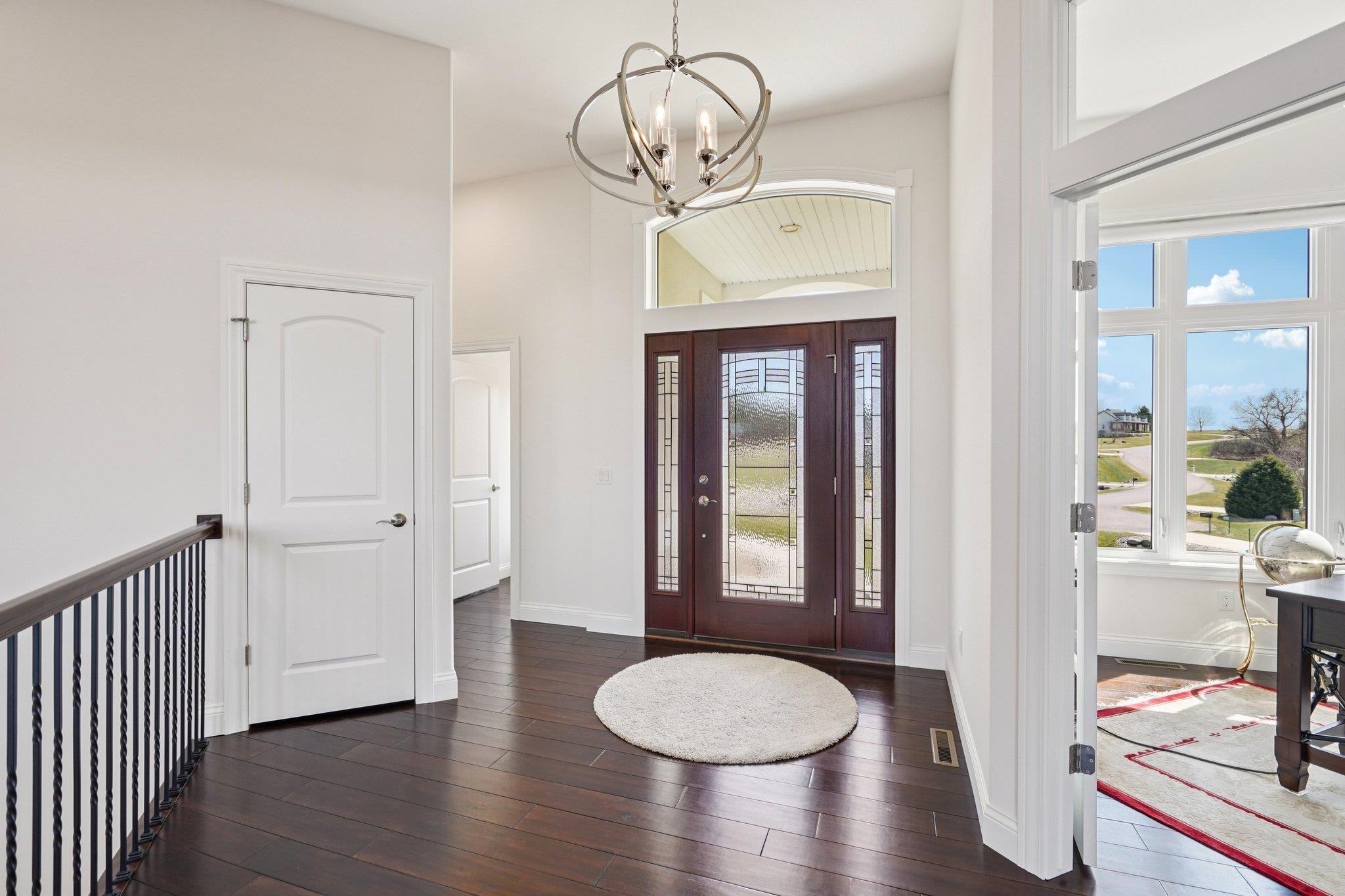 MAGNIFICENT VIEWS OF THE COUNTRYSIDE & ROLLING HILLS on Over 1.5 Acre Private Lot! STUNNING RANCH HOME Features Zero Step Entry, 5 Bedrooms, 3.5 Baths, Sun Room w/Fireplace, 3.5 Car Garage, 1st Floor Office & 1st Floor Laundry Everything You Need on the Main Level! CHEFS DREAM KITCHEN Boasts Custom White Cabinets to the Ceiling, Granite Countertops, HUGE Work Island w/Prep Sink, Large Walk-in Pantry, Beverage Fridge & Dinette Area that Opens into the Great Room w/Gas Fireplace w/Custom Floating Shelves13 Ft Coffered Ceilings! TWO LUXURY Primary Suites on Main Leveleach w/Walk-in Closets&Private Full Baths Featuring Large Walk-In Tile Showers & Quartz Countertops! Incredible Walk-Out L/L Offers a Spacious Family Room Plumbed for Wet BarTheater Room! Tons of Closets & Storage Space! Zoned Heating/CoolingGerkin Windows! Enjoy the PRIVATE Yard w/Mature Trees Your Own Nature Retreat! 5th Bedrm could be a Flex Rm or Office w/Sink! HUMONGOUS STORAGE AREA OUTSIDE UNDER DECK & SUN ROOM!