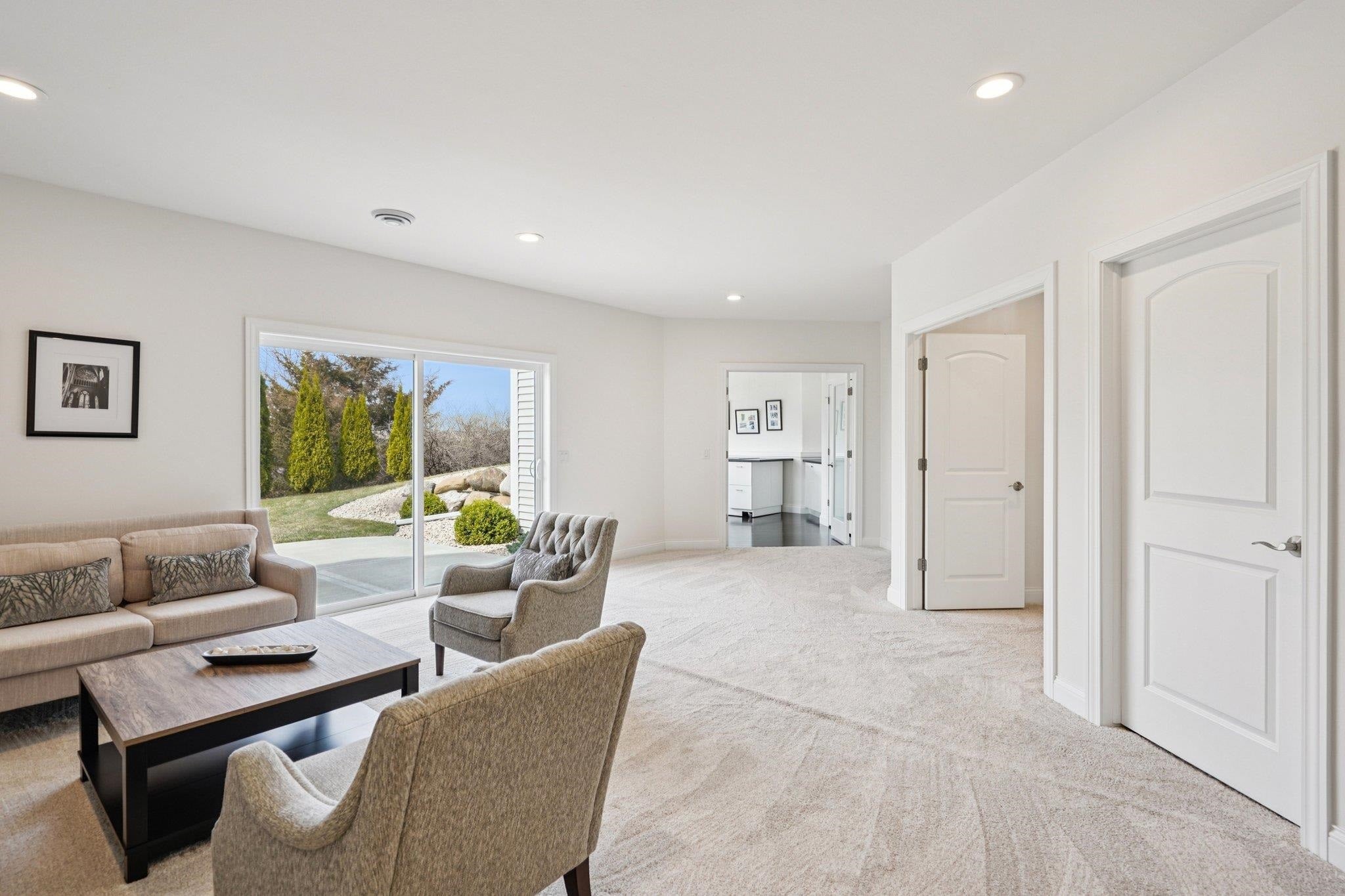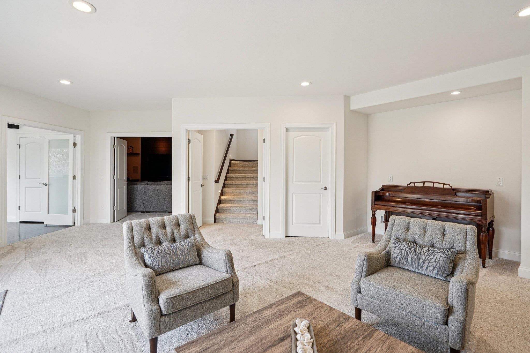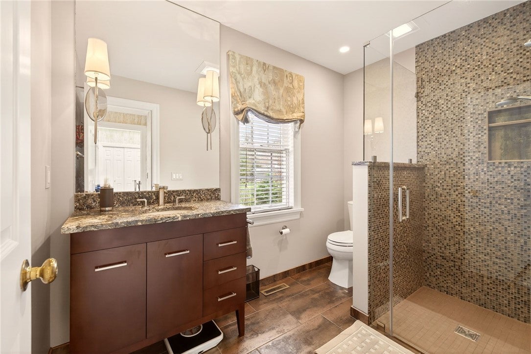 Gracefully set amidst serene, picturesque surroundings, this remarkable custom residence offers over 3,700 square feet of exquisitely designed living space within the prestigious Stevenson High School district. A home where sophistication meets comfort, every detail has been thoughtfully curated to deliver an elevated living experience. From the moment you enter, you are welcomed by a light-filled, open-concept design defined by refined finishes, soaring ceilings, and a seamless sense of flow. At the heart of the home, the family room captivates with its dramatic ceiling height and striking fireplace, creating a stunning focal point that is both grand and inviting-perfect for intimate evenings or elegant entertaining. The main level presents a beautifully appointed private suite or executive office, complete with a full bath-ideal for guests, extended family, or a refined work-from-home retreat. The luxurious primary suite serves as a true sanctuary, featuring private access to its own patio-a perfect escape for quiet mornings or evening relaxation. The spa-inspired en-suite bath is thoughtfully designed with a dual vanity, whirlpool jetted tub, and a separate standing shower, offering both comfort and indulgence. The fully finished English basement provides a private living experience of its own, complete with an additional bedroom, a full bath, and an expansive recreation area featuring a wet bar-ideal for entertaining, hosting extended stays, or multi-generational living with ease. Outdoors, tranquility takes center stage. Step onto your private deck and enjoy peaceful mornings with coffee in hand, surrounded by mature trees and the soothing presence of a gently flowing creek just beyond-creating a rare and calming natural backdrop. With its generous proportions, architectural elegance, and serene setting, this residence offers a truly elevated lifestyle-where luxury, comfort, and nature exist in perfect harmony.