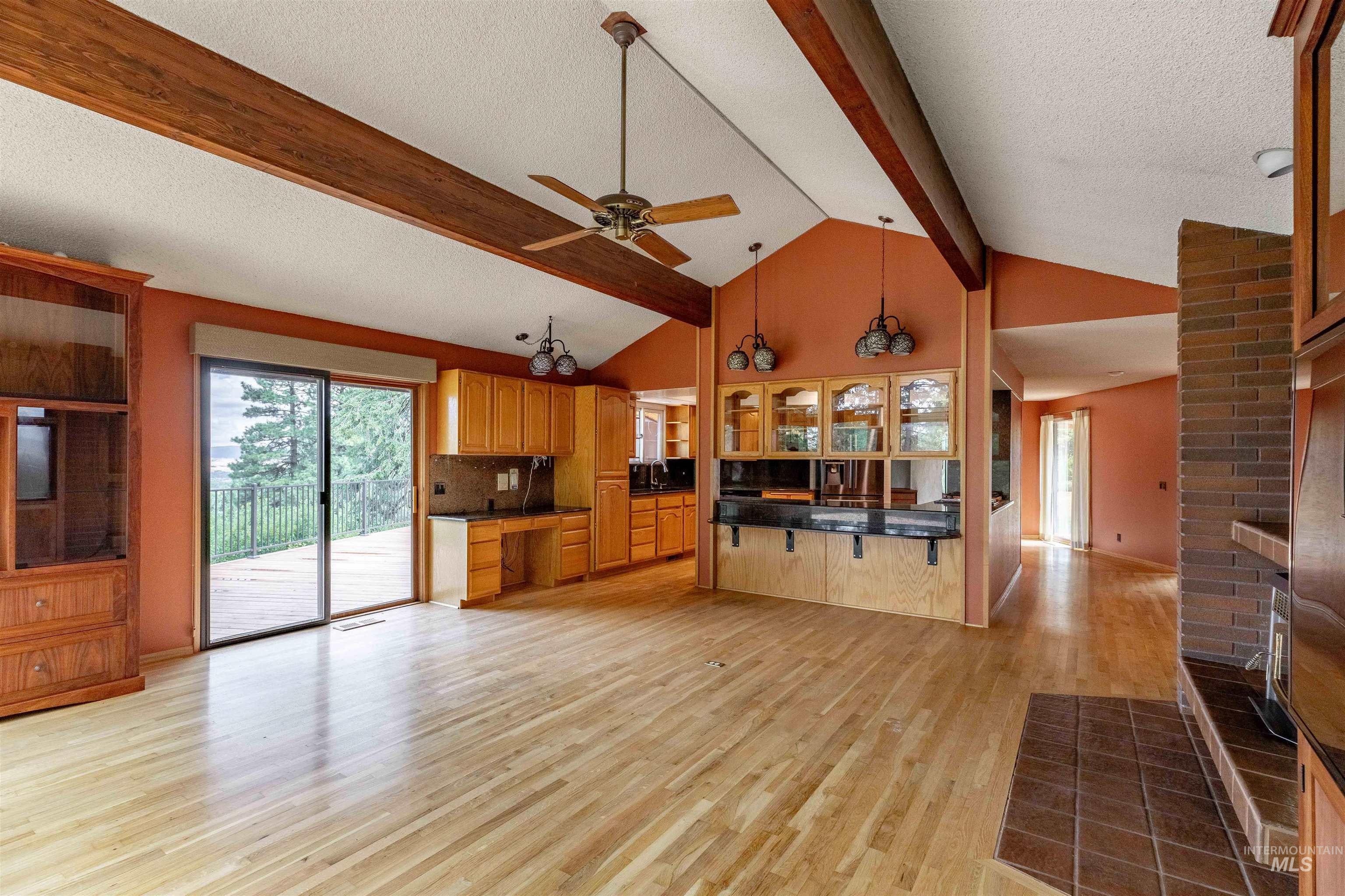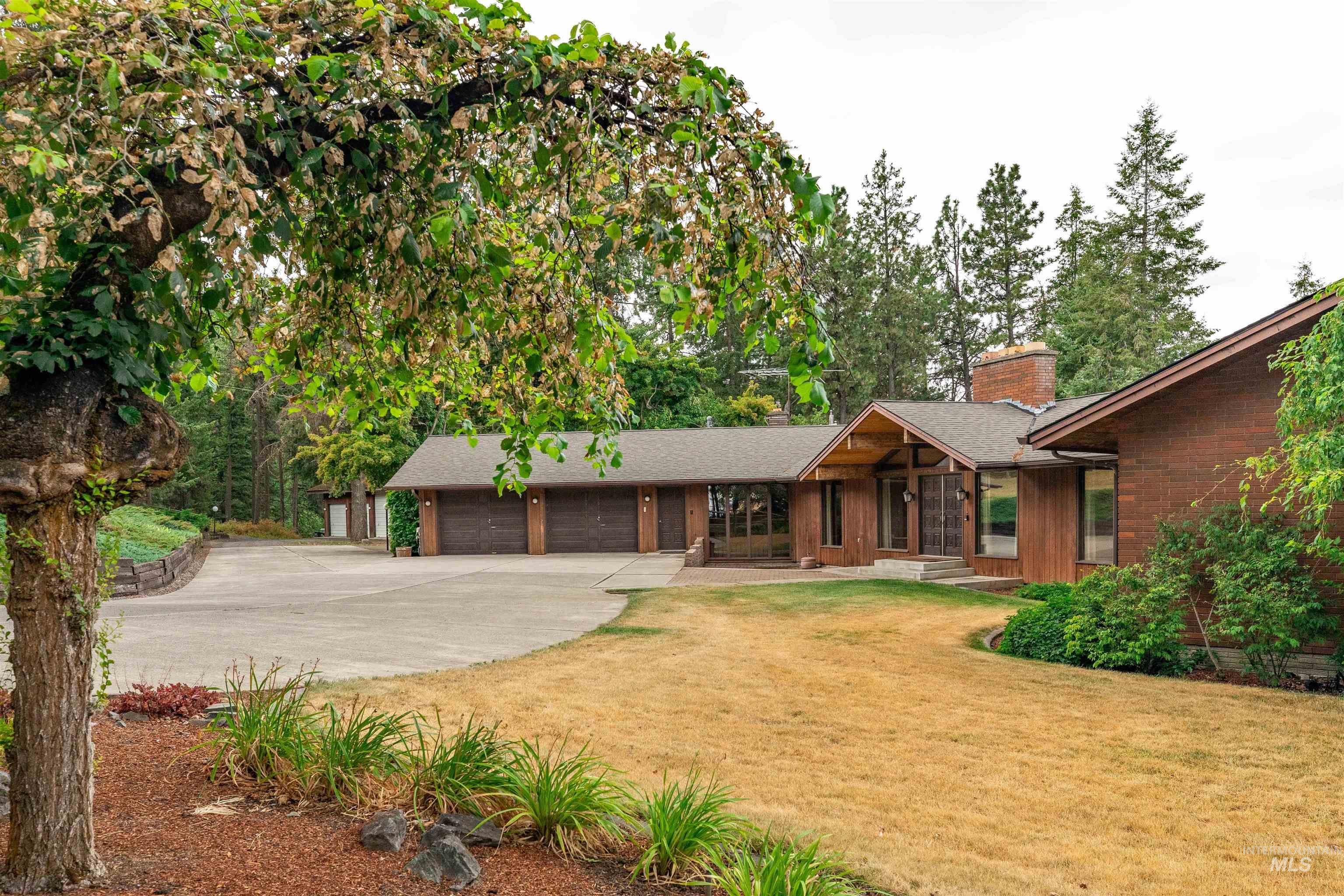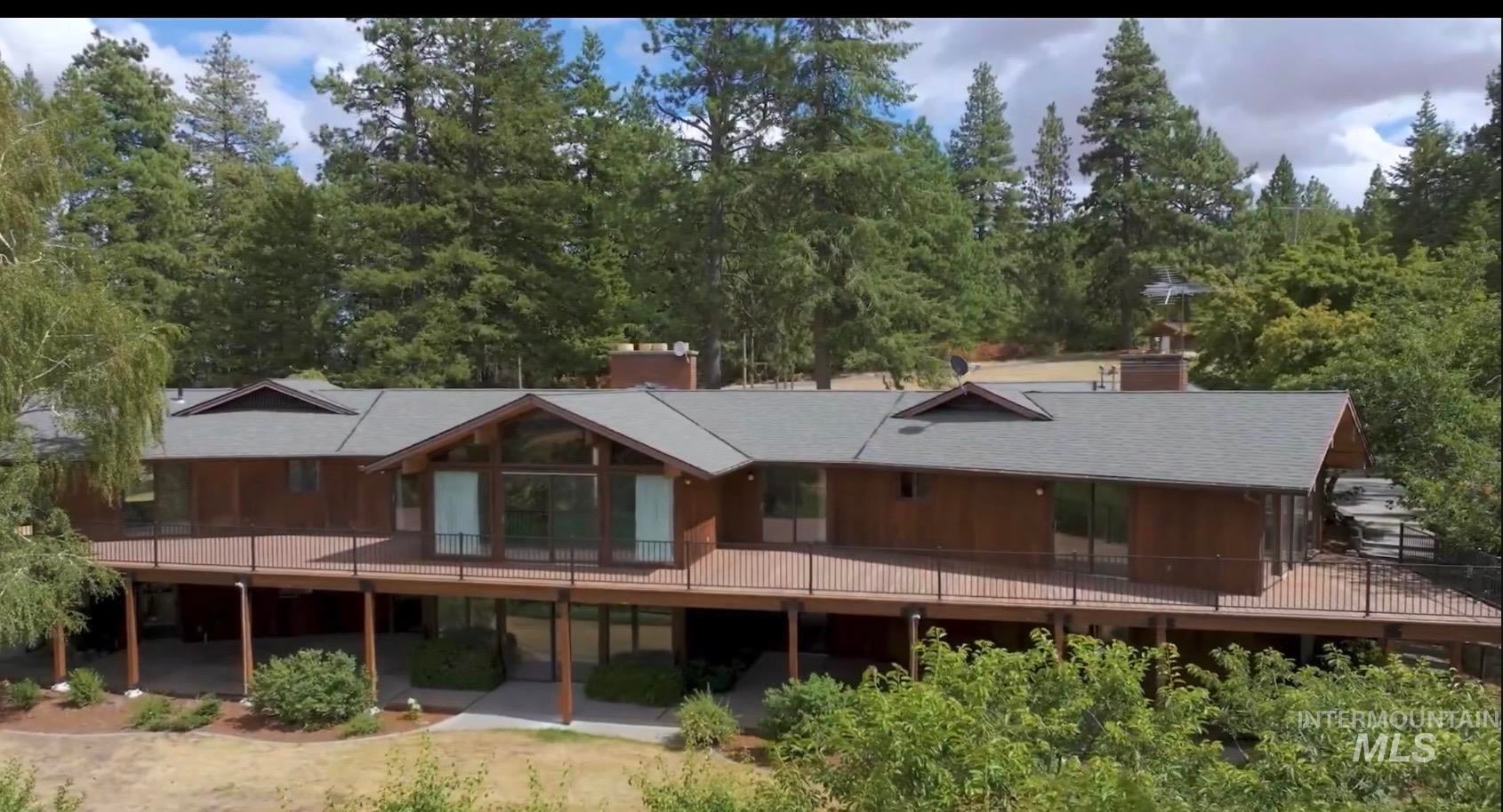 What a view!! Country living at its finest! Check out this gorgeous 6 bed, 5 bath home on 6 acres. This private little ranch offers a 4200 sq ft heated shop with electricity and concrete floors with an upper and lower level, both accessible from the outside. There is a wood shop on the end of the shop, as well. New roof on house 2023, 4 remodeled bathrooms, plenty of storage space, master on both floors, two kitchens, walk out basement, vaulted ceilings with exposed beams on main, 4 fireplaces, formal dining and living room spaces, and new deck that runs the whole length of the house in the back and one side.Two furnaces, two A/Cs House is electric, shop is propane. Barn has 6 stalls with auto heat water and rubber mat floors, concrete aisle, insulated tack room. Quiet privacy at the top of Paradise Ridge! Make this amazing property yours!