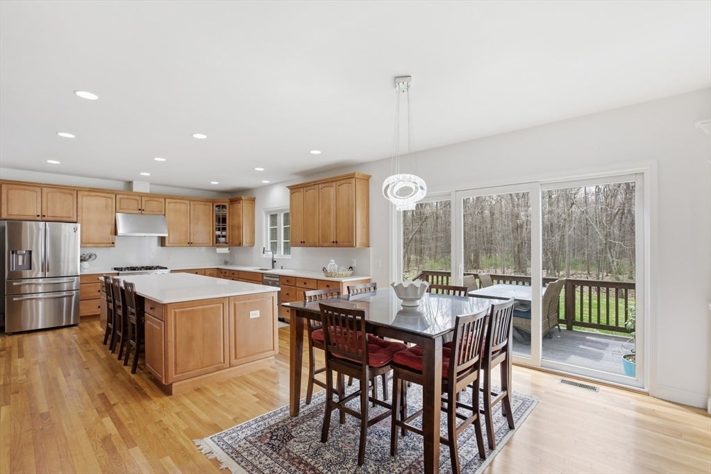 Set back from the main road, this stately Robbins Mill Colonial stands proud on one of the best lots in the neighborhood abutting conservation land and with lawn enough for field sports plus a future pool. A dramatic two-story foyer with an elegant crystal chandelier welcomes you to this open floor plan with flexible spaces.