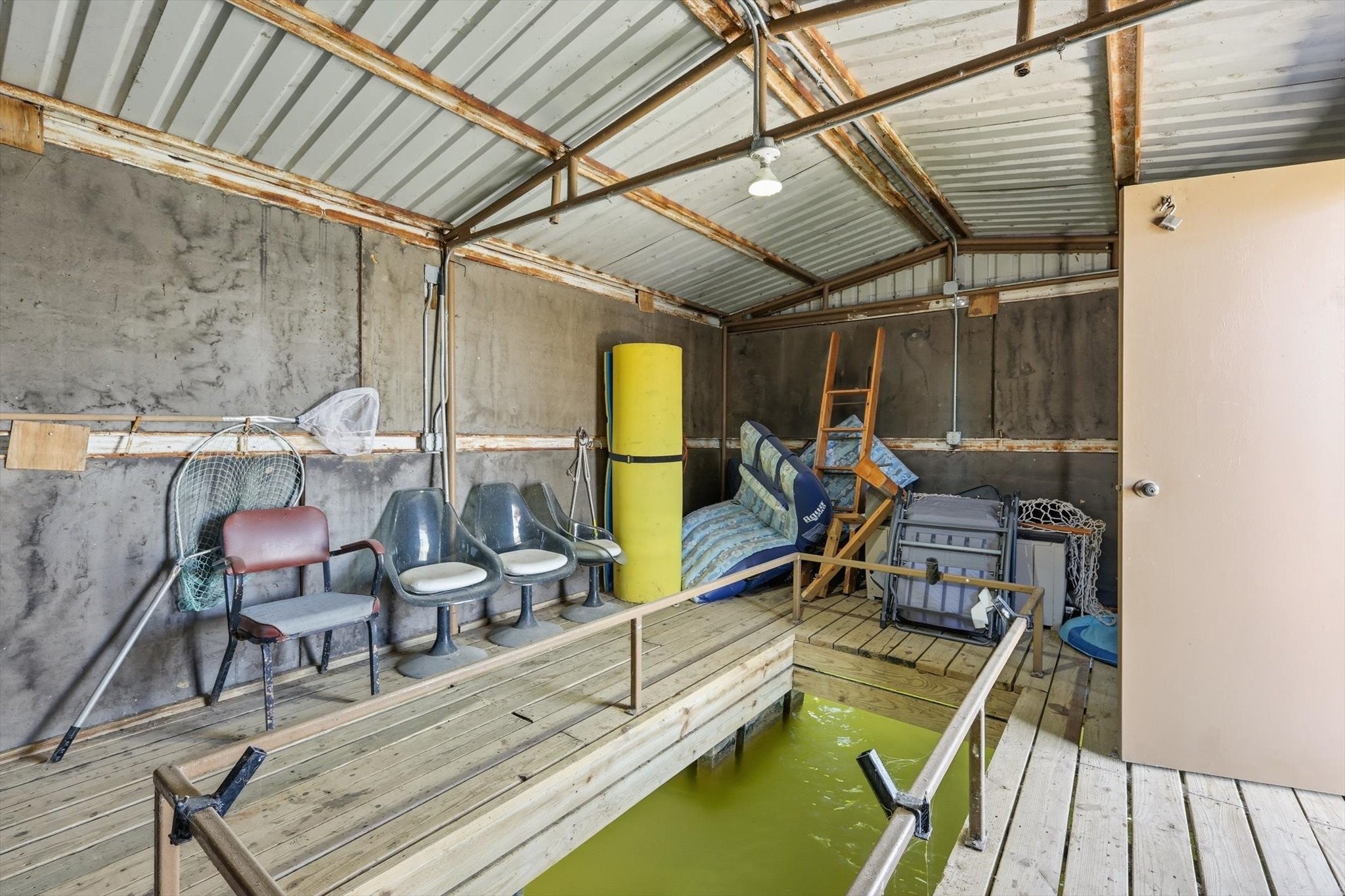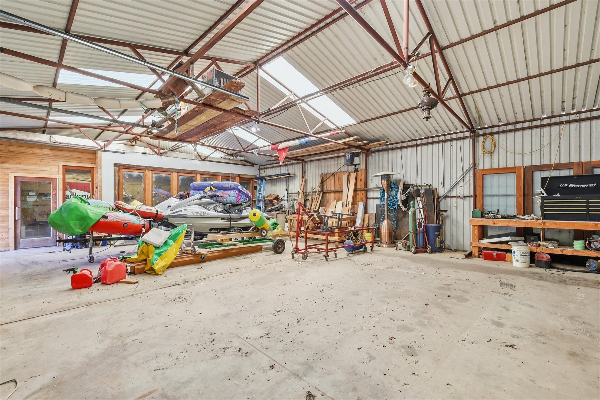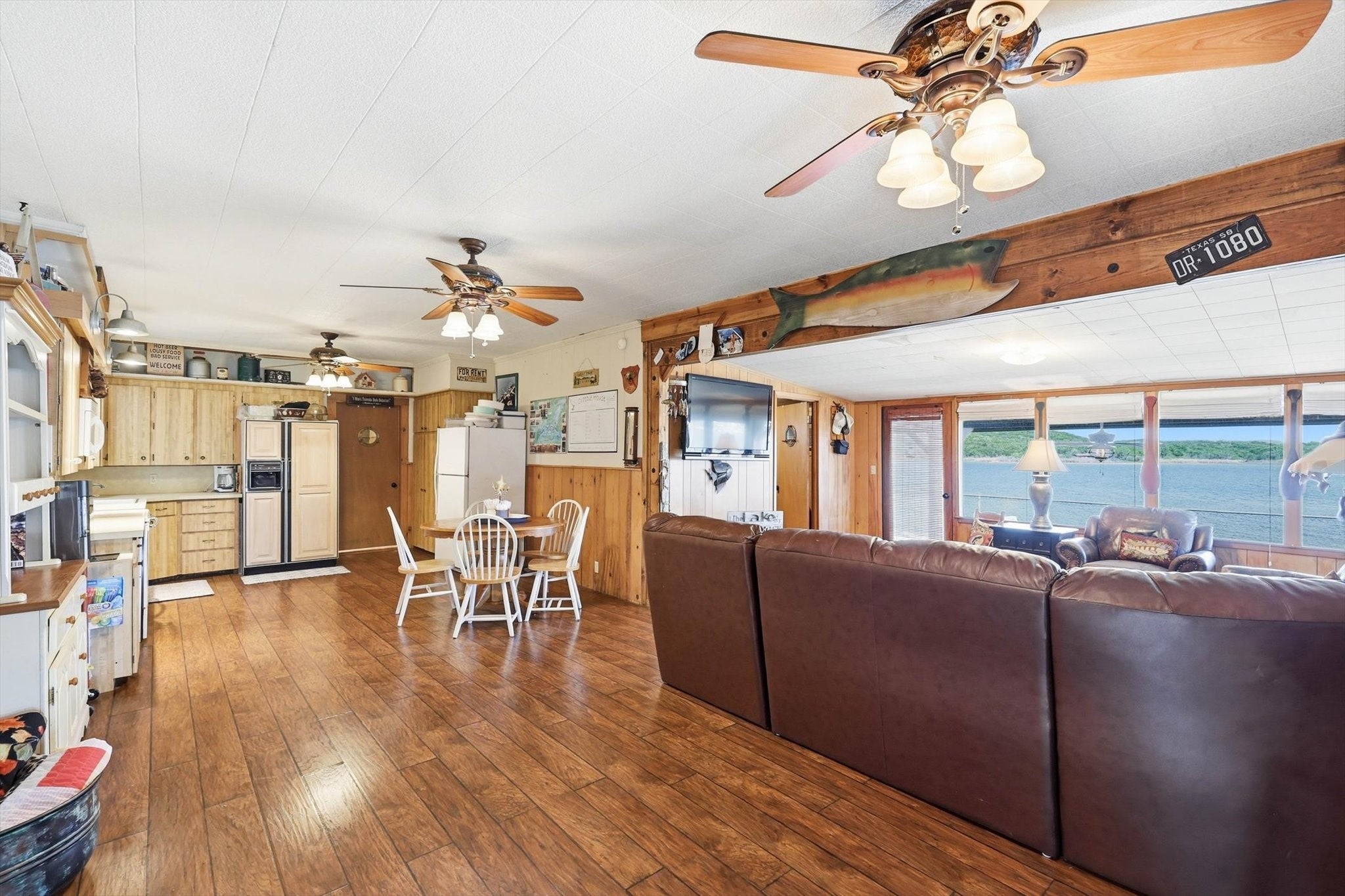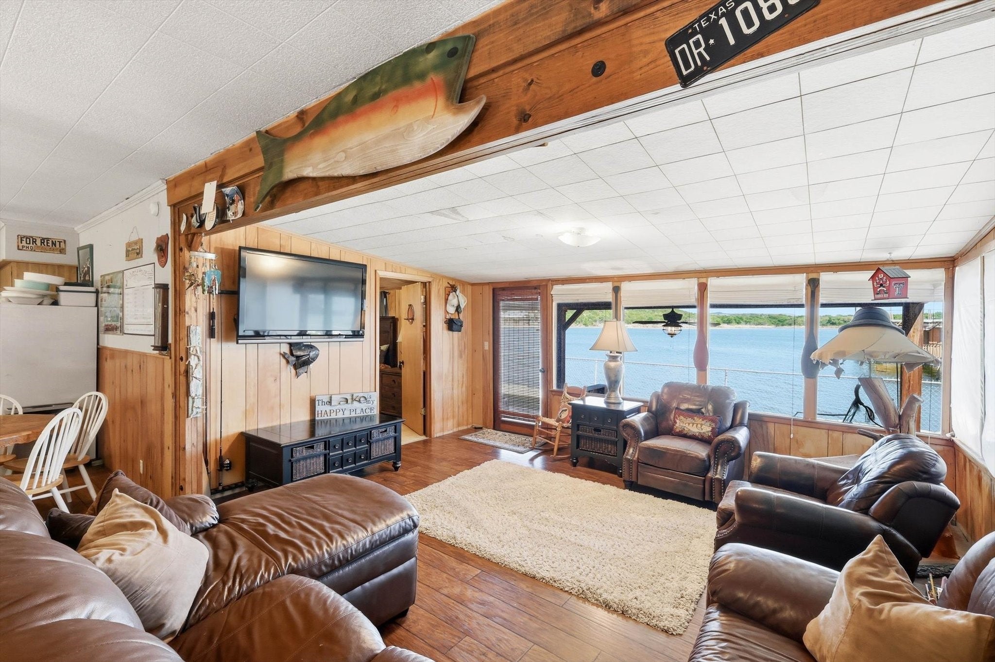 Discover an exceptional waterfront retreat designed for both relaxation and unforgettable entertaining. This stunning 2 bed, 2 bath home sits on the highly sought after west side, offering breathtaking water views and unmatched amenities for lake living at its finest. The home features spacious low maintenance layout, highlighted by an oversized guest suite, large enough to accommodate up to 8 guests, with space for 3 king size beds and a bunk bed. With minimal effort, the expansive room can be converted into 2 separate bedrooms, providing flexible living options for family and visitors. Step outside and experience true waterfront luxury. The property boasts of a private boat ramp and a convenient trolley system, making launching and storing your boat or wave runner effortless. A standout feature is the impressive crappie house, which is grandfathered in, complete with an upper deck and slide for fulfilled days on the water. Positioned over approximately 20 ft of water at the end of the crappie house, offers excellent fishing opportunities year round. In addition, the property includes a massive three-bay shop, ideal for storing boats, equipment and all your lake toys. Whether youre looking for a full-time residence, weekend getaway or income producing property, this one of a kind waterfront home delivers space, functionality and endless recreation in a truly unbeatable setting.