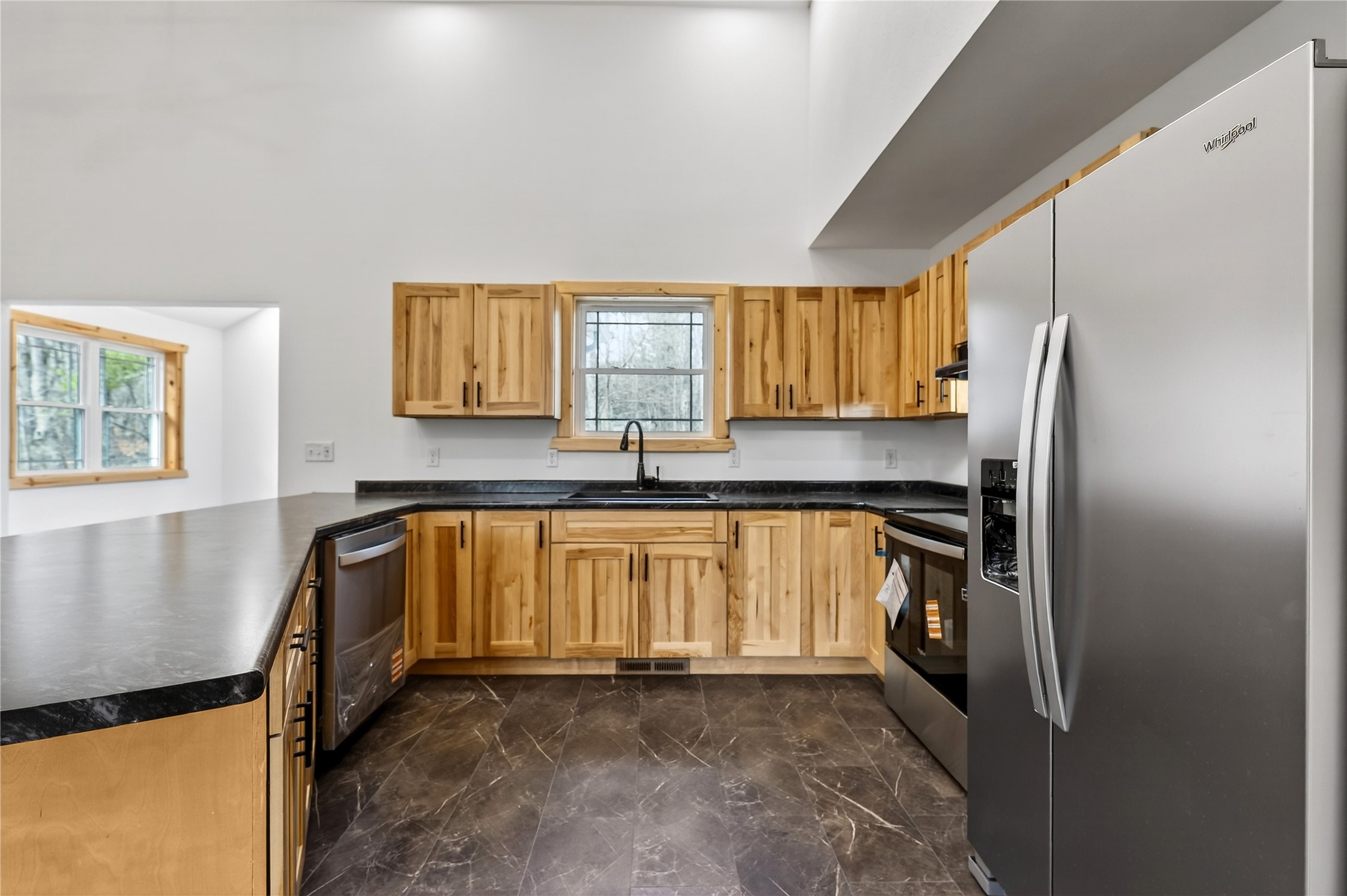 Northwoods New Construction Near Lake Winter 5 Bed, 3 Bath Home on 2.26 Acres – 699,900Built in 2025 with quality craftsmanship and energy efficiency in mind, this 5-bedroom, 3-bath home in Winter, Wisconsin offers the perfect blend of modern living and Northwoods lifestyle. Located just minutes from the Lake Winter boat landing, this property is ideal for buyers searching for a year-round home, vacation home, or investment property in Sawyer County.With 2,828 finished square feet, this new construction home features vaulted ceilings, an open-concept layout, and high-end finishes throughout. The kitchen and living area are designed for both comfort and entertaining, showcasing custom cabinetry, detailed trim work, and durable vinyl plank flooring.The home includes tile-surround showers, unique copper bathroom sinks, and thoughtfully designed spaces that elevate everyday living. A private upper-level loft suite with a bedroom and full bath creates a flexible retreat perfect for guests, a home office, or additional living space.The finished lower level expands the home's functionality and includes in-floor heat for year-round comfort. In-floor heat also extends to the attached garage, which features a floor drain, insulated walls, blown fiberglass ceiling insulation, and a finished drywall interior.Energy efficiency is a standout feature, with spray foam insulation in the exterior walls and ceilings, along with low-maintenance vinyl siding, a durable metal roof, and central air conditioning. Set on 2.26 acres, the property offers privacy and space to enjoy the outdoors. Relax on the covered front porch or entertain on the back deck after a day of boating, fishing, or exploring the nearby lakes and trails that make this area a sought-after destination. If you are searching for a new construction home near Lake Winter, WI, with acreage, modern finishes, and year-round usability, this property delivers exceptional value at 699,900.