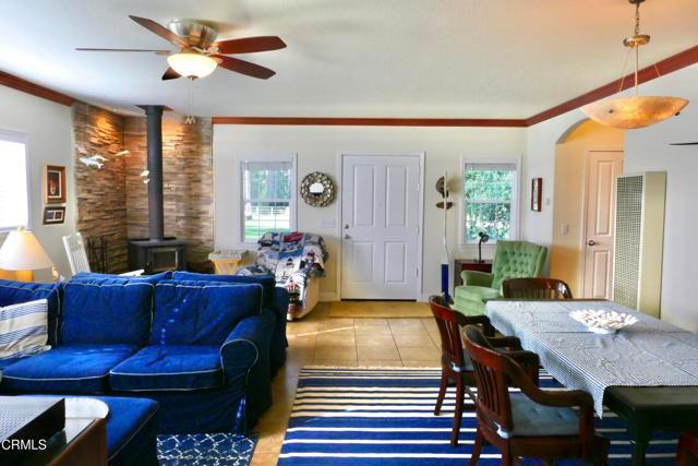Set on a scenic 1.15-acre parcel, this single-story craftsman feels instantly welcoming--thoughtfully maintained, quietly elegant, and surrounded by the kind of open space that makes you breathe a little deeper. The home offers two bedrooms and two bathrooms, all on one easy-living level, with an interior thats bright, warm, and completely turnkey. Inside, sunlight filters through plantation-style blinds, landing on the flagstone-surround woodstove and giving the living room a relaxed, grounded feel. The woodstove platform has additional plumbing installed for a potential future propane stove. Recessed lighting, arched doorways and modern fixtures add a clean, updated touch. The kitchen is a standout: warm wood-tone cabinetry, striking quartz counters, a propane cooktop, and a double wall oven ready for everything from weeknight dinners to holiday baking marathons. Step outside and the property opens up beautifully. A shaded cement patio sits just off the back of the house--ideal for morning coffee, evening barbecues, or simply watching the sky change colors. A pump house with ozone filtration and dual holding tanks keeps things running smoothly, and the outdoor shower is a small luxury youll appreciate more than you expect. A 12 x 5 storage shed keeps tools and toys neatly tucked away. Nature adds its own touches: fruit trees beginning to bloom promise an abundant harvest, a single regal redwood anchors the landscape, and a border of eucalyptus sways at the back of the property. With State Park trails nearby, spontaneous hikes and sunset walks become part of daily life. Whether youre looking for a full-time residence, a second home, or a property with vacation-rental potential, this home offers the kind of flexibility--and serenity--thats increasingly hard to find.