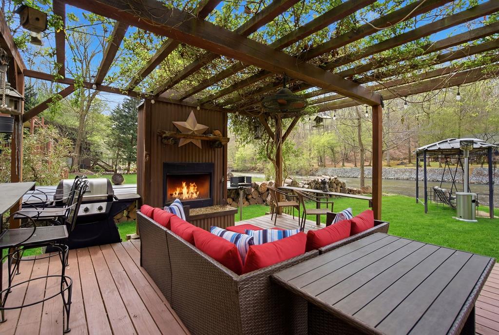 RIVERFRONT CABIN IN COOSAWATTEE RIVER RESORT.. Located inside the gated Coosawattee River Resort, this spacious 3BR/3BA riverfront cabin offers over 3,000 sq ft of living space with a blend of rustic charm and modern updates. Interior features include warm wood walls complemented by sheetrock, an open living concept, and updated kitchen and bathrooms designed for comfort and functionality. Enjoy year-round outdoor living with expansive enclosed decks and a large entertainment area featuring an outdoor kitchen and direct access to the river ideal for relaxing, hosting, or enjoying the North Georgia mountain setting. The layout provides flexibility for full-time living, second home use, or short term rental potential, with ample storage and space to accommodate guests and everyday needs. Community amenities include a year round Olympic-sized indoor pool, two outdoor pools, tennis courts, fitness center, walking trails, and river parks, all within a gated community known for its strong rental presence and mountain lifestyle appeal. A rare opportunity to own a true riverfront property with space, updates, and access to one of Ellijays most desirable communities. Call me for a private tour today!