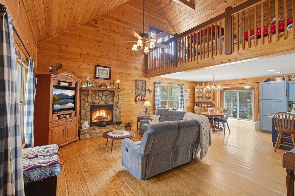 RIVERFRONT CABIN IN COOSAWATTEE RIVER RESORT.. Located inside the gated Coosawattee River Resort, this spacious 3BR/3BA riverfront cabin offers over 3,000 sq ft of living space with a blend of rustic charm and modern updates. Interior features include warm wood walls complemented by sheetrock, an open living concept, and updated kitchen and bathrooms designed for comfort and functionality.