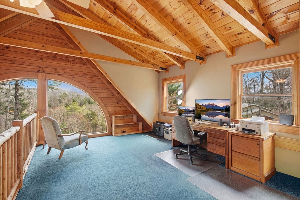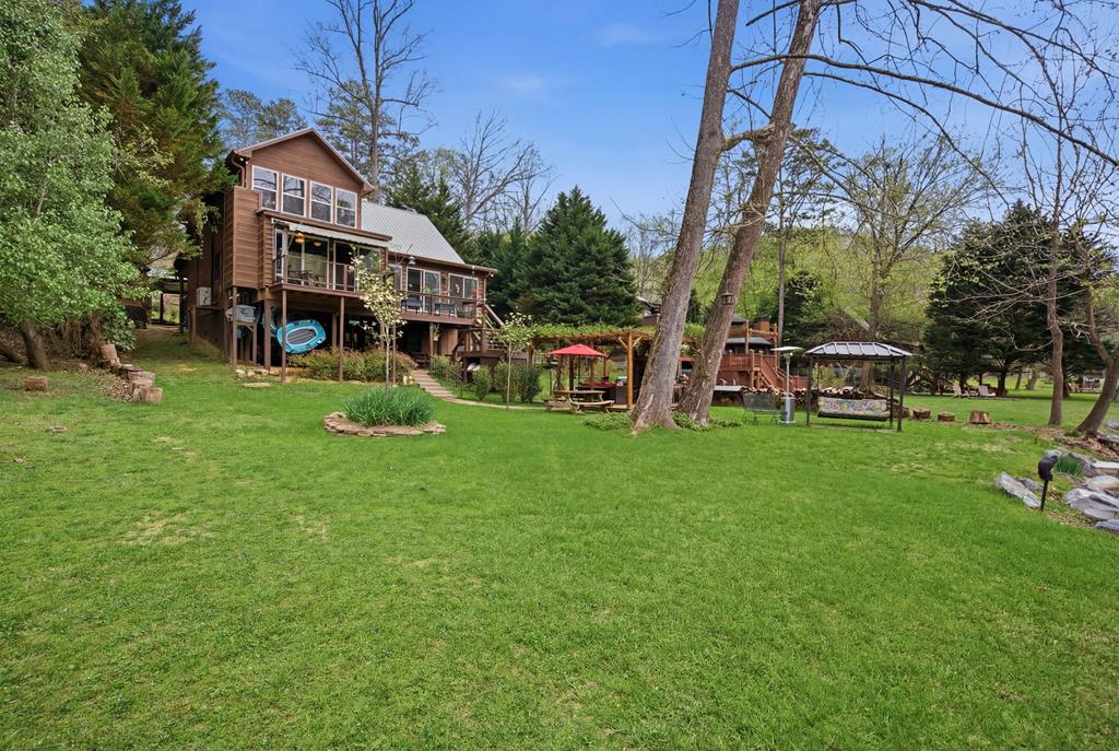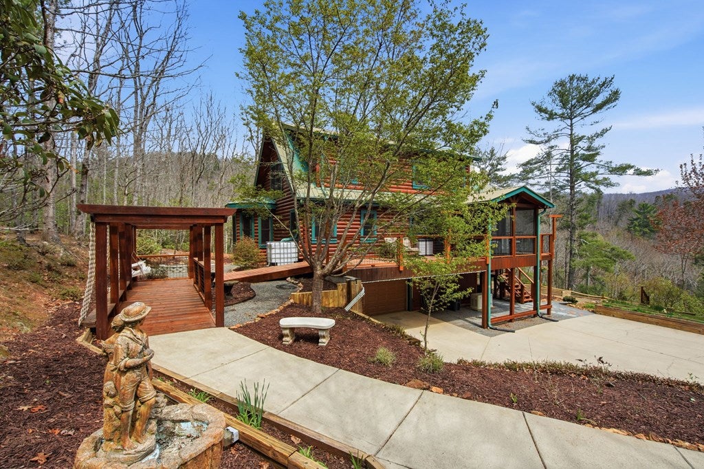 Private Mountain Homestead on 8.79 Acres Backing National Forest - Garden, Views & Ultimate Self-Sufficiency! Tucked deep into the North Georgia mountains and backing directly to protected U.S. National Forest, this rare 8.79-acre private homestead offers the kind of freedom, space, and self-sufficient lifestyle youre actively searching for and almost never find. Surrounded by nature with no true neighbors in sight, this solid log chalet delivers year-round mountain views through a dramatic wall of windows, creating a seamless connection between indoor comfort and the natural beauty beyond. Step outside onto expansive new decking and a screened porch designed for morning coffee, evening sunsets, and complete peace. Inside, the open-concept living, kitchen, and dining area is anchored by a rock-faced fireplace, with a spacious main-level primary suite featuring a sitting area, walk-in closet, and spa-style bath with jetted tub and separate shower. The upper-level loft offers additional living space, bedroom, and full bath, perfect for guests or extended stays. A partially finished terrace level adds flexibility with a family room, wet bar, powder room, garage access, and additional storage. This property truly shines as a working homestead. Established raised garden beds, fruit trees including apple, pear, blueberry, and grapevines, plus multiple outdoor sitting areas create a lifestyle centered around sustainability and connection to the land. A whole-house Generac generator, propane backup systems, fiber internet, and updated mechanicals provide modern reliability while maintaining off-grid readiness. For those needing space for equipment, hobbies, or recreation, the impressive detached 832 sq ft garage/workshop is fully equipped with power, insulation, RV hookups, and high-clearance doors ideal for boats, travel trailers, side-by-sides, and more. A second driveway and additional building site with outbuildings expand functionality even further. Whether youre seeking a full-time residence, private retreat, or legacy property, this one-of-a-kind mountain homestead offers unmatched privacy, usable land, and a lifestyle thats becoming increasingly hard to find. Call me today!