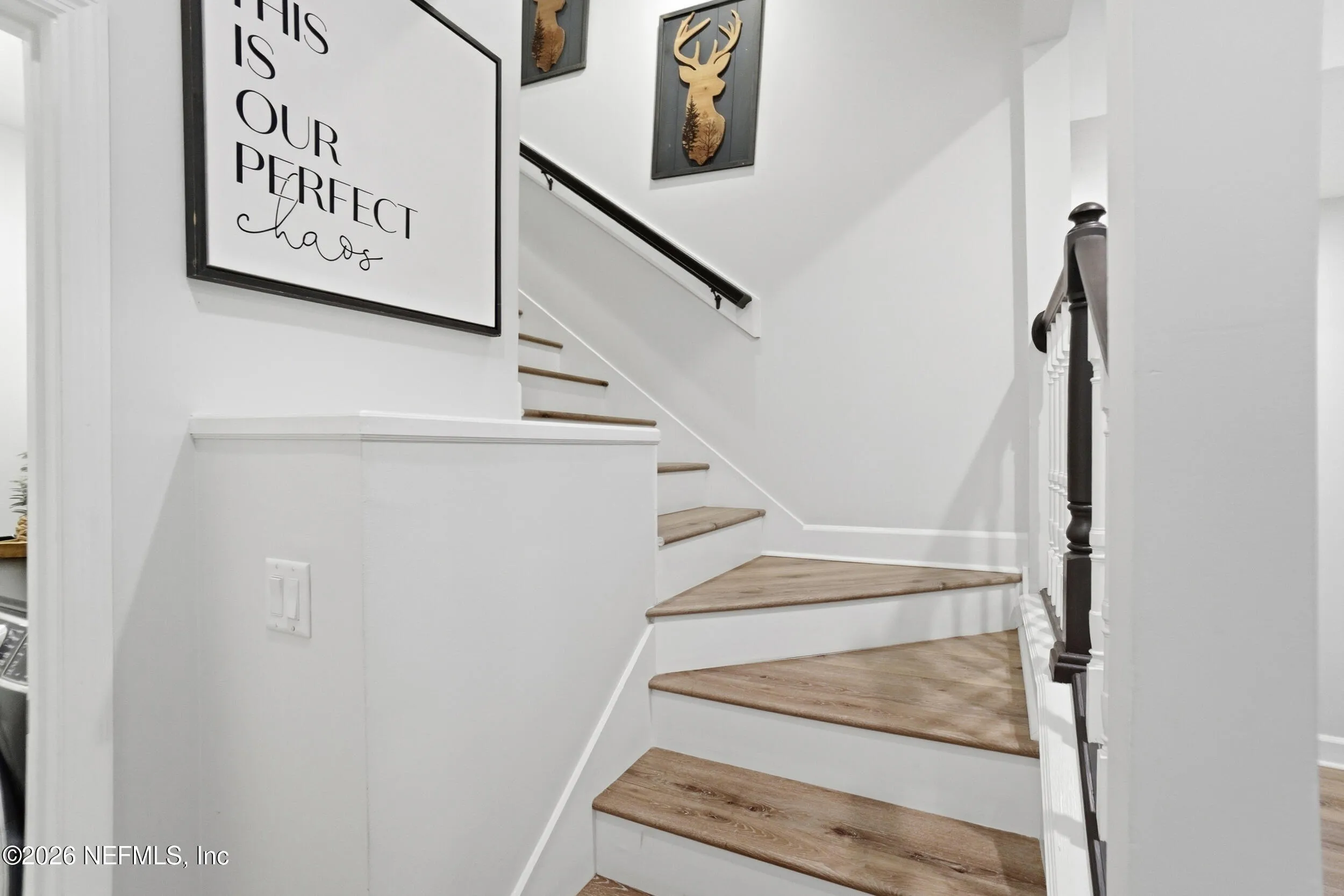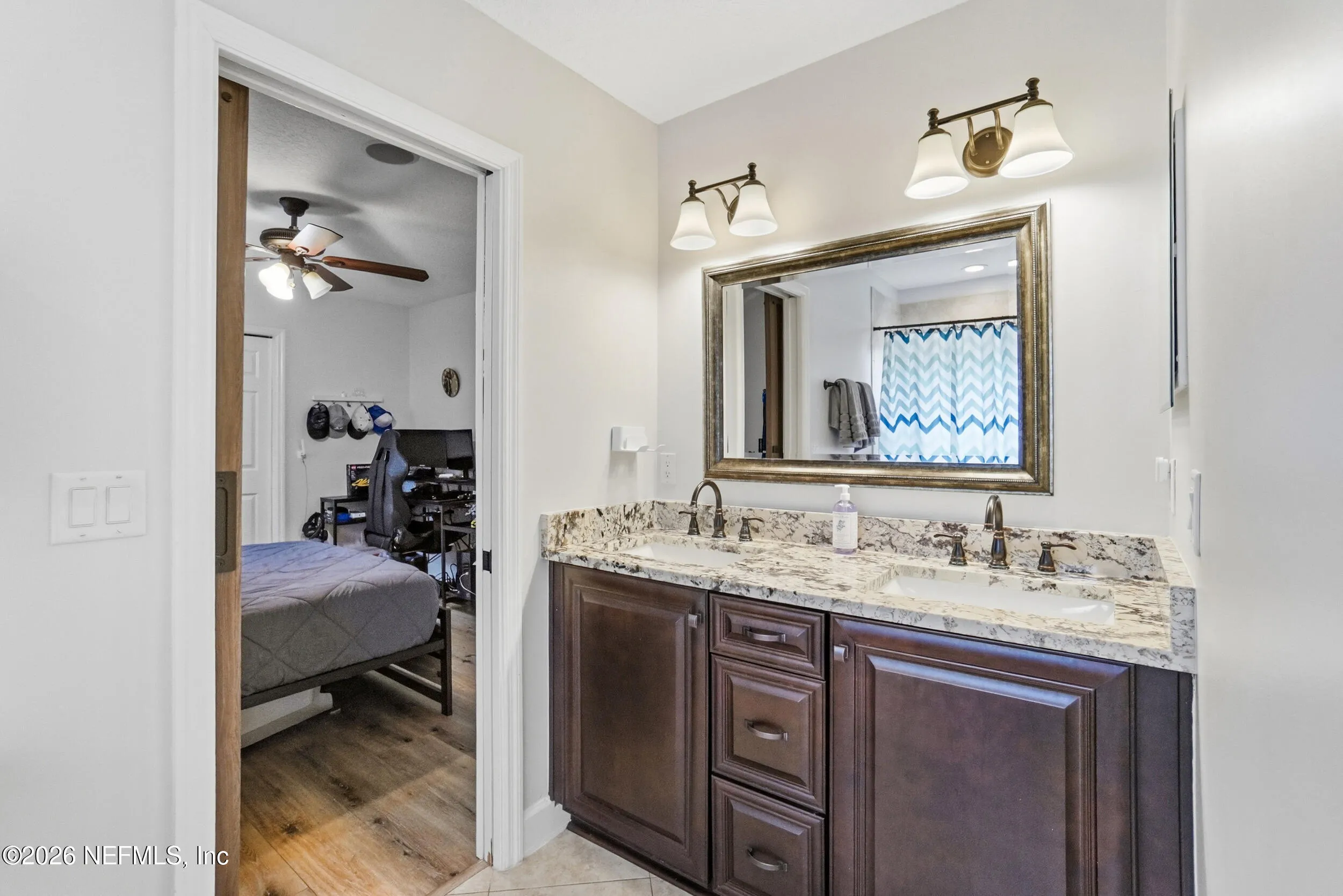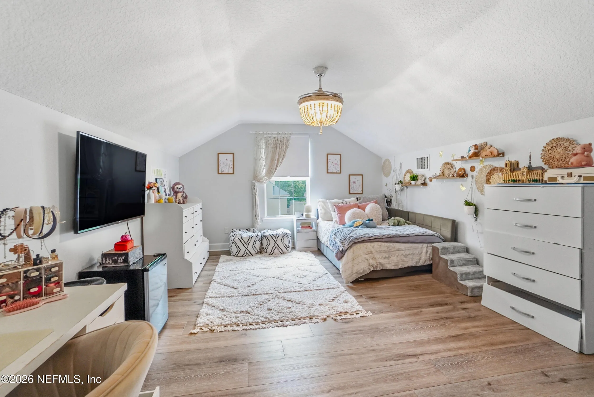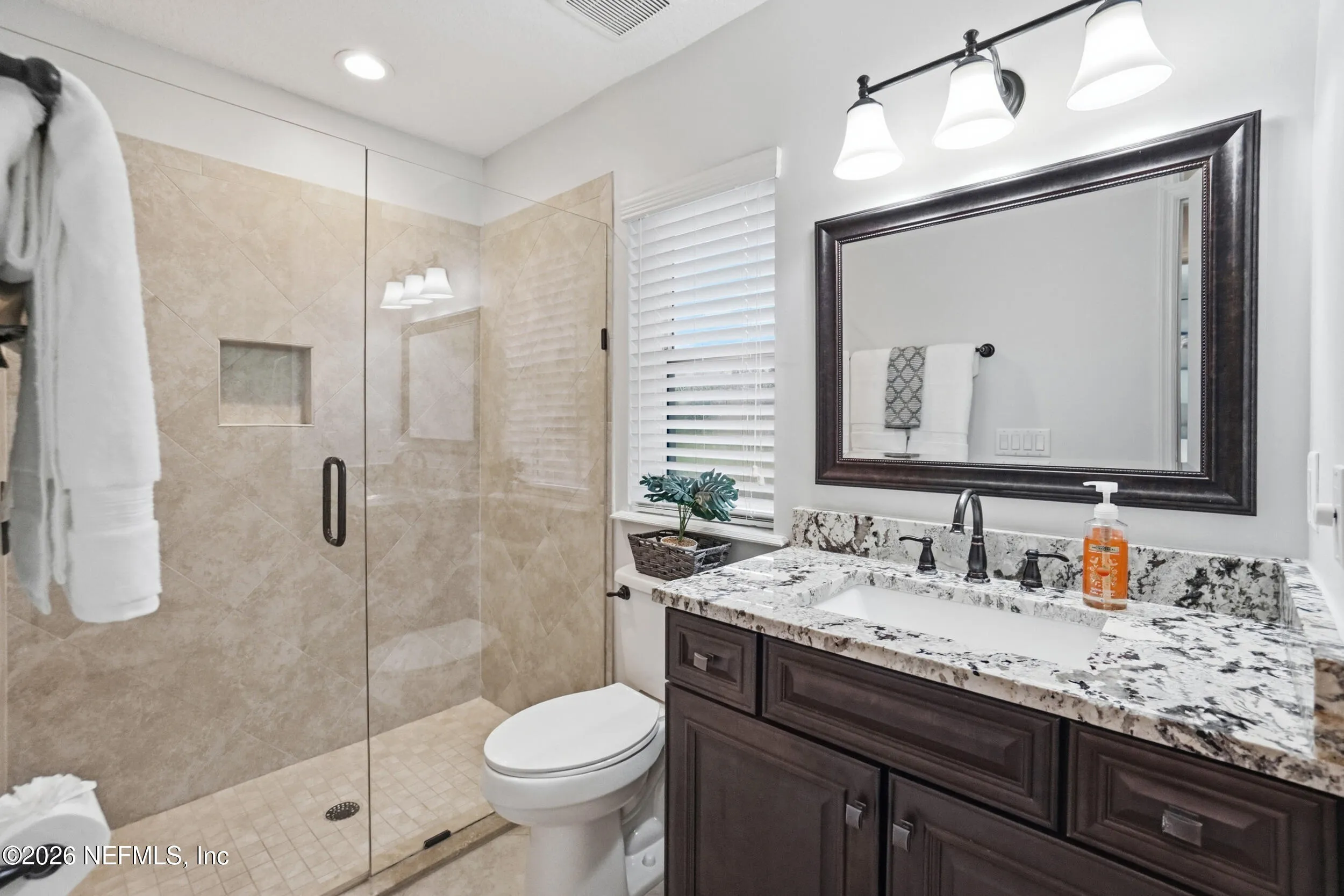 Located in Jacksonville Golf & Country Club, one of the areas premier gated communities, this beautiful 5 bedroom / 4.5 bathroom pool home offers a truly functional layout. Four bedrooms are located on the main level, including the primary suite and a dedicated office with custom built-ins. Wide plank flooring runs throughout (no carpet anywhere), and a wood-burning fireplace anchors the main living area. The kitchen features updated stainless appliances, beautiful countertops, and opens easily to the living and dining spaces. Interior and exterior paint colors are fresh and neutral. A large upstairs bonus room with ensuite bath serves as the 5th bedroom - ideal for guests or a private retreat. Step outside to a screened pool and patio, along with a private backyard featuring lovely lake views. A circular paver driveway offers extra parking and great curb appeal. Enjoy this special home and the vibrant community with access to pickleball, basketball, sports fields, and playground.