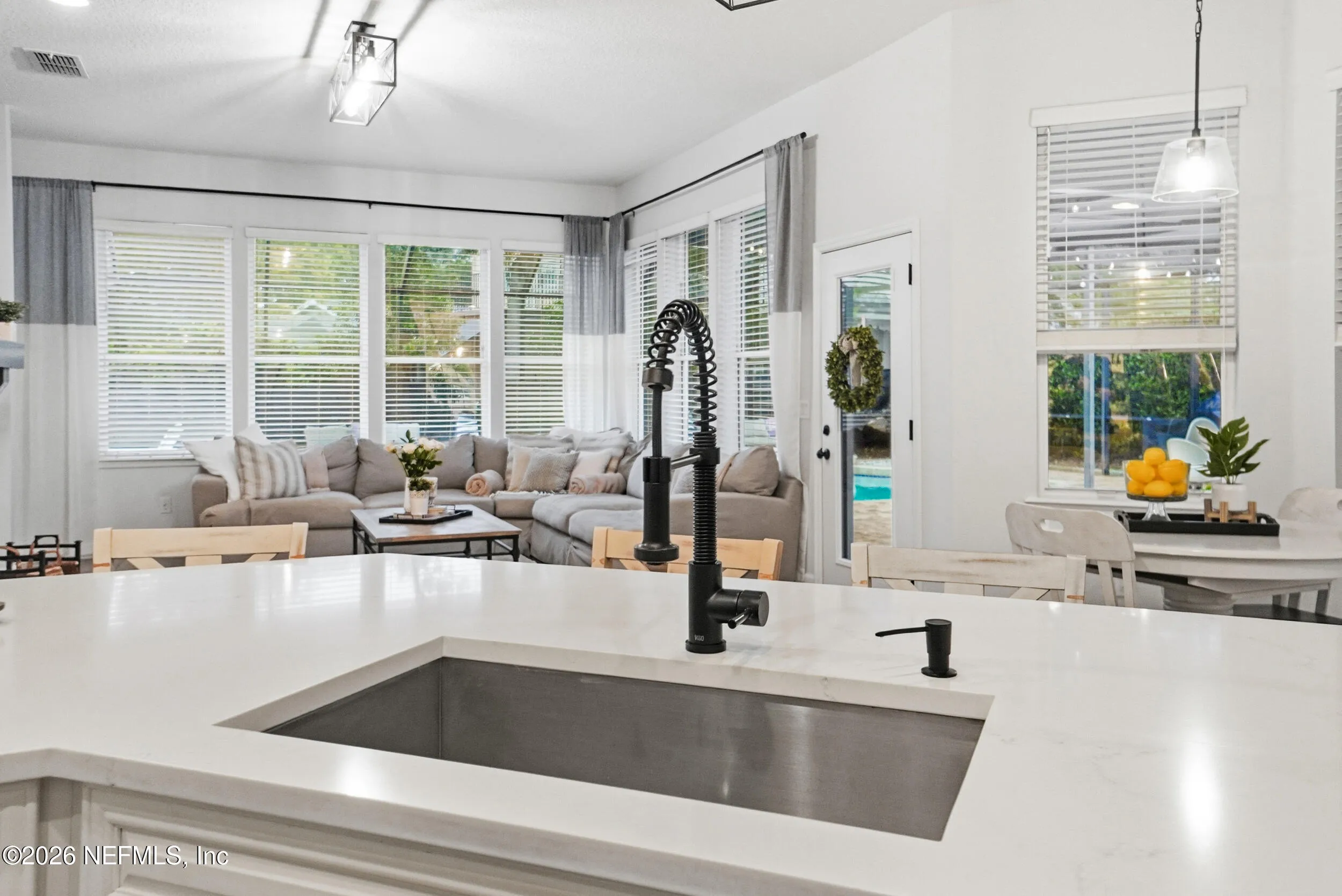 Located in Jacksonville Golf & Country Club, one of the areas premier gated communities, this beautiful 5 bedroom / 4.5 bathroom pool home offers a truly functional layout. Four bedrooms are located on the main level, including the primary suite and a dedicated office with custom built-ins.