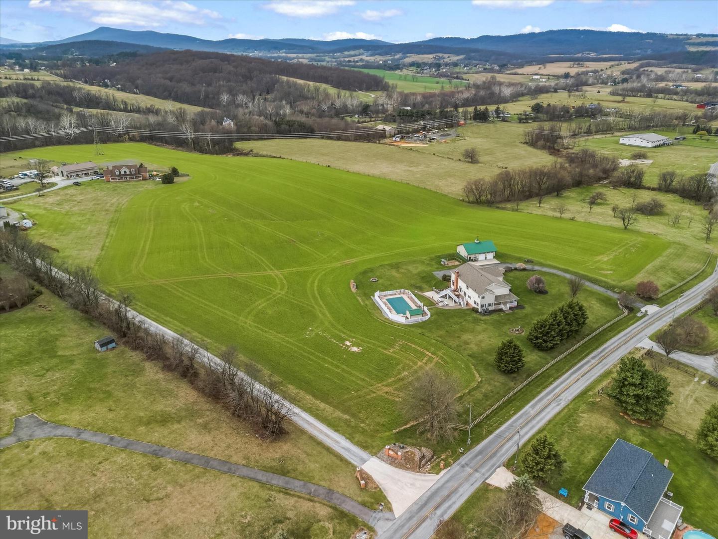 Texas farmhouseinspired estate set on 8.73 picturesque acres in Boonsboro, offering sunsets over expansive mountain scenery tucked among rolling pastoral views. With 3,553 sq ft above grade plus a fully finished walkout lower level, this home blends scale, warmth, and extensive infrastructure upgrades for everyday comfort, entertaining, remote work, and longterm flexibility.The main level features a traditional living room and formal dining room flowing alongside the wellappointed kitchen with granite countertops, generous workspace, double oven, gas range, undercabinet lighting, GE SmartHQ appliances (2023), and a dedicated dry pantry with upright freezer. These spaces open to a dramatic twostory family room with fireplace, ideal for entertaining and family gatherings, framed by expansive windows capturing scenic mountain and sunset views. Wideplank LVP flooring (20212022) enhances all main living areas, while walltowall carpeting provides comfort in the bedrooms.Upstairs offers four bedrooms, including a spacious primary suite with walkin closet, updated bath with soaking tub, and dedicated HVAC zone. One guest bedroom includes a walkin closet convertible to a small craft area or private office. All bedrooms feature lighted closets. The upperlevel laundry room includes GE SmartHQ frontload washer and dryer (2022). In total, the home provides 3 full baths and 1 half bath.Interior features include two fireplaces (one upper level, one lower level) with updated inserts and stainless steel flues, Trane HVAC systems under 8 years old with multizone controls for main and upper levels plus a separate primary suite zone, 28 newly replaced doublehung windows (DP50 RPG40, vinyl frames with screens), central vacuum, wholehouse intercom and music system, recessed lighting, custom closet organizers, and integrated smarthome wiring.The fully finished walkout lower level with wood stove includes a second kitchen, recreation room, full bath, storage, and direct access to an expansive concrete patio.Outdoor living is exceptional, with brick walkways to a 24,000gallon inground pool (graded 38 ft with entry steps and jumping board) featuring a new 27mil liner (02/2024) and new Hayward HSeries 400K BTU heater (02/2025), pool house, new outdoor hot tub, outdoor surround sound, and a blockbuilt fire pit for bonfires. Enjoy a wraparound porch with cement base and a refurbished deck overlooking panoramic mountain and pastoral sunsets.A blacktop driveway leads to a sideload 2car garage with EV charging. The detached Extreme outbuilding (approx. 3040) offers two tallbay doors, heat, water, cable, phone, concrete floors, and an insulated 13.511.6 office with heat and A/C, plus floortoceiling storage with library ladders.Infrastructure includes a new 2023 CertainTeed Landmark Pro architectural roof (130mph) with SureStart PLUS coverage through 04/14/2073 (fully transferable), 500amp electric, generator hookup, water softener and water filtration plant, robust internet wiring, and a 500gallon LP tank (new regulators 2025) supplying heat to the home and pool. Grounds include fencing, high and lowvoltage lighting, retaining walls, landscaping, and a chicken coop with electric. Potential subdivision (buyer to verify with Washington County). Convenient access to I70, I340, I9, and I81; near Appalachian Trail, historic destinations, VA/MD wineries, and approx. 60 minutes to IAD and BWI. Boonsboro schools. Positioned for both privacy and connectivity, this property supports fulltime residence, multigenerational living, professional remote work, and longterm investment potential while maintaining a rare balance of openness, security, and enduring rural character. This setting offers yearround enjoyment, unmatched privacy, and exceptional flexibility for evolving lifestyle needs, ideal for today.