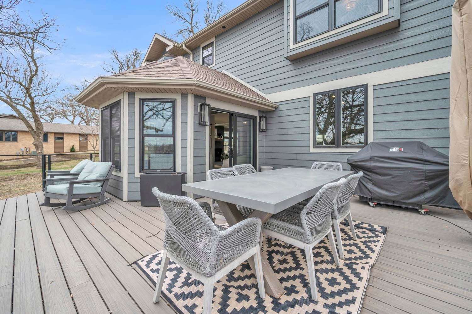 Experience the best of East Lake Okoboji living in this beautifully updated, one-owner home that has never before been listed. This 6-bedroom, 4-bathroom home offers over 4,300 square feet of finished space and 100 feet of lakeshore. Thoughtfully designed for both everyday living and effortless entertaining, the home features multiple gathering areas, expansive lake views, and a seamless connection to outdoor spaces. A bright and inviting sunroom perfectly captures the lake and offers direct access to a large lakeside deck. Just steps from the water, a dedicated fire pit area creates the perfect setting for relaxing nights by the lake. This property has undergone extensive updates, including Diamond Kote siding with a long-lasting, low-maintenance finish and Pella windows in 2024, along with a high-efficiency furnace and A/C. The primary bathroom was fully remodeled in 2025, and a new water heater was installed the same year. The landscaped bank enhances both usability and shoreline appeal. This is an incredible opportunity to own a spacious, well-maintained, and beautifully updated home on the lake with exceptional frontage and views.