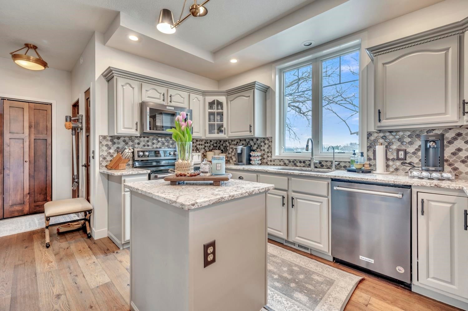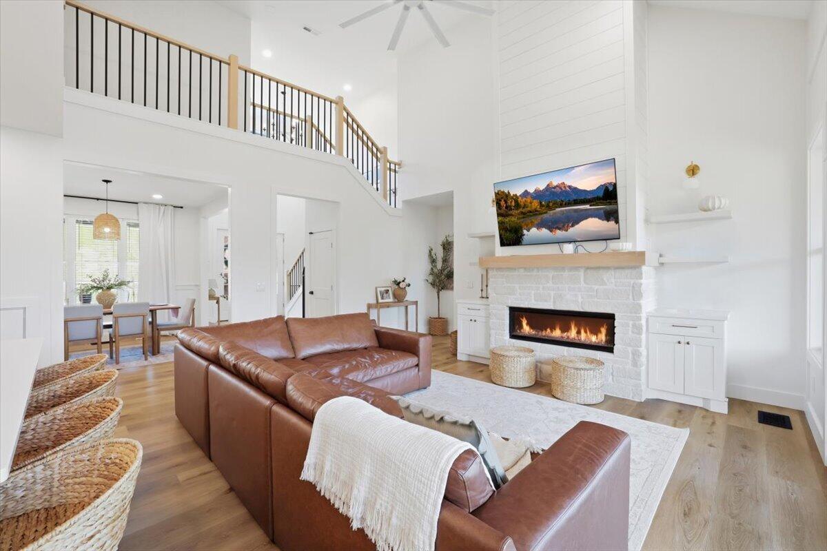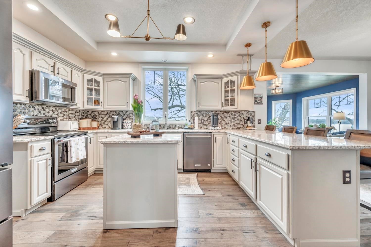 🌊 Luxury Lakefront Living - Fully Custom with Private Dock 🏡Welcome to this stunning, fully custom-built 2024 lakefront home where no detail was overlooked and nothing is builder grade. Offering 5 bedrooms and 5 full baths, this home is designed for both luxury living and everyday comfort--with year-round water and your own private 1-slip dock featuring an aluminum walkway, jumping platform, and tanning deck.Step inside and fall in love with the soaring vaulted ceilings, tray ceilings, and beautiful white oak cabinetry paired with a timeless Greek Villa color palette. The open living space features an electric fireplace, custom wood accents, and built-in cabinetry throughout.The chefs kitchen is a dream with all Bosch appliances, white quartz countertops, a breakfast nook, and a separate formal dining area--perfect for hosting family and friends.The main-level primary suite is a true retreat, featuring: ✨ Custom lighting✨ Spa-like soaking tub✨ Custom tile shower✨ Massive 8x12 walk-in closet with built-insDownstairs, the basement is set up like a full apartment with a kitchenette--ideal for guests, in-laws, or even rental potential.Additional features include: ✔️ Mudroom off garage (currently used as playroom)✔️ 2-car garage with glass door that opens into a full gym space with rubber flooring✔️ Built-in vault/safe✔️ Large closets and custom built-ins throughout✔️ Chair rail detailing & wood accent walls✔️ Fenced backyard with lake-fed sprinkler system✔️ Poured foundation walls & energy-efficient construction✔️ City water & sewerComplete safe roomEnjoy outdoor living with a concrete ramp to your dock, peaceful lake views, and access to community pool amenities--all with a low HOA of just 275/year.💰 Furniture is negotiable💡 Short-term or long-term rentals allowedThis is more than a home--its a luxury lake lifestyle.