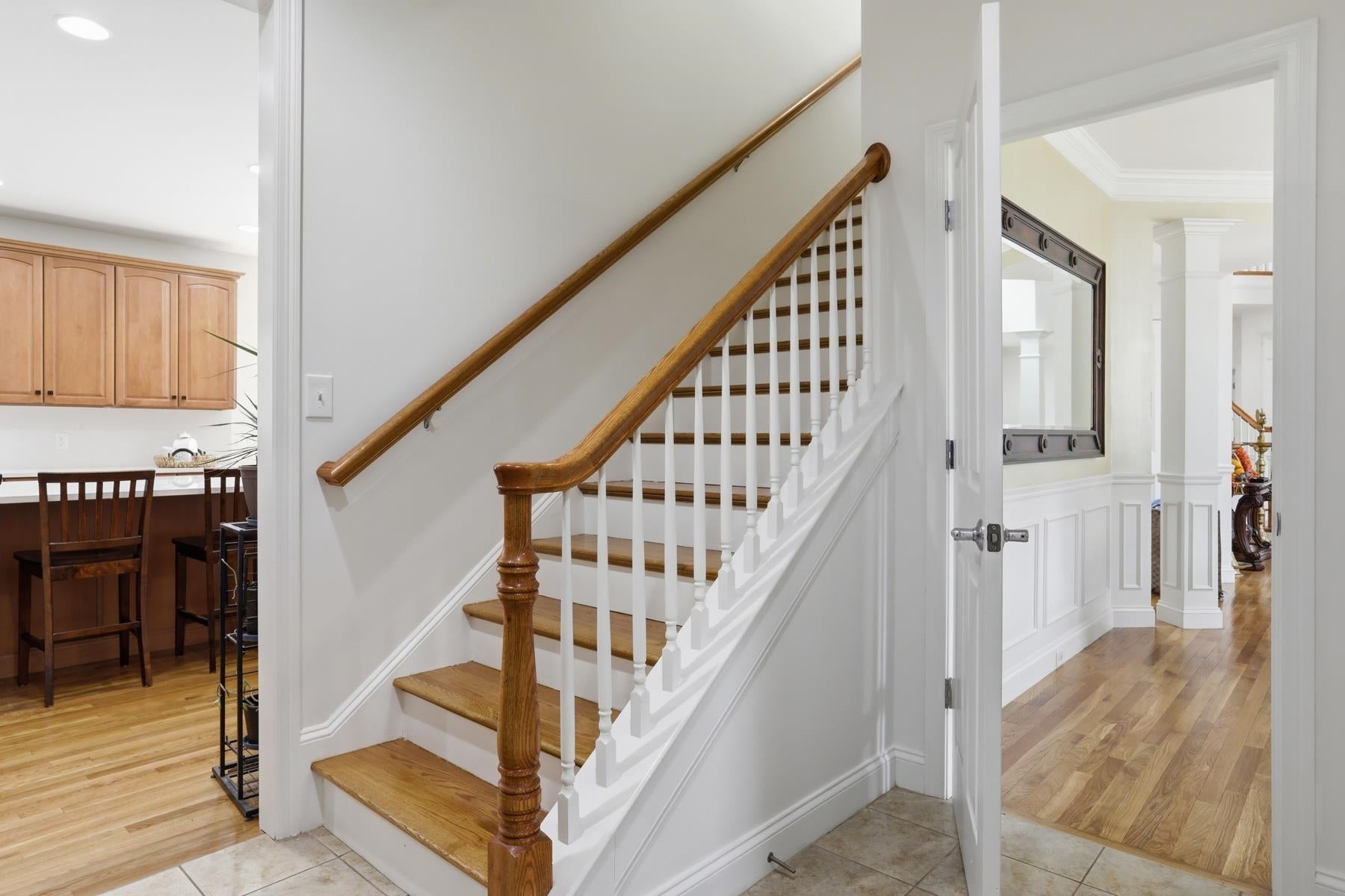 Set back from the main road, this stately Robbins Mill Colonial stands proud on one of the best lots in the neighborhood abutting conservation land and with lawn enough for field sports plus a future pool. A dramatic two-story foyer with an elegant crystal chandelier welcomes you to this open floor plan with flexible spaces.