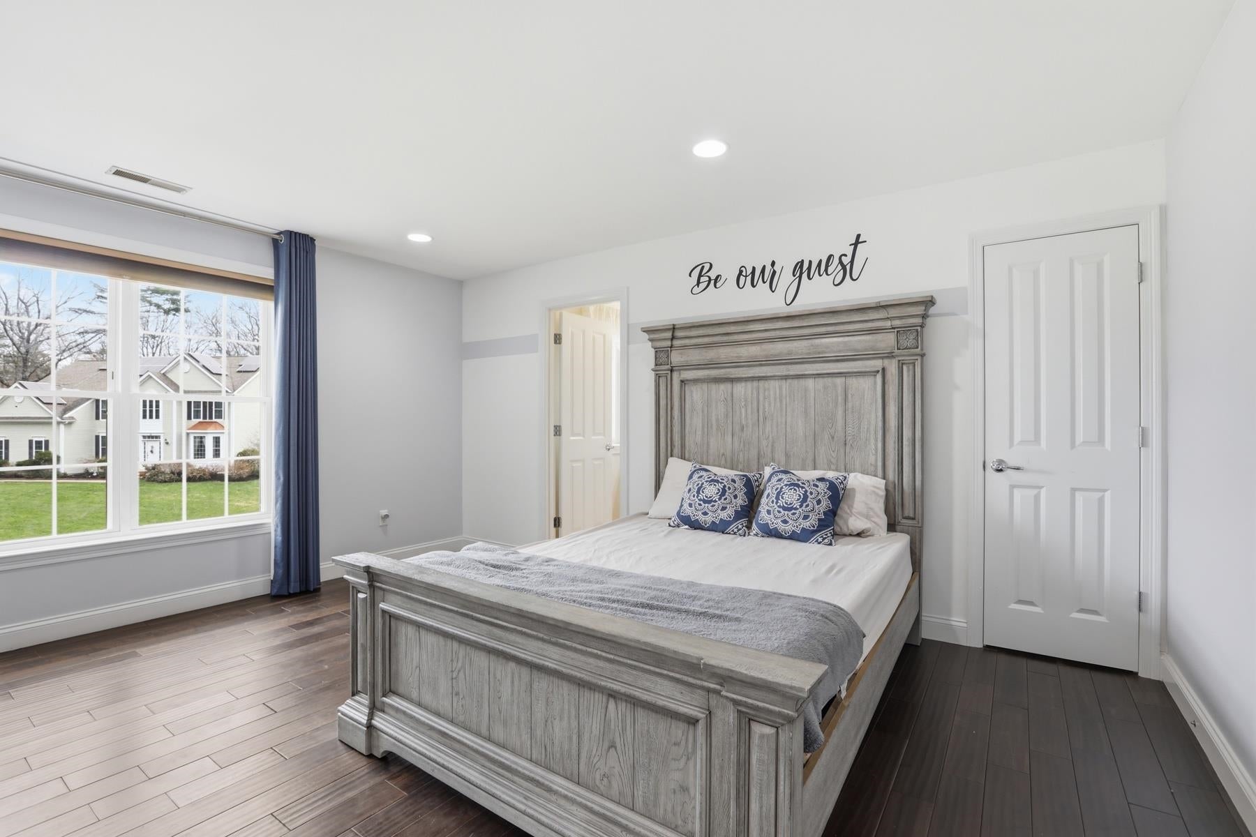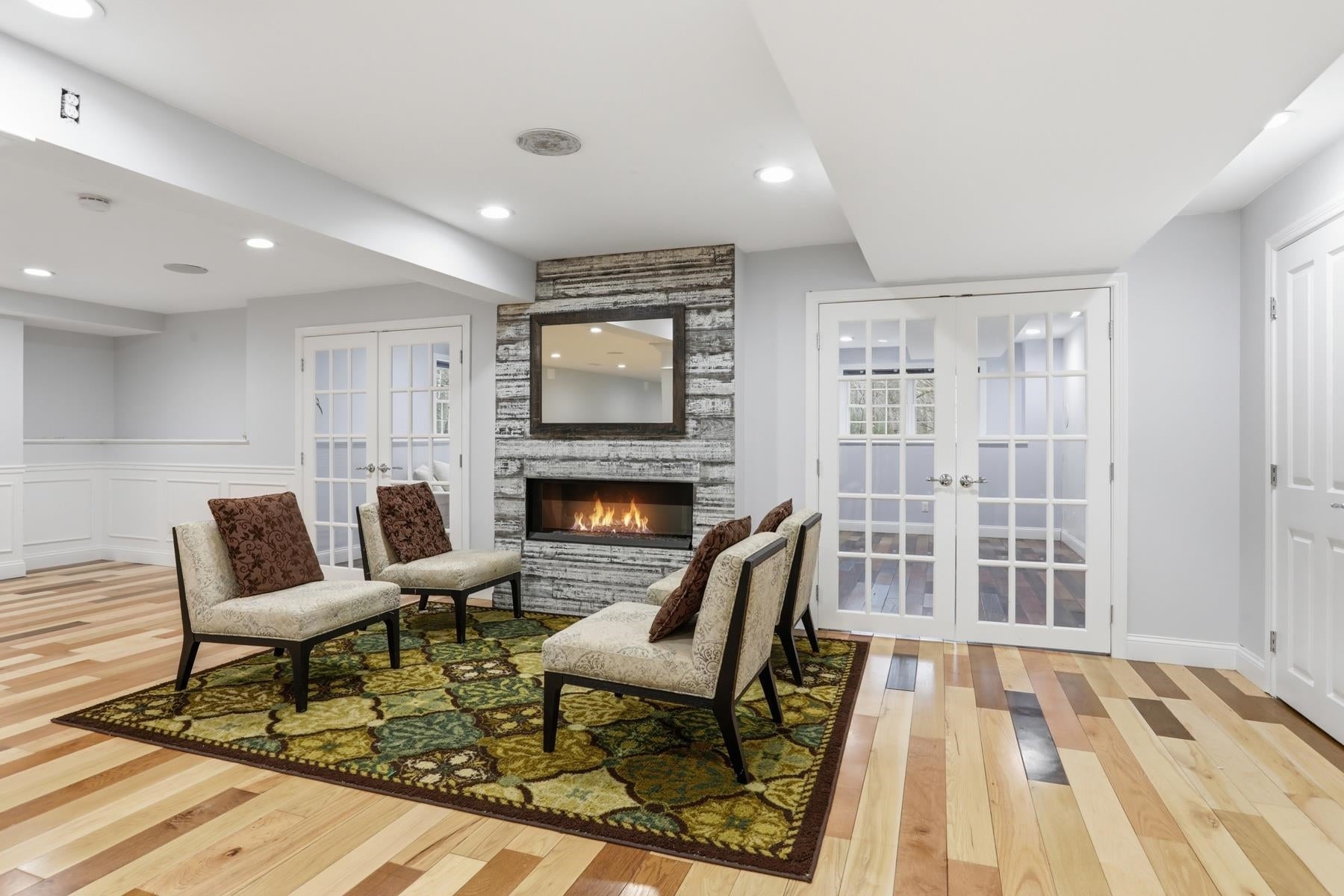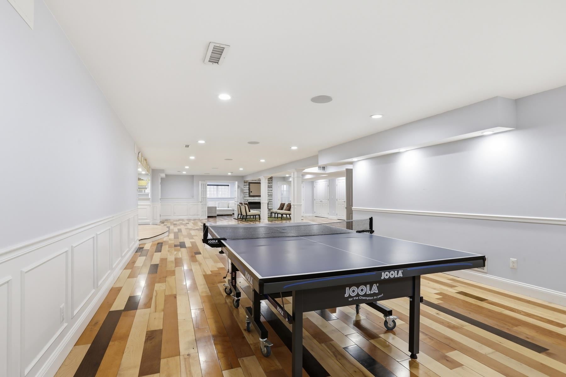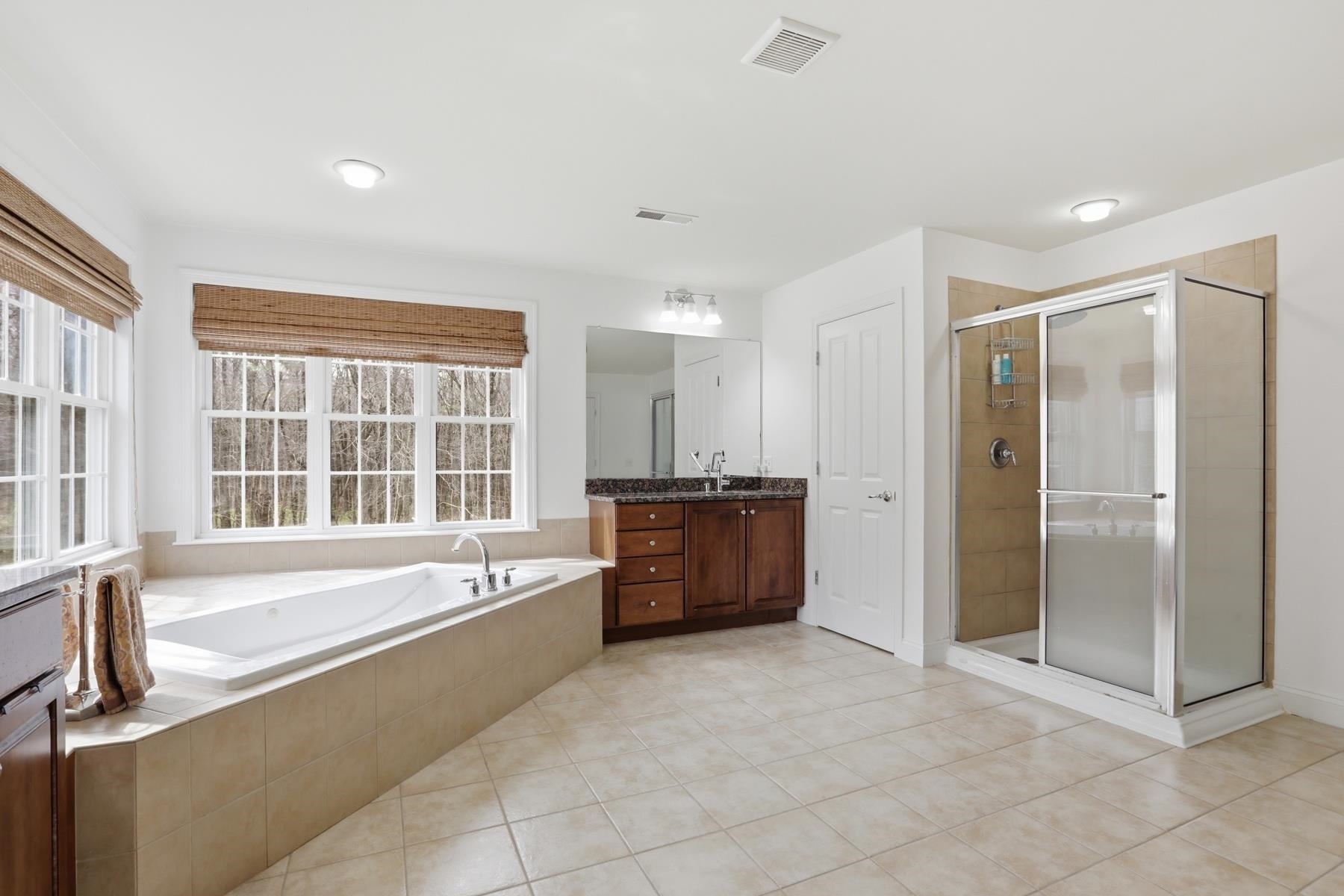 Set back from the main road, this stately Robbins Mill Colonial stands proud on one of the best lots in the neighborhood abutting conservation land and with lawn enough for field sports plus a future pool. A dramatic two-story foyer with an elegant crystal chandelier welcomes you to this open floor plan with flexible spaces. The gourmet kitchen impresses with a large island, quartz countertops and backsplash, and an easy flow into back yard or the family room with its stone fireplace and coffered ceiling. Dedicated entertaining and office space, plus a 1st floor bonus room for work, play or hobbies complete the 1st floor. Upstairs, the primary suite offers generous closet space, a spa-like bath, and sitting area or extra office, plus there are 3 additional bedrooms with ensuite or shared bath. The lower level adds 2,300 SF including a theater room, Bose sound, bath, and potential for a home gym or in-law suite. Fresh paint, updated counters & faucets, plus owned solar panels.