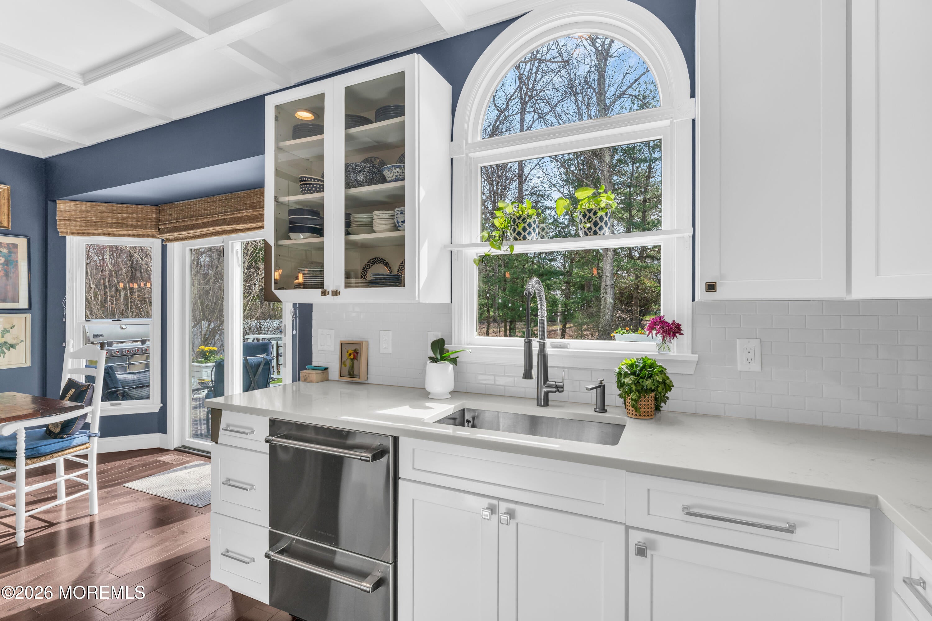 COMING SOON! Showings to begin April 9th. IMMACULATE 5/6 Bedroom Brick Front Colonial w/ Finished Basement in one of Northern Manalapans Most Sought After Cul De Sac Streets! This meticulously upgraded home offers the perfect blend of timeless elegance, modern convenience, and exceptional craftsmanship throughout, along with several NEWER big ticket items such as roof (2 years), Furnace (3 months), Tankless Water Heater (3 years) and more! Step inside to find extensive interior molding, a stunning coffered ceiling, custom built-ins, and a beautifully appointed fireplace with mantle and sandstone apron, creating a warm and refined atmosphere. The thoughtfully updated kitchen features upgraded cabinetry, sink, premium Fischer Paykel dual-level dishwasher, and is complemented by 57 LED recessed lights throughout the home. Hardwood flooring spans the entire first floor, primary bedroom, and exercise room, while tile flooring enhances all bathrooms, each fully renovated with new vanities, updated tile, comfort-height toilets, and sleek glass shower enclosures. The spacious primary suite also includes a custom-designed closet, and ceiling fans have been added to every bedroom for added comfort. A well-equipped laundry room with cabinetry and pantry storage adds everyday convenience. 1st Floor offers a potential 6th bedroom, or office/flex space to suit your family needs. The fully finished basement with 8-foot ceilings offers incredible additional living space, complete with a half bath, carpeting, shelving, electric baseboard heat, sub-panel, slop sink, security system, and private Bilco door entrance--ideal for guests, recreation, or extended living. Major system upgrades include a high-efficiency 2-zone HVAC system with smart thermostats and a tankless hot water heater.Outside, enjoy a beautifully landscaped property featuring mature plantings, a dual-level deck, exterior lighting with timers, and a full paver walkway wrapping from the driveway to the rear yard. A 5-zone irrigation system, 100-foot chain-link fence, and Timberline 40-year architectural roof complete this exceptional offering, delivering both beauty and peace of mind.Top rated Manalapan Schools and just seconds from NYC Bus Stops, Restaurants, Shopping, and More!