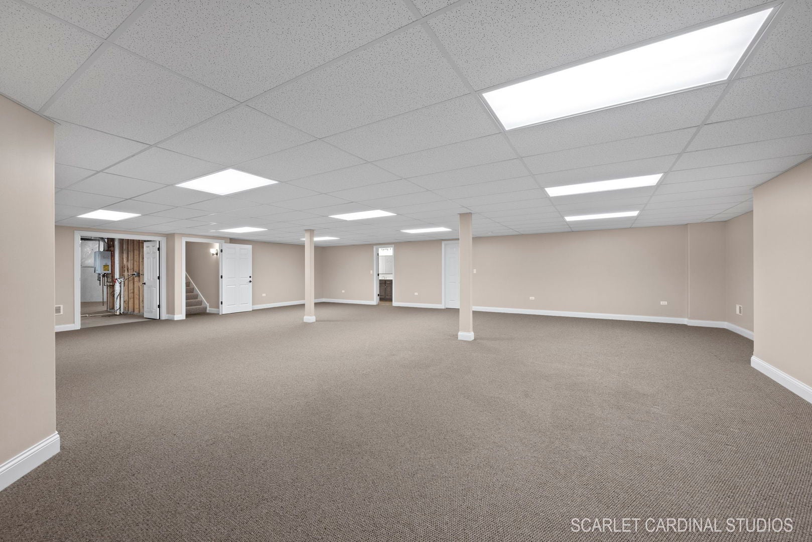 Why wait for new Construction! Nestled within the prestigious Dunmoor Estates, this exquisite one-of-a-kind Custom Ranch-style residence, crafted by Oak Hill Builders, stands as a testament to luxury living. Its captivating blend of All Brick and Stone exterior exudes timeless elegance, setting the stage for a truly remarkable home. With four bedrooms and three and a half bathrooms, this residence epitomizes spaciousness and comfort, showcasing meticulous attention to detail throughout, from the full finished basement to the 3 1/2 car heated garage. Step inside to discover an open floor plan seamlessly integrating the living spaces. The gourmet kitchen, the heart of the home, is a haven for culinary enthusiasts. Featuring Brakur custom cabinetry with custom built-ins and pull-out drawers, granite counters, a Center Island, breakfast bar, eat-in area, walk-in pantry, and top-of-the-line Thermador appliances including a dual oven, cooktop, and dishwasher, it epitomizes sophistication. Entertain guests effortlessly in the expansive family room, adorned with soaring ceilings, a custom stone gas log fireplace, dual oversized skylights, surround sound, and 4 hardwood Oak flooring. Find serenity in the sunroom, boasting French doors and a slider leading to the brick paver patio, perfect for moments of relaxation. The master suite offers a private retreat, complete with a voluminous ceiling, a generous walk-in closet, and a luxurious ensuite bath with a whirlpool tub, separate shower, elegant lighting, and dual vanities. Additional highlights include a first-floor office/den, a dining room adorned with an elegant chandelier, wainscotting, and hardwood flooring, as well as a laundry room for added convenience. The deep pour basement offers a fourth bedroom, a full bathroom, huge recreation area, and ample storage space. This home boasts numerous upgrades, including 10 ceilings on the first floor, 4 hardwood floors throughout the first floor (Except Sunroom) , crown molding, columns, 8 baseboards, tankless hot water tank, high-efficiency furnace with UV light protection, central vacuum, inground lawn sprinklers, and upgraded Pella windows. Home is professionally landscaped with a front brick paver patio as well. With impeccable craftsmanship and unparalleled amenities, it epitomizes luxury living at its finest. Dont miss the opportunity to make this your dream home, conveniently located near District #202 schools and overlooking the tranquil pond and park. Welcome Home!