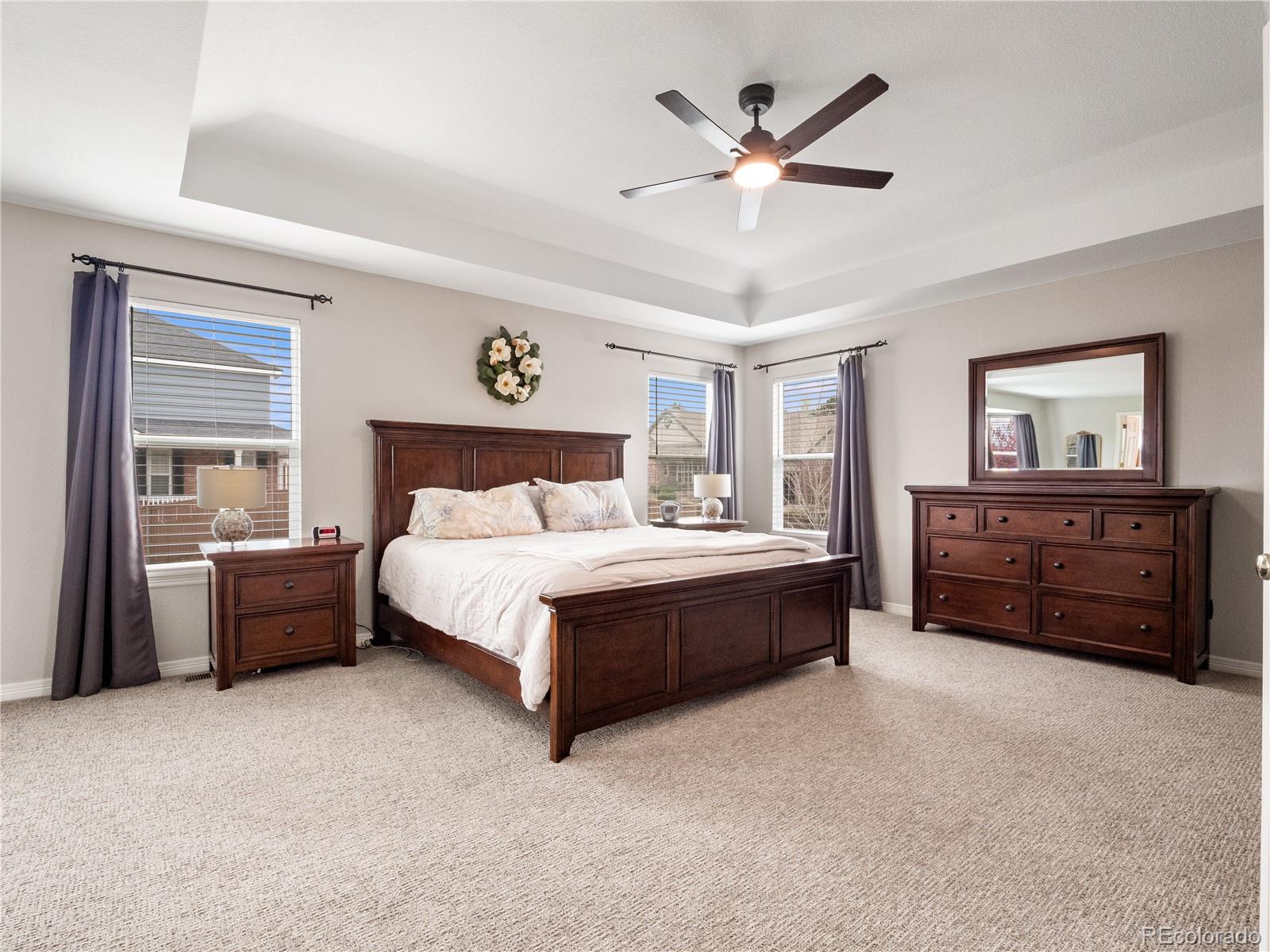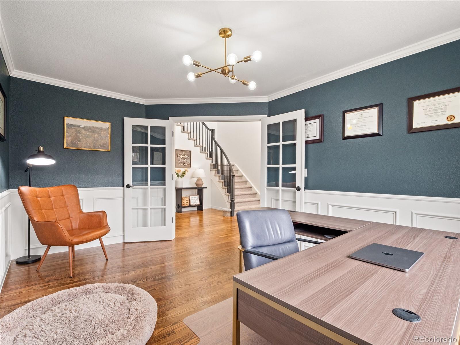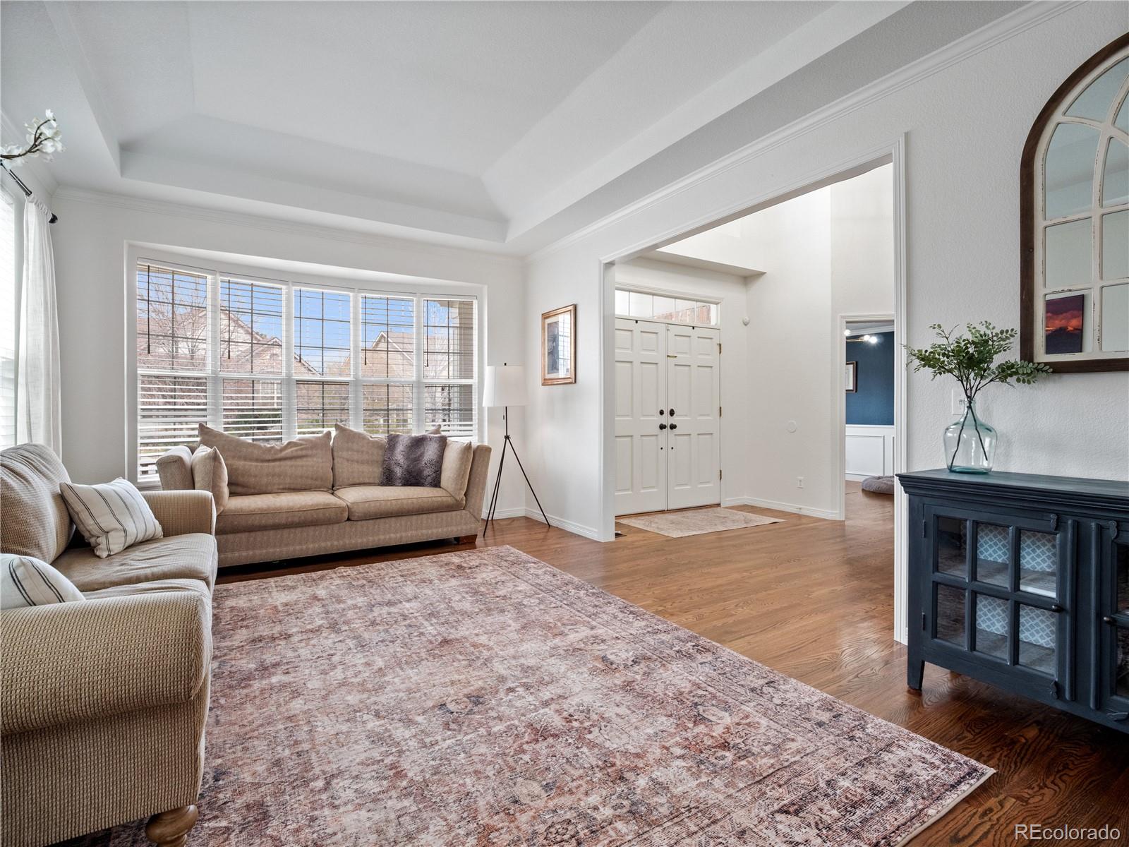 Beautifully updated 6 bed, 5 bath home within Kentley Hills in Highlands Ranch, located in Douglas County, offering 4,659 finished sq ft including a finished basement and a spacious open floor plan ideal for modern living and entertaining. This home is completely move-in ready with extensive recent upgrades, including hardwood flooring throughout the main floor, new carpet, and fresh interior paint. Updated lighting throughout includes entry, hallway, dining, private home office, and main living areas, along with added ceiling fans. The entry has been refreshed with a remodeled bathroom, updated closet, iron railing and handrail, and new lighting creating a strong first impression. The gourmet kitchen features a new oven and microwave and flows seamlessly into the main living space, perfect for entertaining. Additional improvements include an updated laundry room, new washer and dryer, blinds, and upgraded fixtures throughout. The attached 3-car garage provides ample space for vehicles and storage. Outside, enjoy a private fenced backyard with covered patio, ideal for Colorado outdoor living, dining, relaxing, or pets, with plenty of space to create your ideal outdoor setup. Conveniently located near parks, trails, and schools, and walkable to the neighborhood elementary, middle, and high schools, this home offers exceptional space, comfort, and value in a highly desirable Highlands Ranch location.
