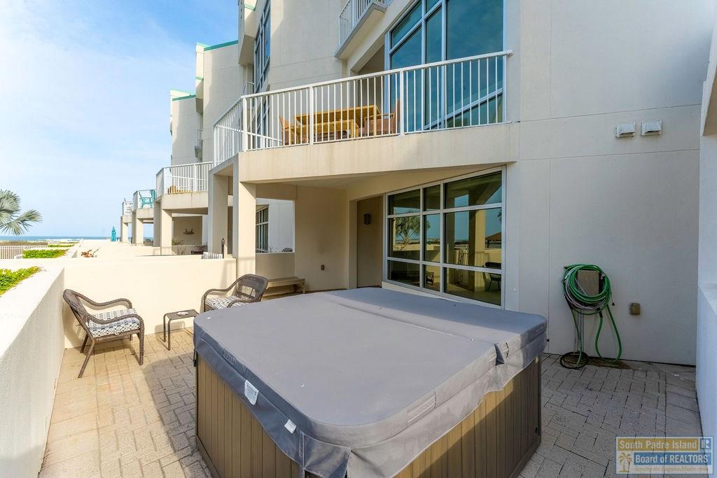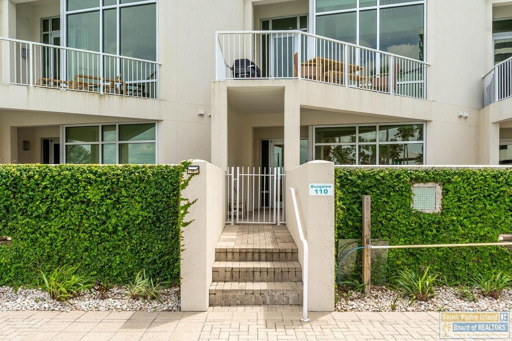 Rare opportunity to own a bungalow at the Sapphire on SPI. Unit 110 boasts a prime central location within the complex, just steps from the beach, pool, and fitness center, offering convenient access to the amenities. This well-positioned residence features a private, walled patio with a hot tub and breathtaking Gulf views from the 2nd and 3rd-floor balconies.