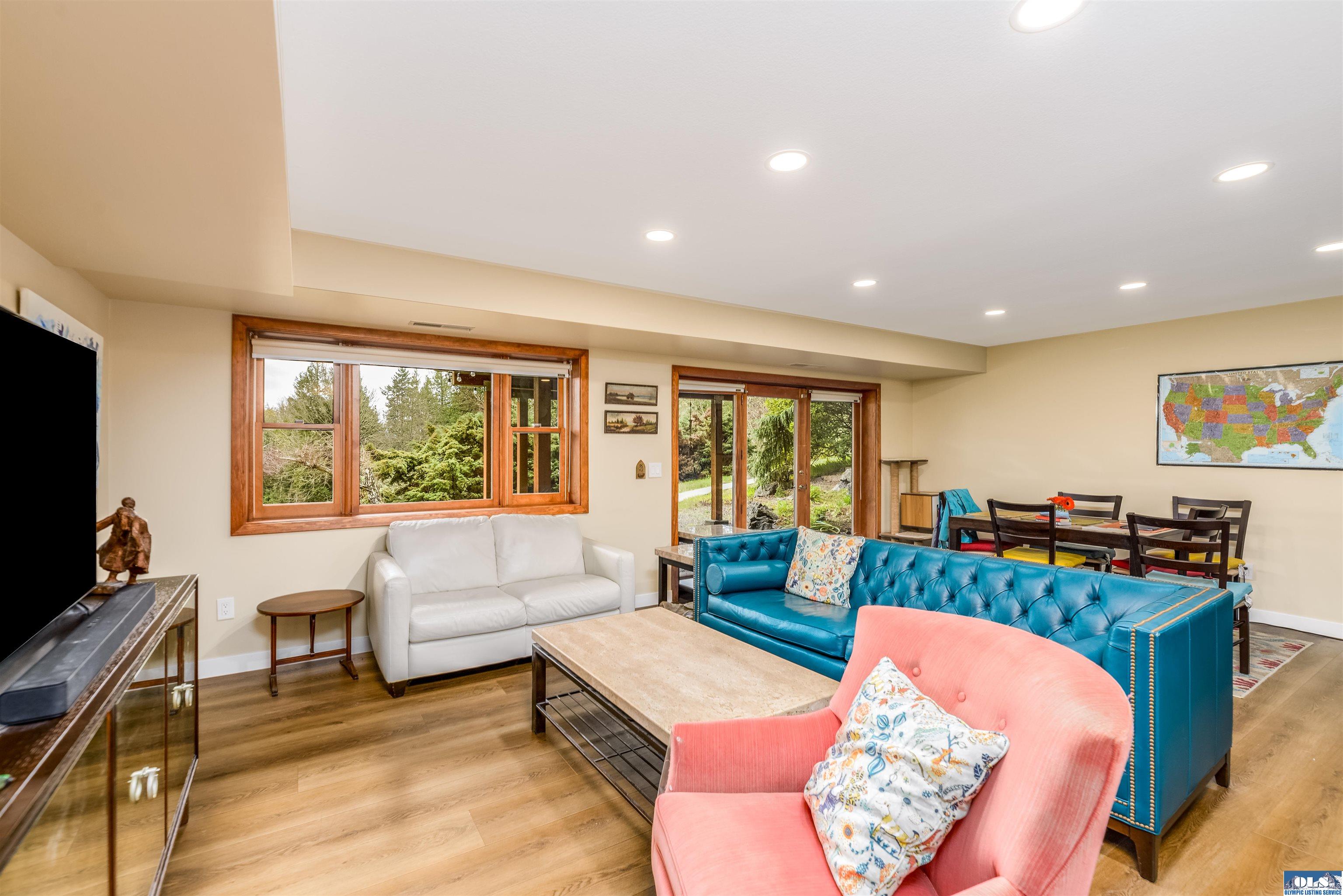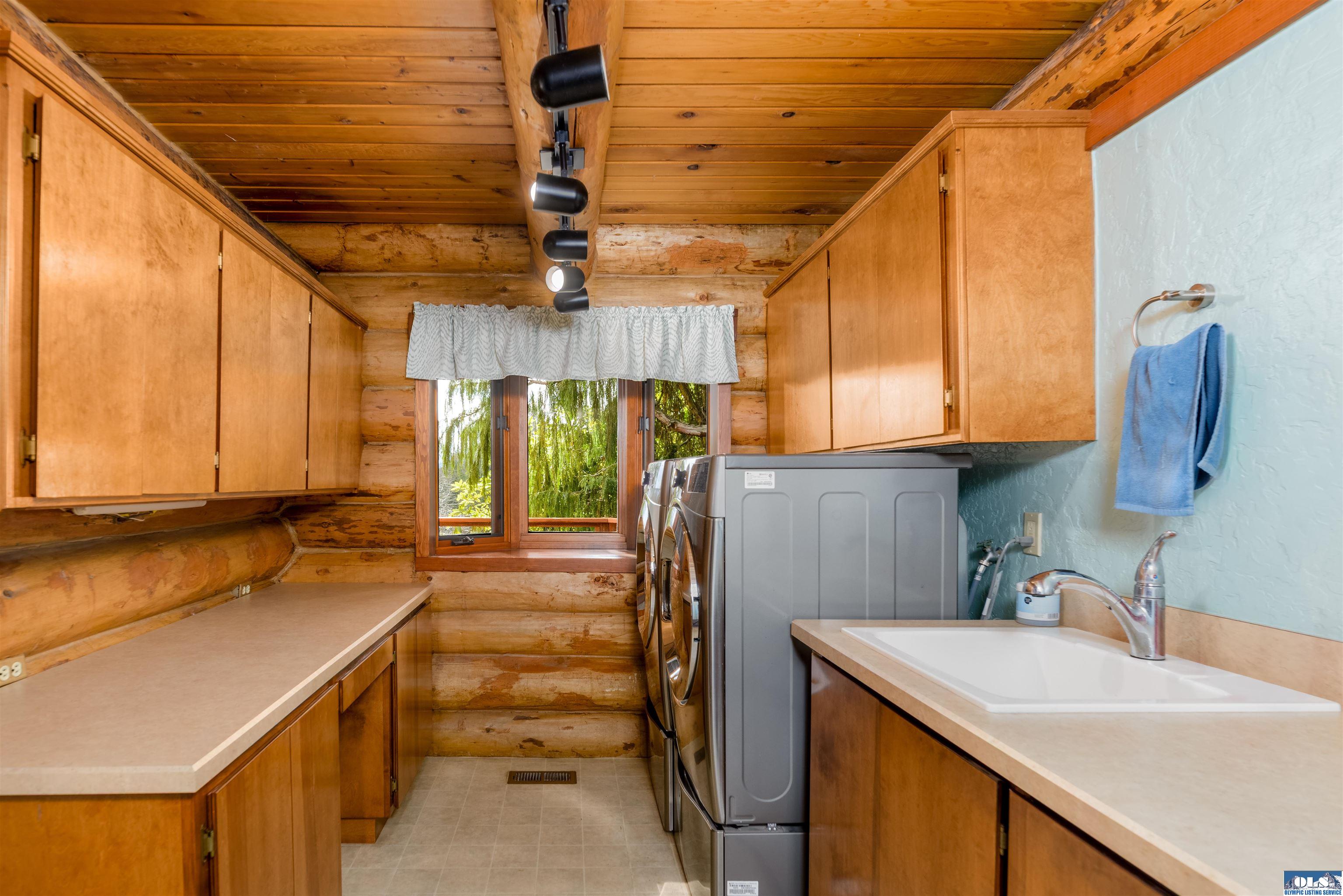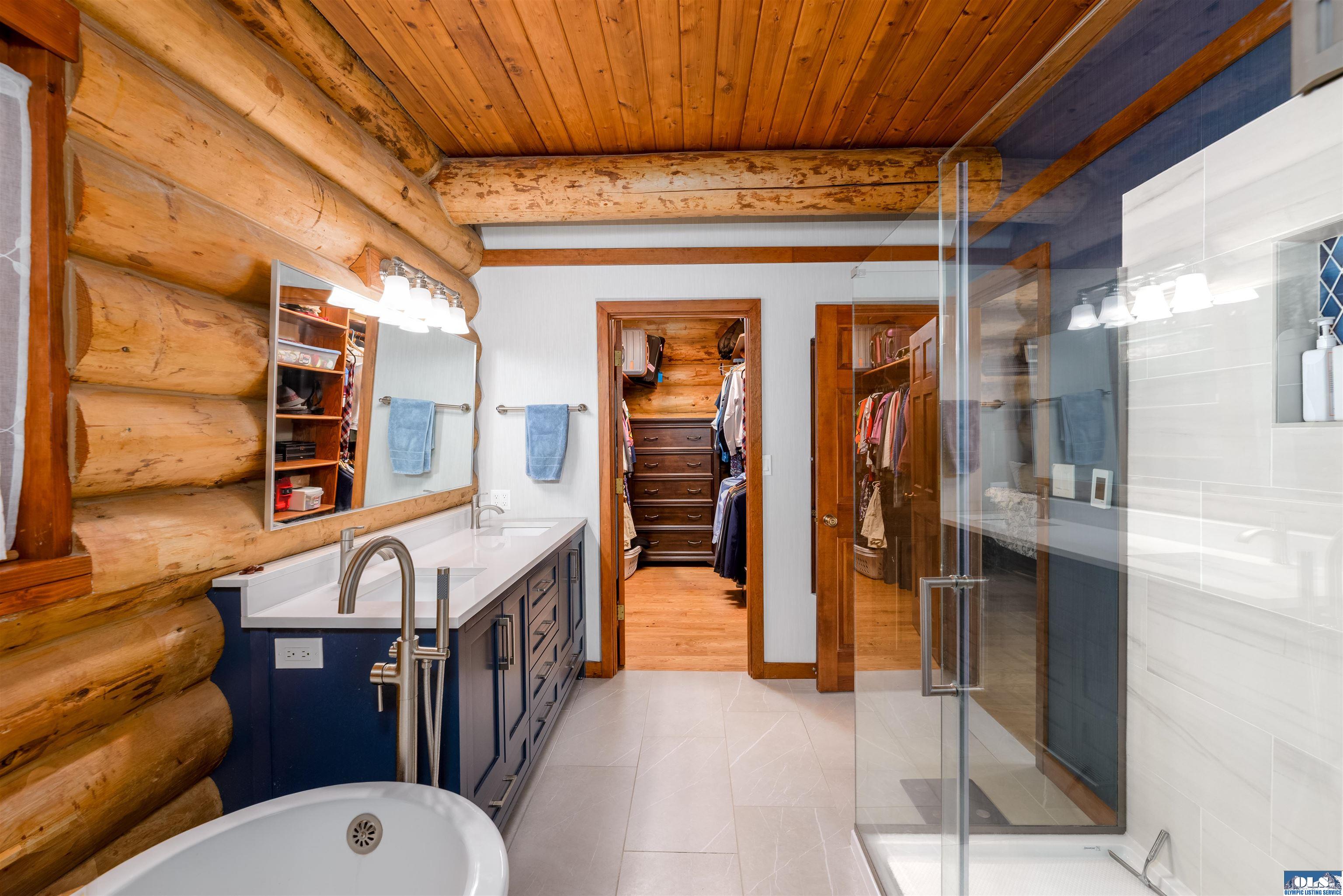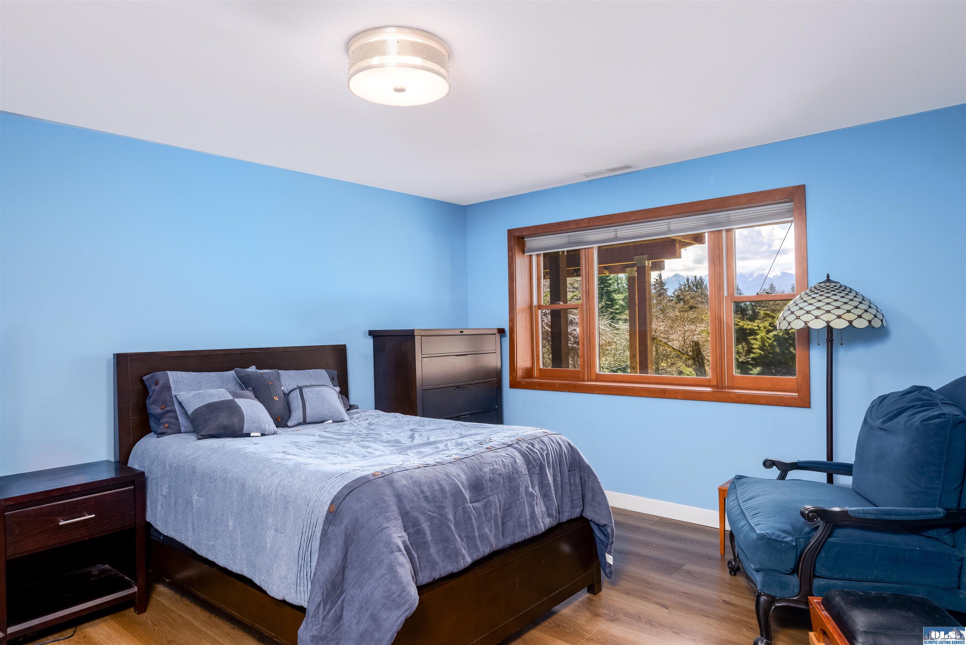 PNW dream property w/gorgeous multi-generational mountain view log home on 5 private acres located in Sequims blue hole. Recently remodeled combining modern luxury and quality with unmatched natural beauty. The original structure is an incredible log home that has been meticulously cared for and was built with a high level of craftsmanship. The recent remodel compliments the natural beauty with a luxurious modern style and convenience that was painstakingly planned and executed. Two brand new kitchens - one for the main home and another for the lower level apartment highlight the exquisite remake of this classic PNW home. The main level features a wall of windows looking out to your own pasture and forest and the Olympic Mountain range beyond. A large living room area with vaulted ceilings, gorgeous logs and woodwork with a door out to a gorgeous deck made of Ipe wood from Brazil that will outlast us all. A stunning new kitchen w/large Quartz island, blue ceramic sink, slate like porcelain floor and new S/S appliances. New woodstove with river rock surround adds to the beauty and warmth. The primary suite is tucked on the east side of the home with a large sitting area which opens to a private covered deck to sit and enjoy the spectacular natural surroundings and views. The primary bath is an absolute dream with porcelain tile floors and shower, cast iron claw foot tub and gorgeous counters. Also on the main level is a handsome office/library off of the entry and laundry room. Upstairs is an airy loft area that has been used as an office and cozy reading space as well as 2 more bedrooms and a full bath. The lower level which is accessed by a curved concrete walkway (or stairs and a lockable door direct from the main level) is a newly remodeled, fully equipped mother-in-law apartment. Enter into a light and bright living room space with views to the back yard and mountains. The new kitchen is spectacular with quartz counters and a bright tile backsplash with all new custom cabinets and new appliances. The new bathroom is again an absolute gem highlighted by a gorgeous tile shower. There are 2 BRs downstairs plus a large craft/game room and plenty of cold storage space. The garage spaces are substantial with an attached 2 car garage (gym equipment can convey) and a newly constructed, 1522 SF, 3 bay RV garage that can accommodate up to 4 more cars. The bigger 3rd bay is 36 feet deep with a 12 foot high door. There are covered carports on either side with concrete pads adding another 788 SF of covered space. Additionally there is a brilliantly constructed chicken coop with a fenced and covered free range area for them to roam. (Can be removed - negotiable). Additionally there is a covered firewood shelter on the east side of the home. Professional Napolean BBQ, sauna and gym equipment are all negotiable. Set in one of the best locations in Sequim just minutes from town, yet at the end of a private road with absolute privacy, mountain views and ample southern exposure. This is a truly special property.