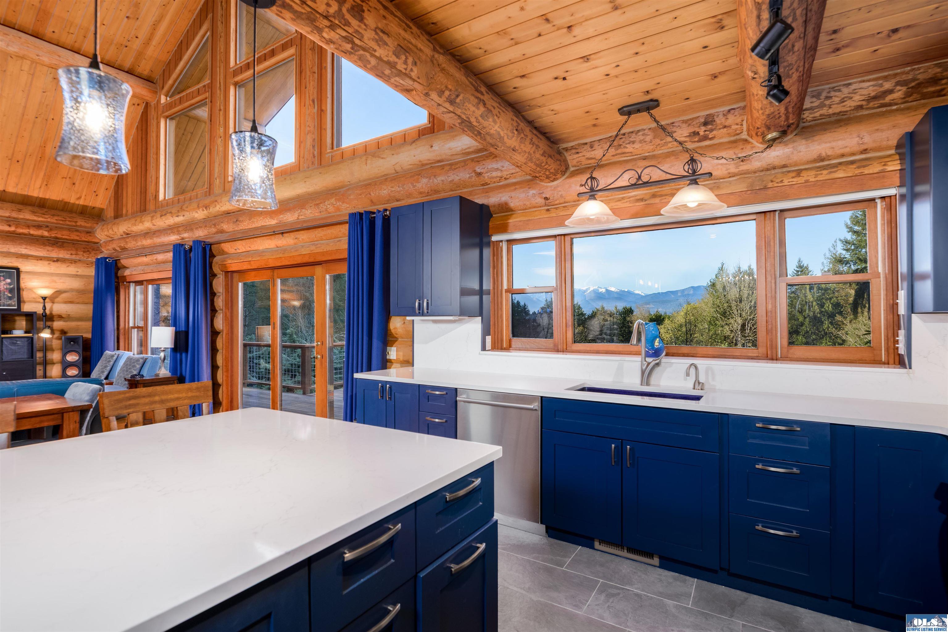 PNW dream property w/gorgeous multi-generational mountain view log home on 5 private acres located in Sequims blue hole. Recently remodeled combining modern luxury and quality with unmatched natural beauty. The original structure is an incredible log home that has been meticulously cared for and was built with a high level of craftsmanship.