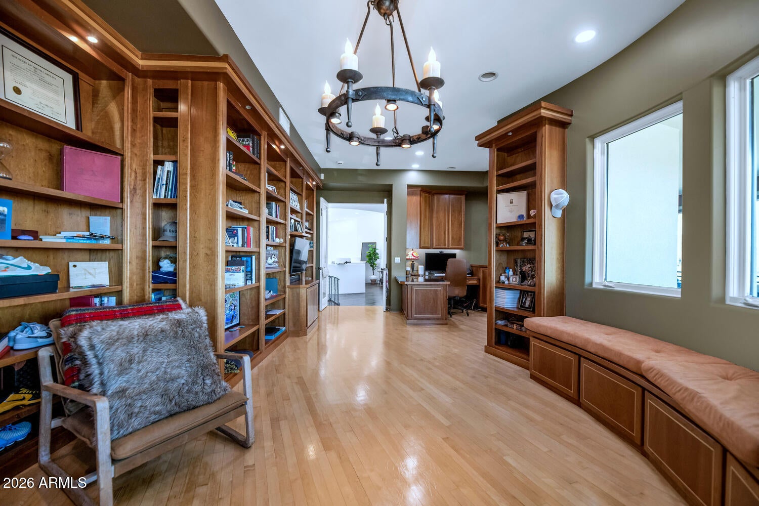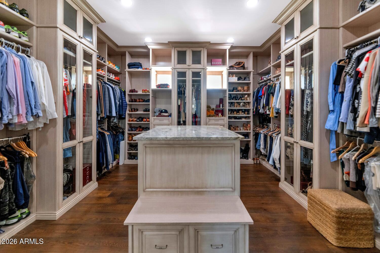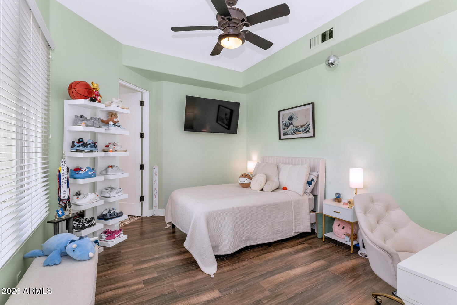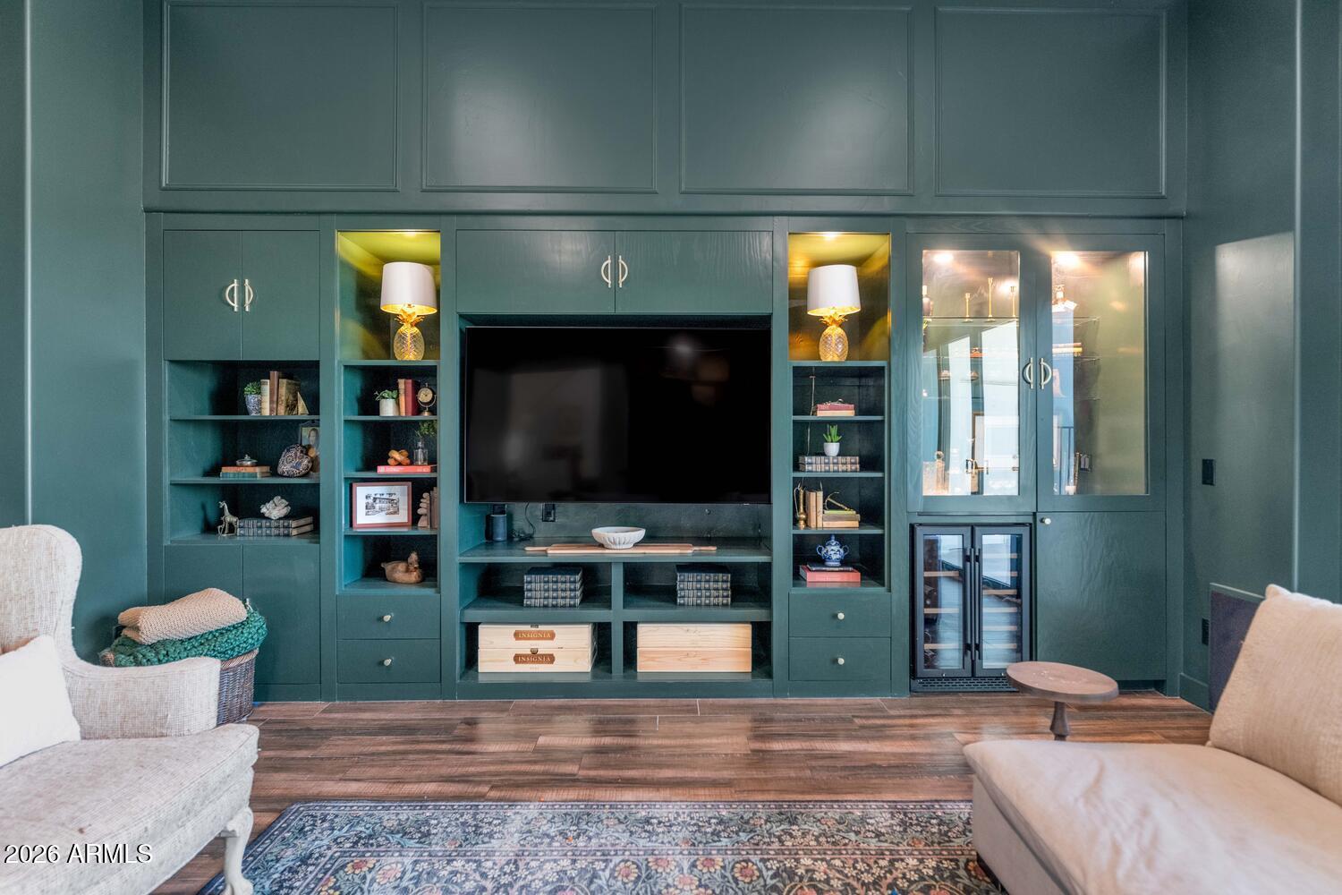 Perched high in the guard-gated Coral Gables Estates, this stunning Santa Barbara-style hillside home delivers unforgettable panoramic Valley views, glowing sunsets, and twinkling city lights. Tucked along a winding drive, the home welcomes you with a charming paver courtyard and grand double iron doors that open to a striking rotunda foyer with soaring ceilings. Thoughtfully updated with elegant finishes and soft architectural curves, the downstairs features 3 bedrooms, 4 bathrooms, and a versatile flex room designed as an entertainers dream--complete with surround sound, shiplap walls, and a bar area with fridge and sink, perfect for movie nights. Upstairs, escape to a stunning primary suite along with an additional flex space ideal for a home office, all complemented by an expansive balcony showcasing breathtaking views. Designed for both relaxation and entertaining, enjoy two expansive wraparound covered patios with gas fireplaces overlooking a sparkling pebble-tec pool, spa, BBQ area, and tranquil water feature. Experience elevated Arizona living at its finest. Just minutes from the Moon Valley Country club to enjoy golf, pickleball, tennis and fitness!