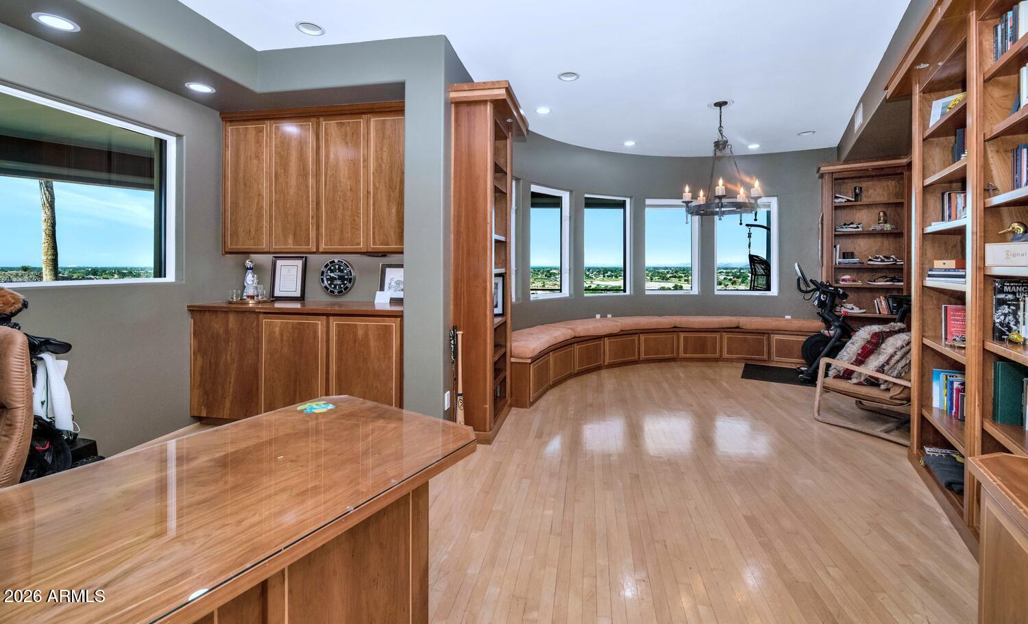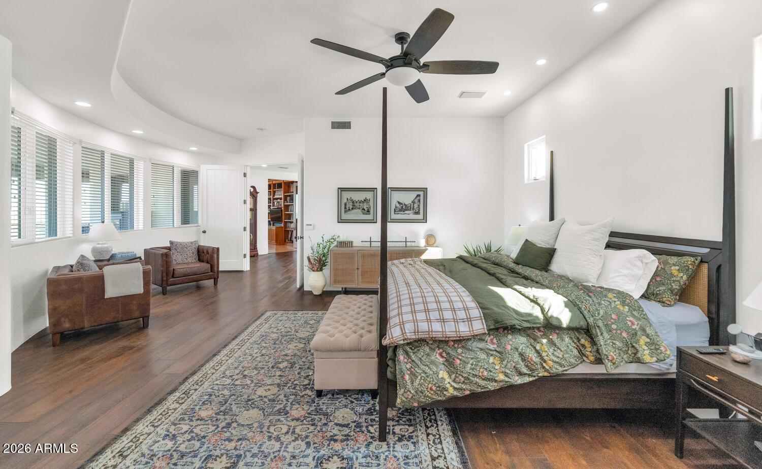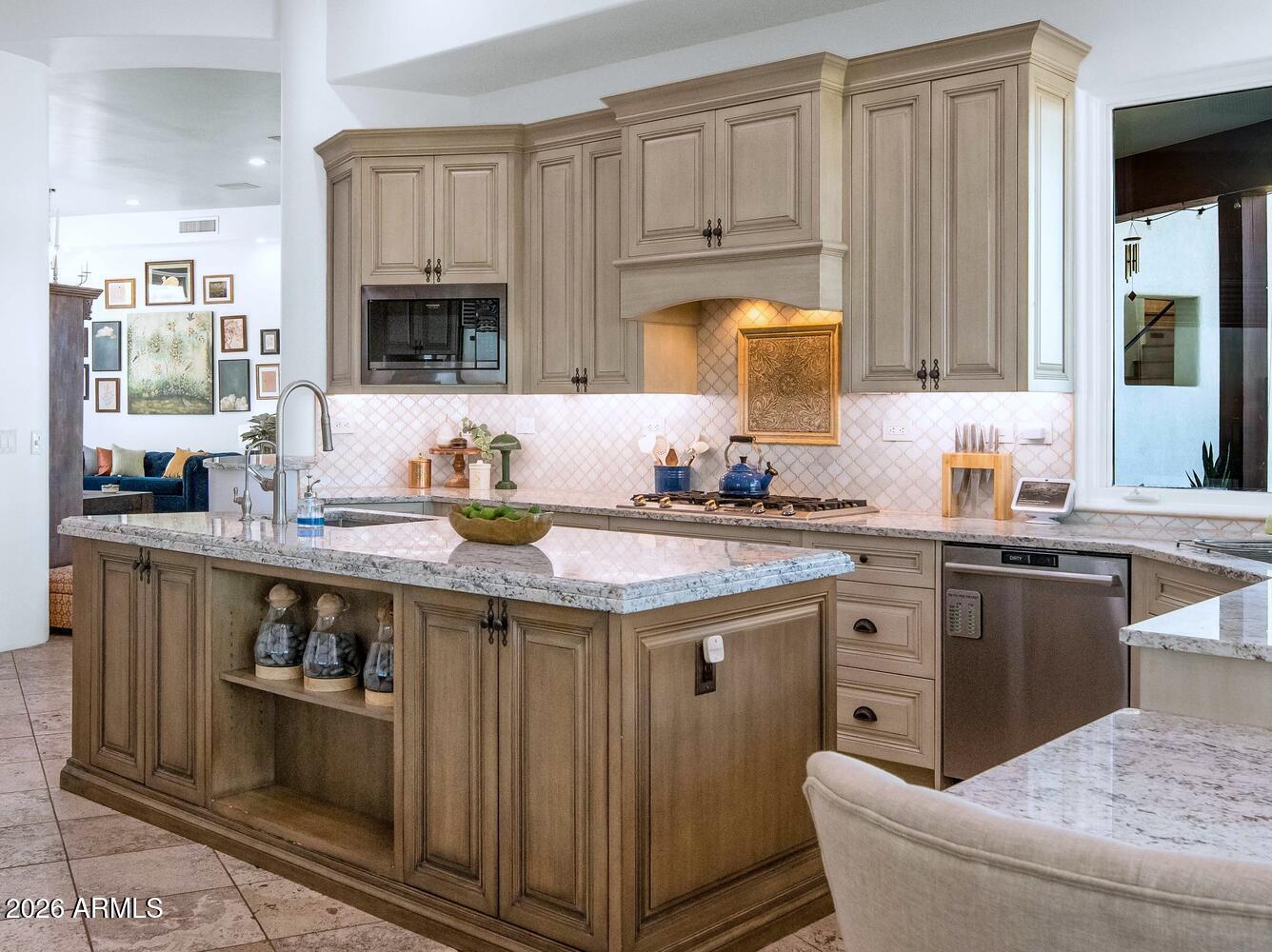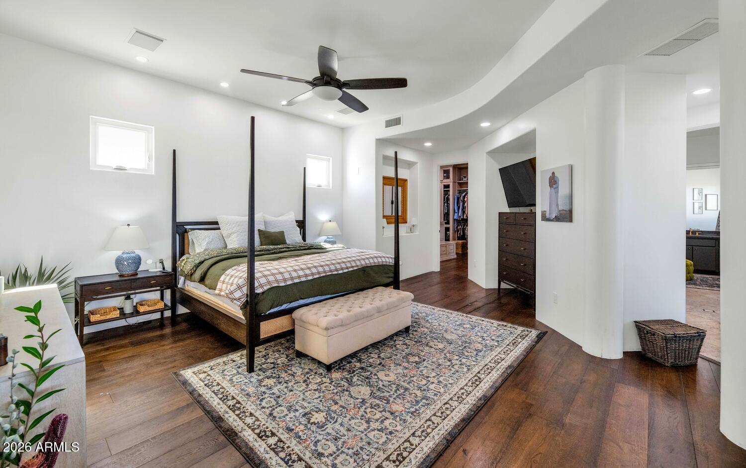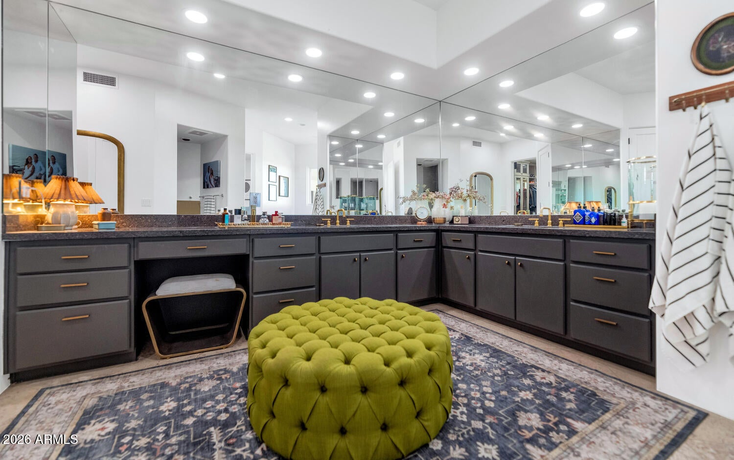 Perched high in the guard-gated Coral Gables Estates, this stunning Santa Barbara-style hillside home delivers unforgettable panoramic Valley views, glowing sunsets, and twinkling city lights. Tucked along a winding drive, the home welcomes you with a charming paver courtyard and grand double iron doors that open to a striking rotunda foyer with soaring ceilings. Thoughtfully updated with elegant finishes and soft architectural curves, the downstairs features 3 bedrooms, 4 bathrooms, and a versatile flex room designed as an entertainers dream--complete with surround sound, shiplap walls, and a bar area with fridge and sink, perfect for movie nights. Upstairs, escape to a stunning primary suite along with an additional flex space ideal for a home office, all complemented by an expansive balcony showcasing breathtaking views. Designed for both relaxation and entertaining, enjoy two expansive wraparound covered patios with gas fireplaces overlooking a sparkling pebble-tec pool, spa, BBQ area, and tranquil water feature. Experience elevated Arizona living at its finest. Just minutes from the Moon Valley Country club to enjoy golf, pickleball, tennis and fitness!